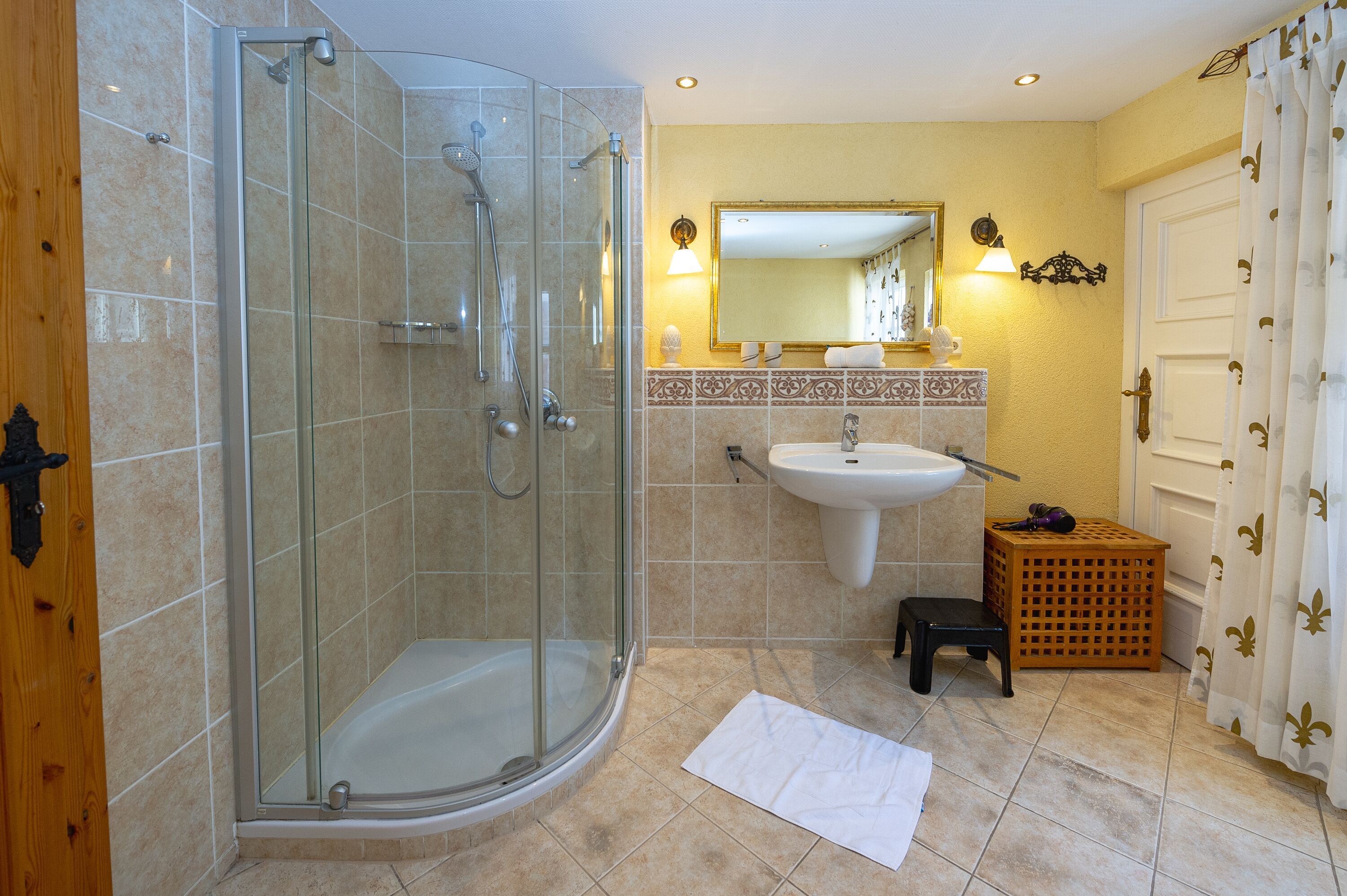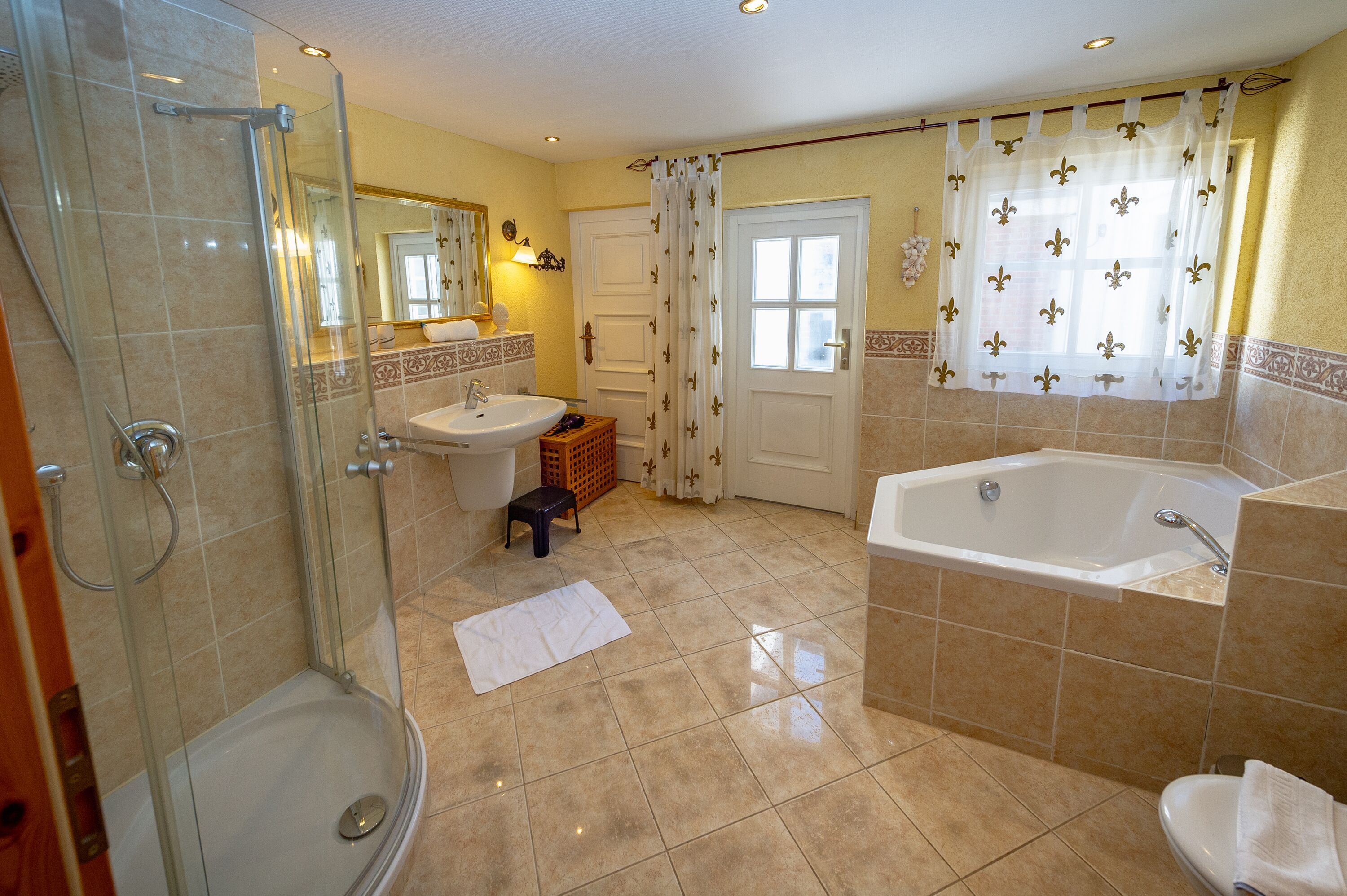 Das große Badezimmer Ihrer Urlaubsunterkunft ist mit WC, Badewanne und einer separaten Dusche ausgestattet.
