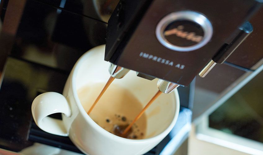 Ebenfalls ist ein Esstisch für zwei Personen vorhanden und die im Wohnraum integrierte und sehr gut ausgestattete Küchenzeile verfügt über einen Backofen, ein 4-Platten-Ceranfeld, eine Mikrowelle, eine Spülmaschine sowie einen Jura-Kaffeeautomaten (inkl. Kaffee satt).