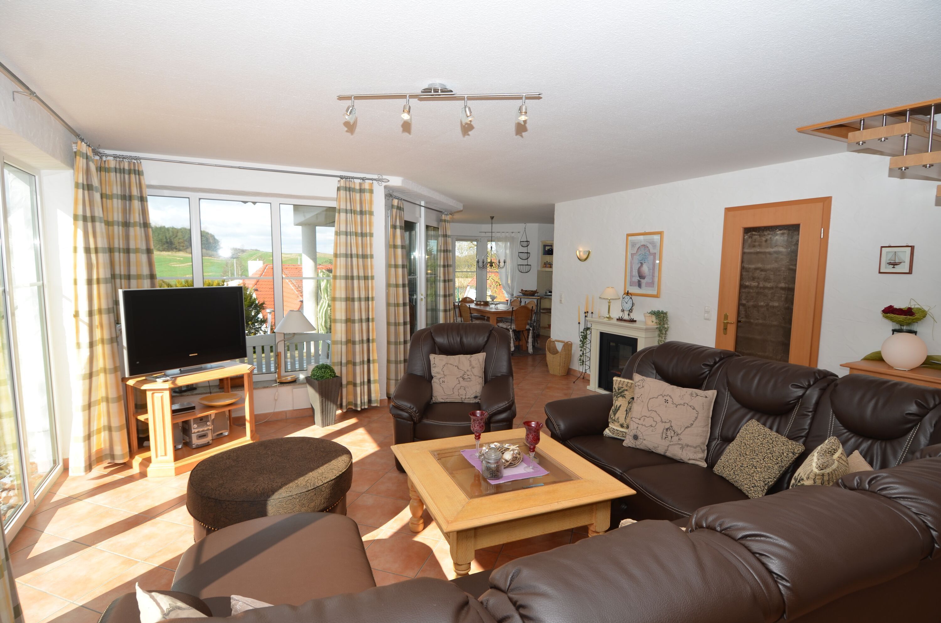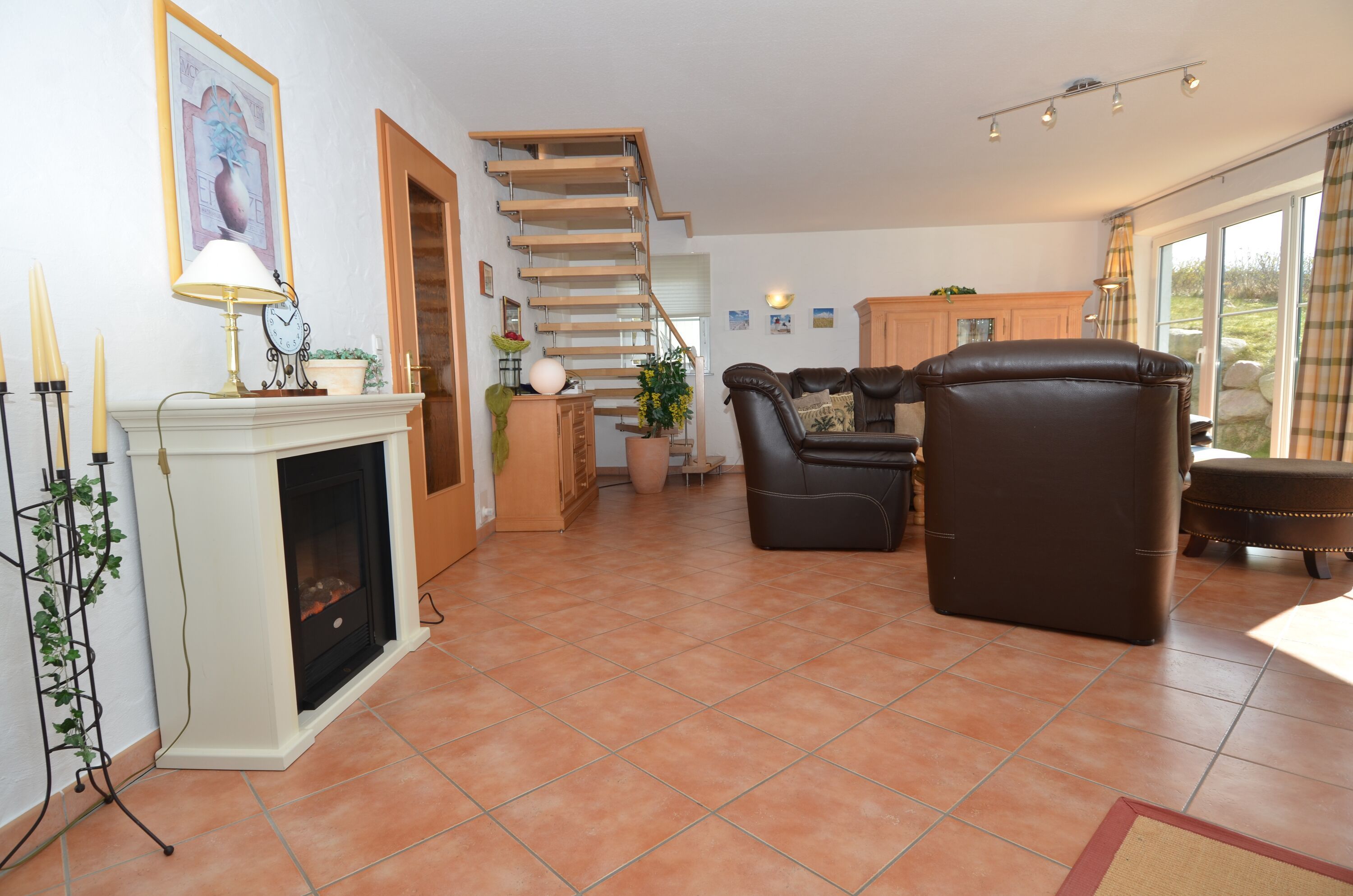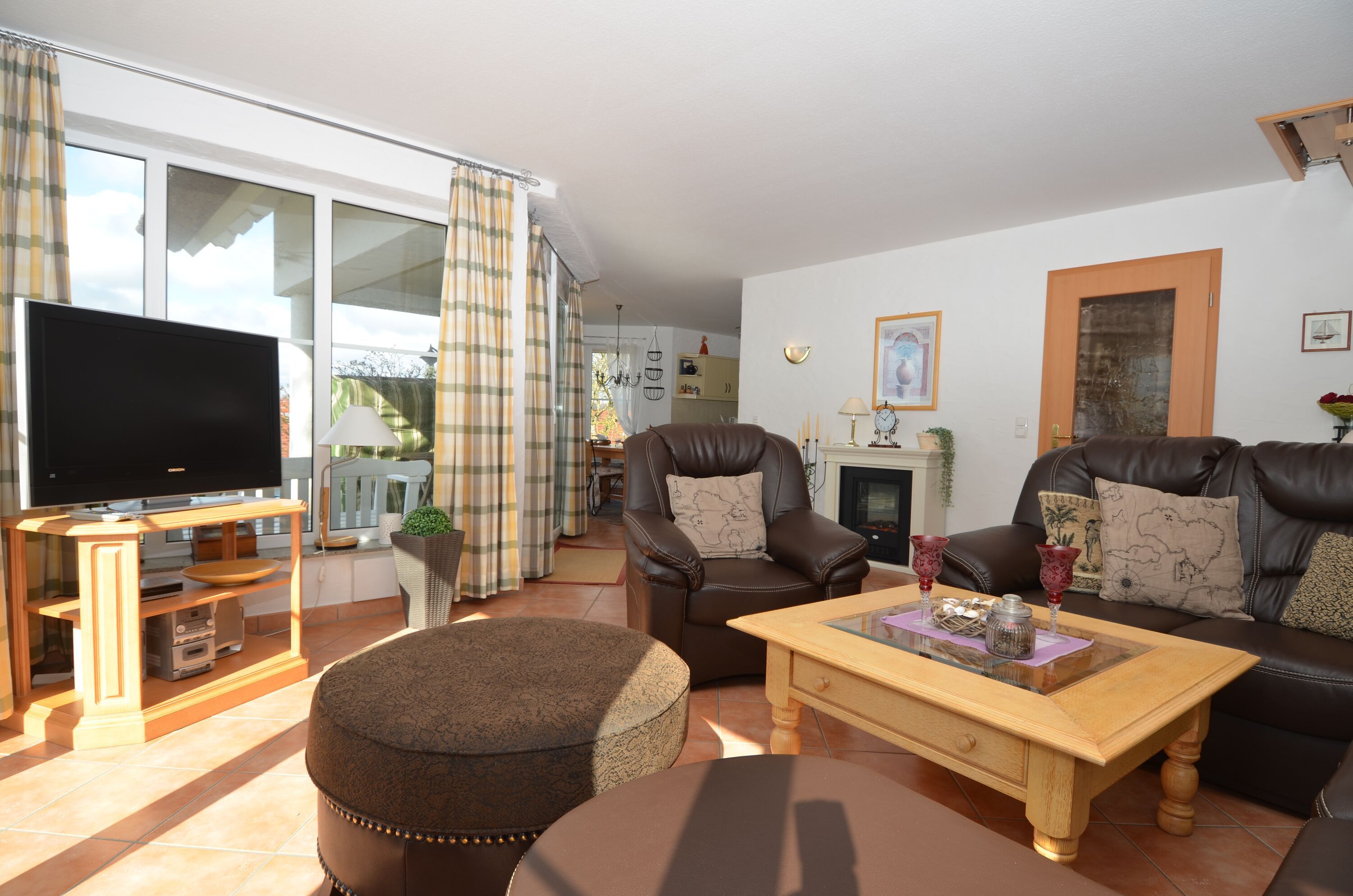Im Wohnzimmer befinden sich eine große Couchgarnitur, ein Flachbild-Fernseher, eine Stereoanlage mit CD-Player und ein elektrischer Kamin für die besonders romantischen Stunden. W-LAN ist kostenfrei verfügbar.