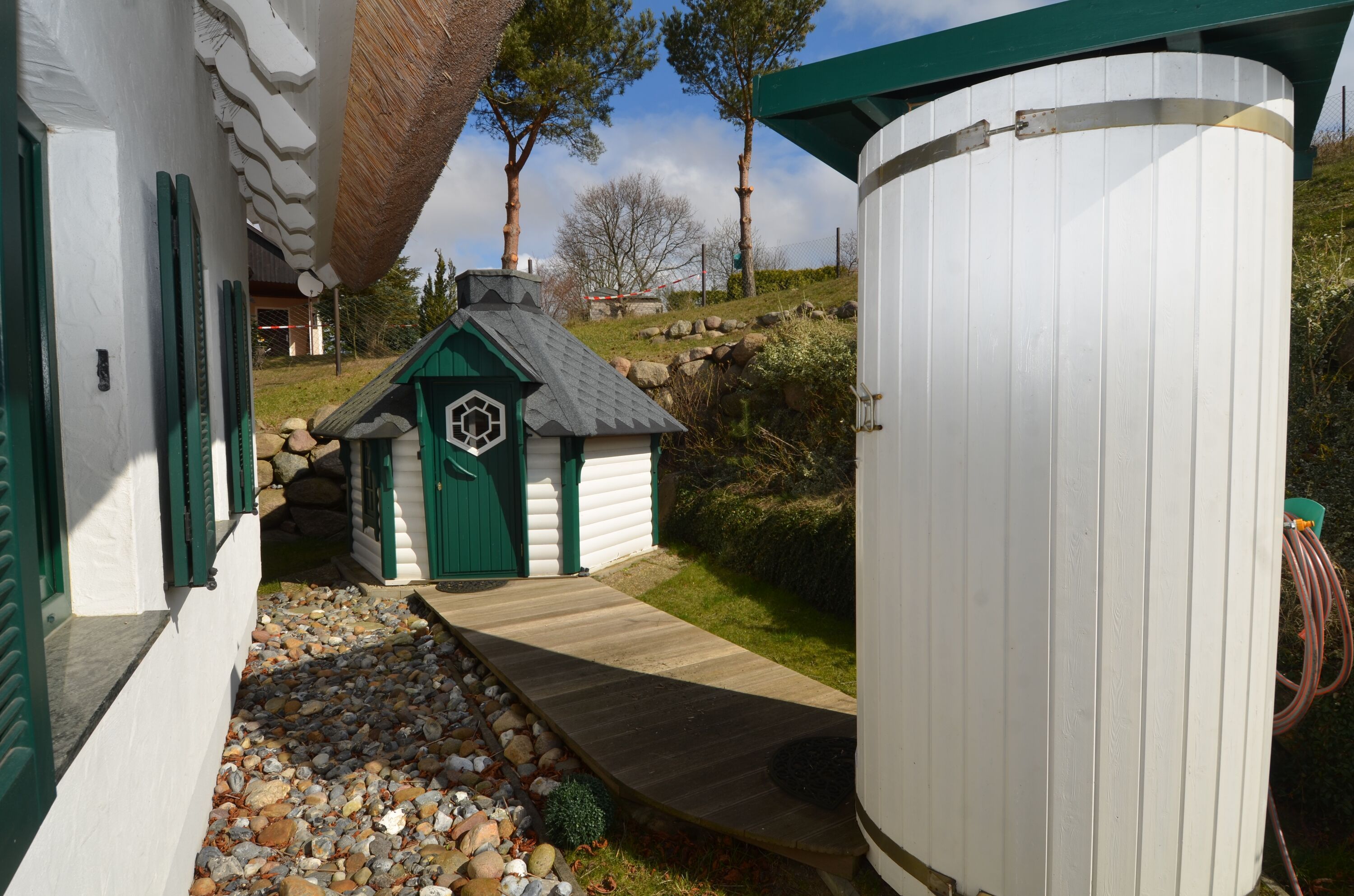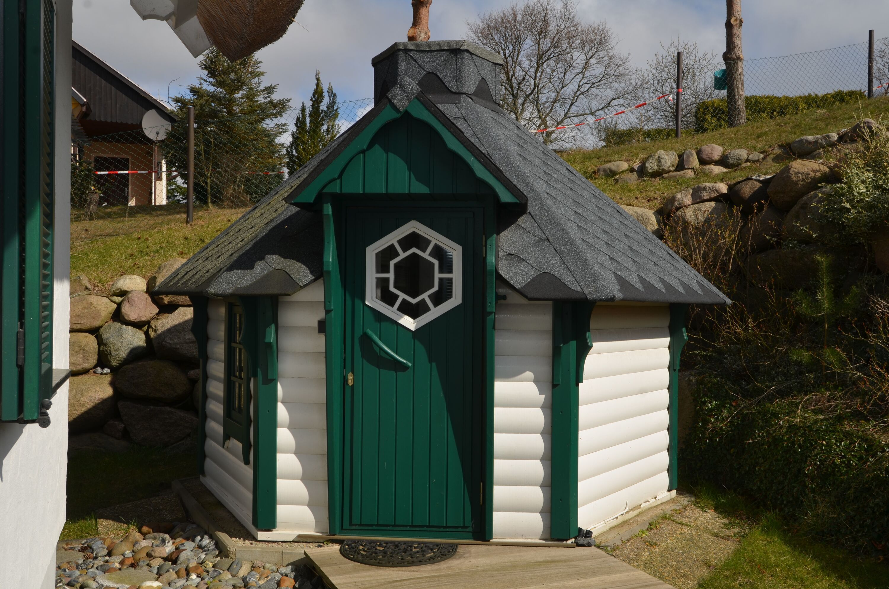 Zum Haus gehören ebenfalls ein Saunahäuschen im Garten (Nutzung gegen kleine Gebühr) und drei kostenfreie PKW-Stellplätze.