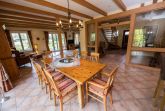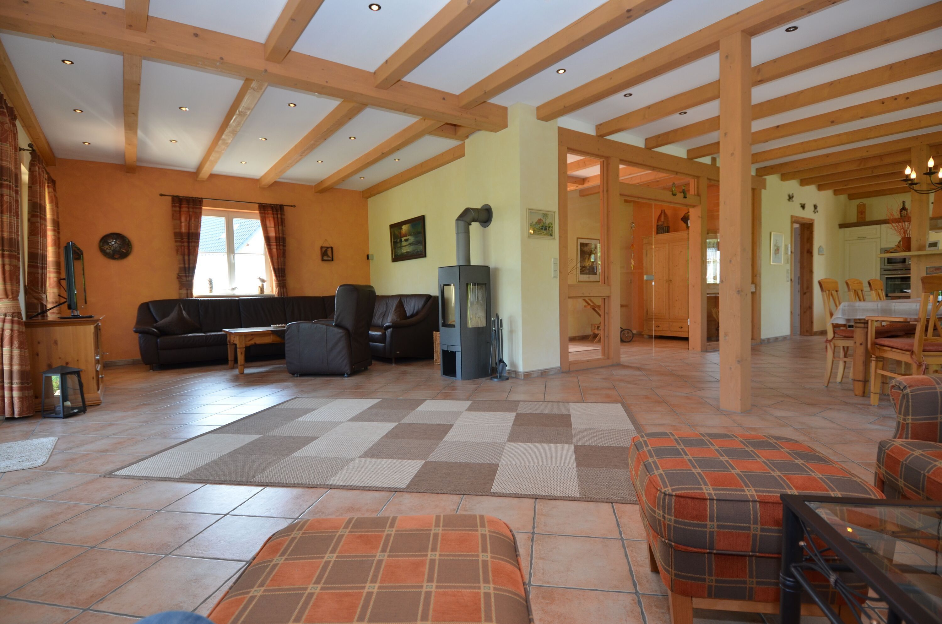 Der Wohnbereich ist komfortabel eingerichtet mit einer großen Eckcouch mit Sessel, einem Kamin, TV, DVD-Player und einer kuscheligen Leseecke mit 2 gemütlichen Ohrensesseln. Im Essbereich gibt es einen großen Esstisch für 6 Personen.