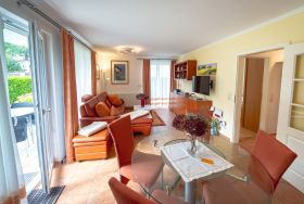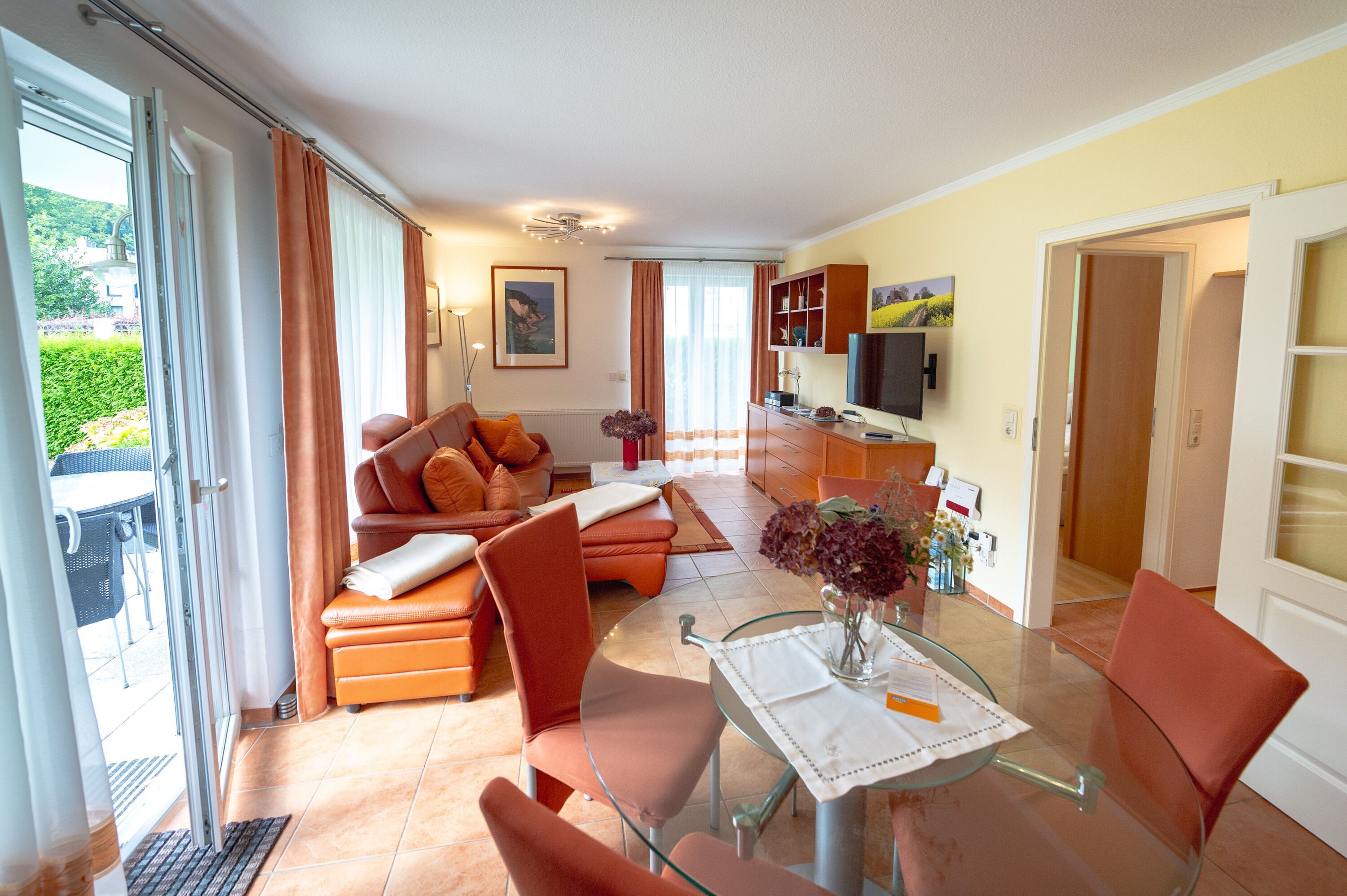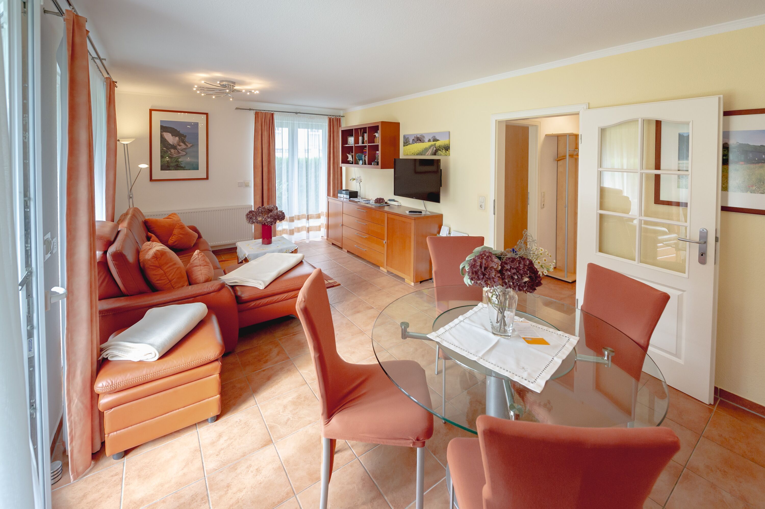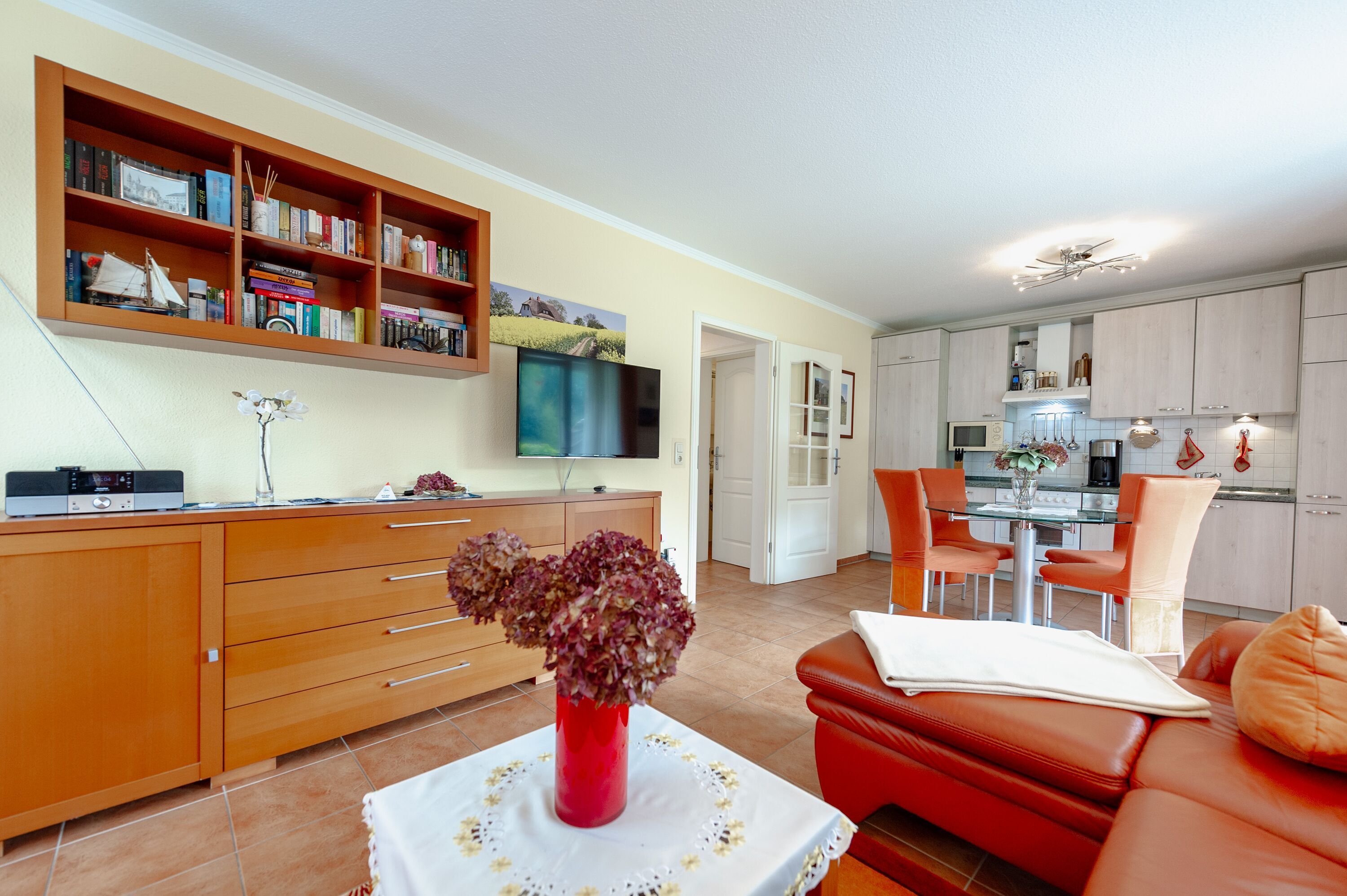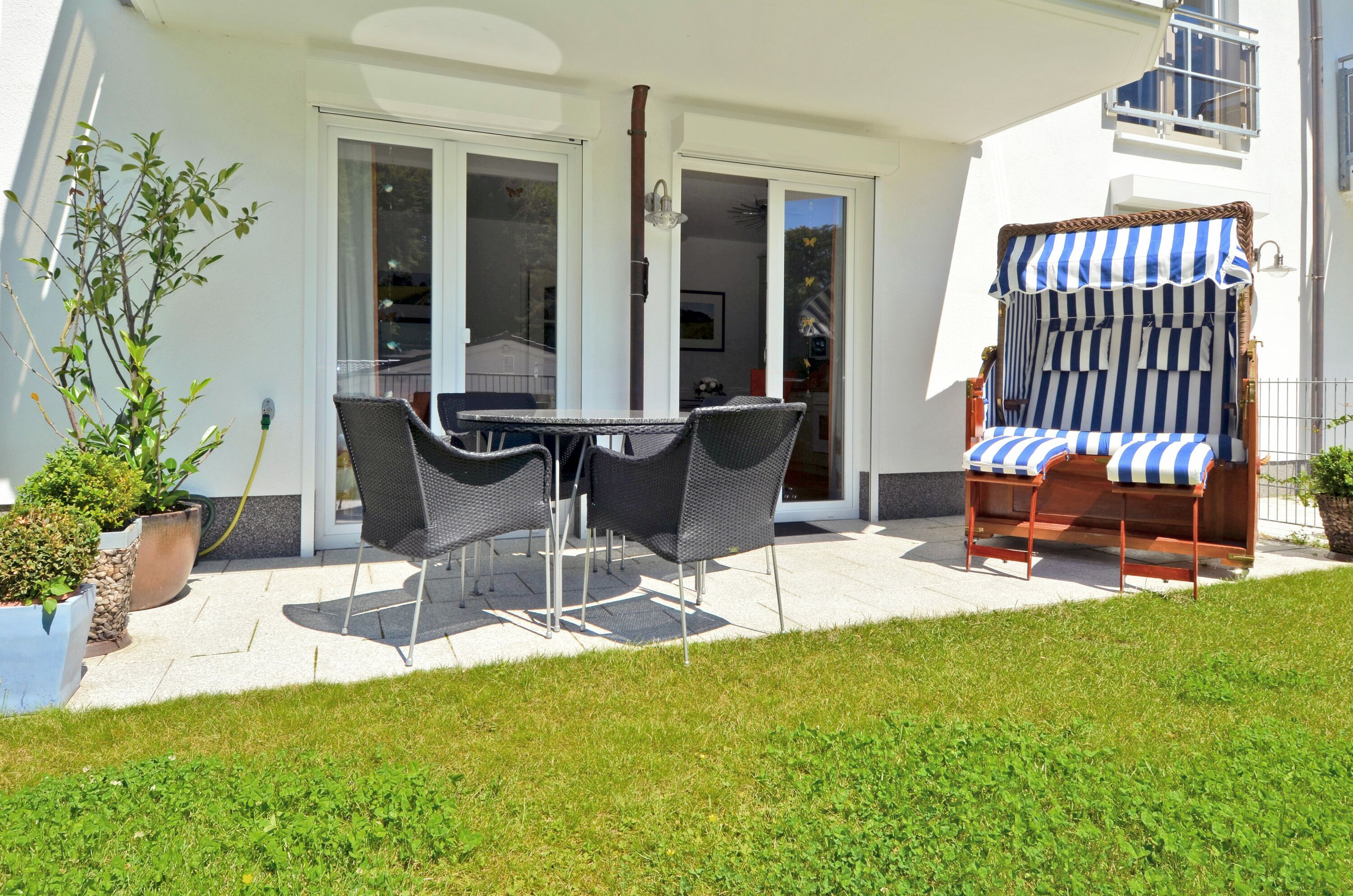 Die Nichtraucherwohnung im Erdgeschoss des Hauses verfügt über eine Wohnfläche von ca. 46 m² und ist komfortabel und geschmackvoll eingerichtet. Auf der rund 8 m² großen Terrasse mit kleinem Garten zur Südseite der Wohnung können Sie die Sonne genießen und finden dort neben bequemen Sitzmöbeln auch einen Strandkorb zum Relaxen.