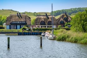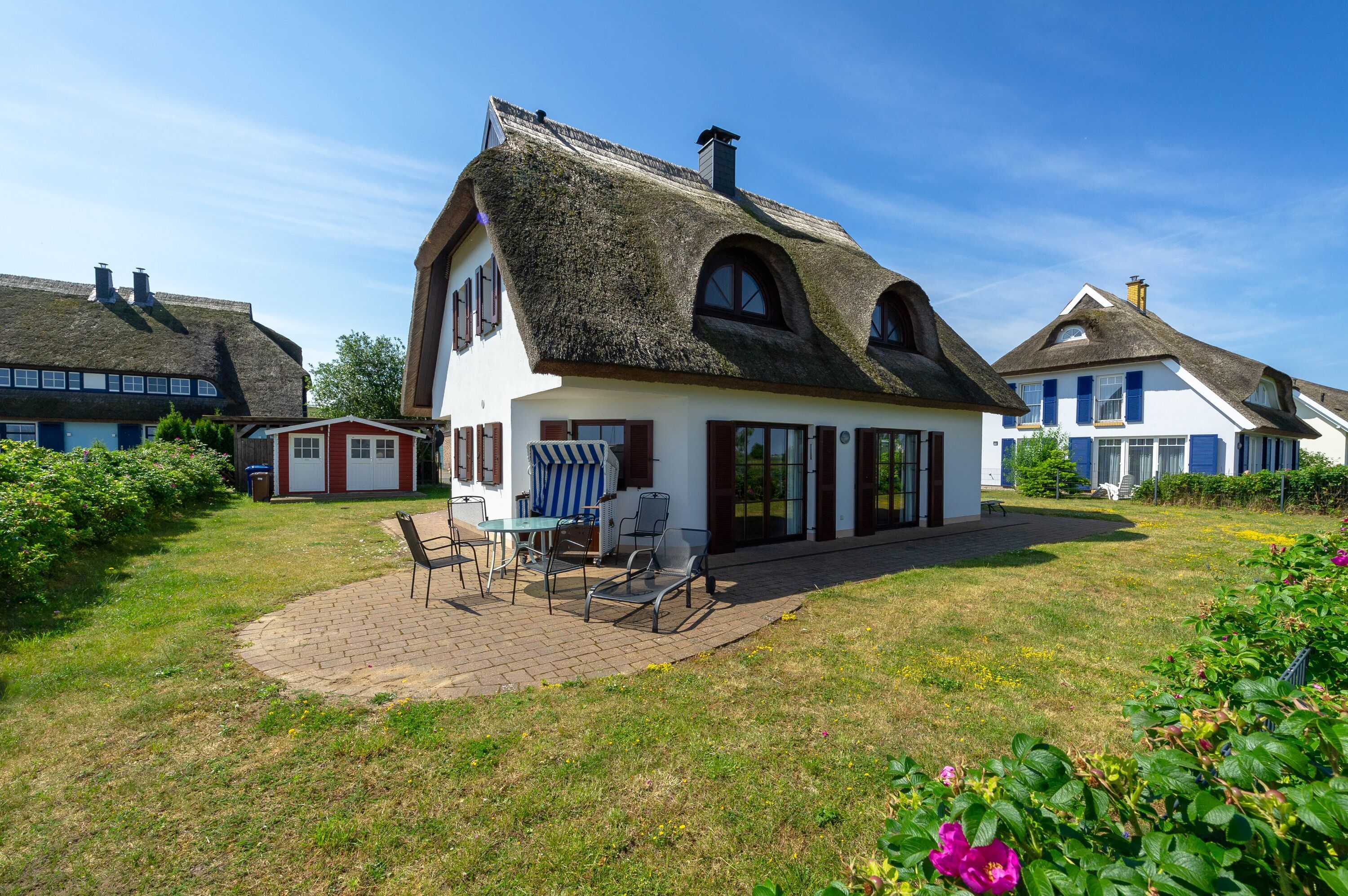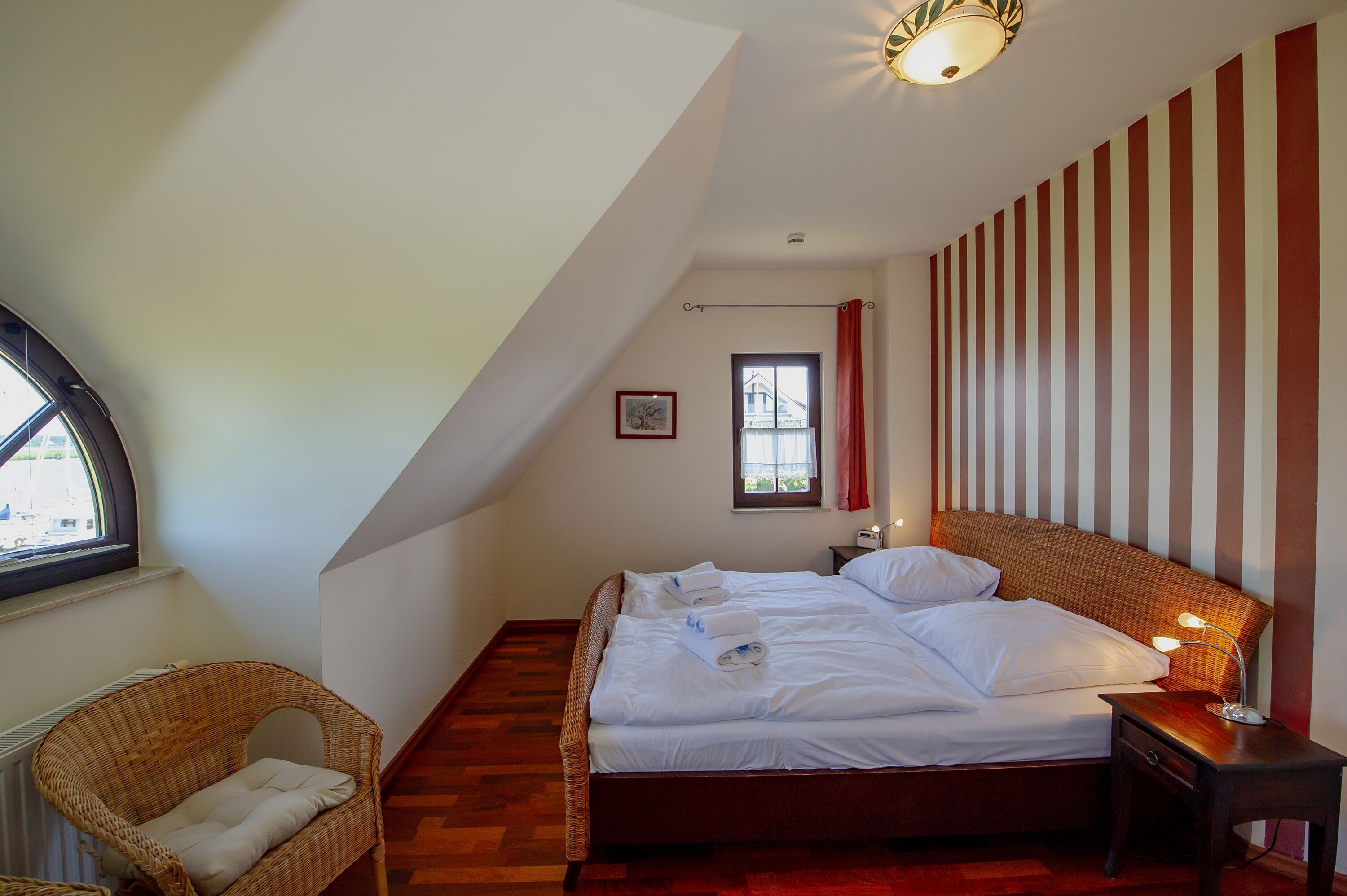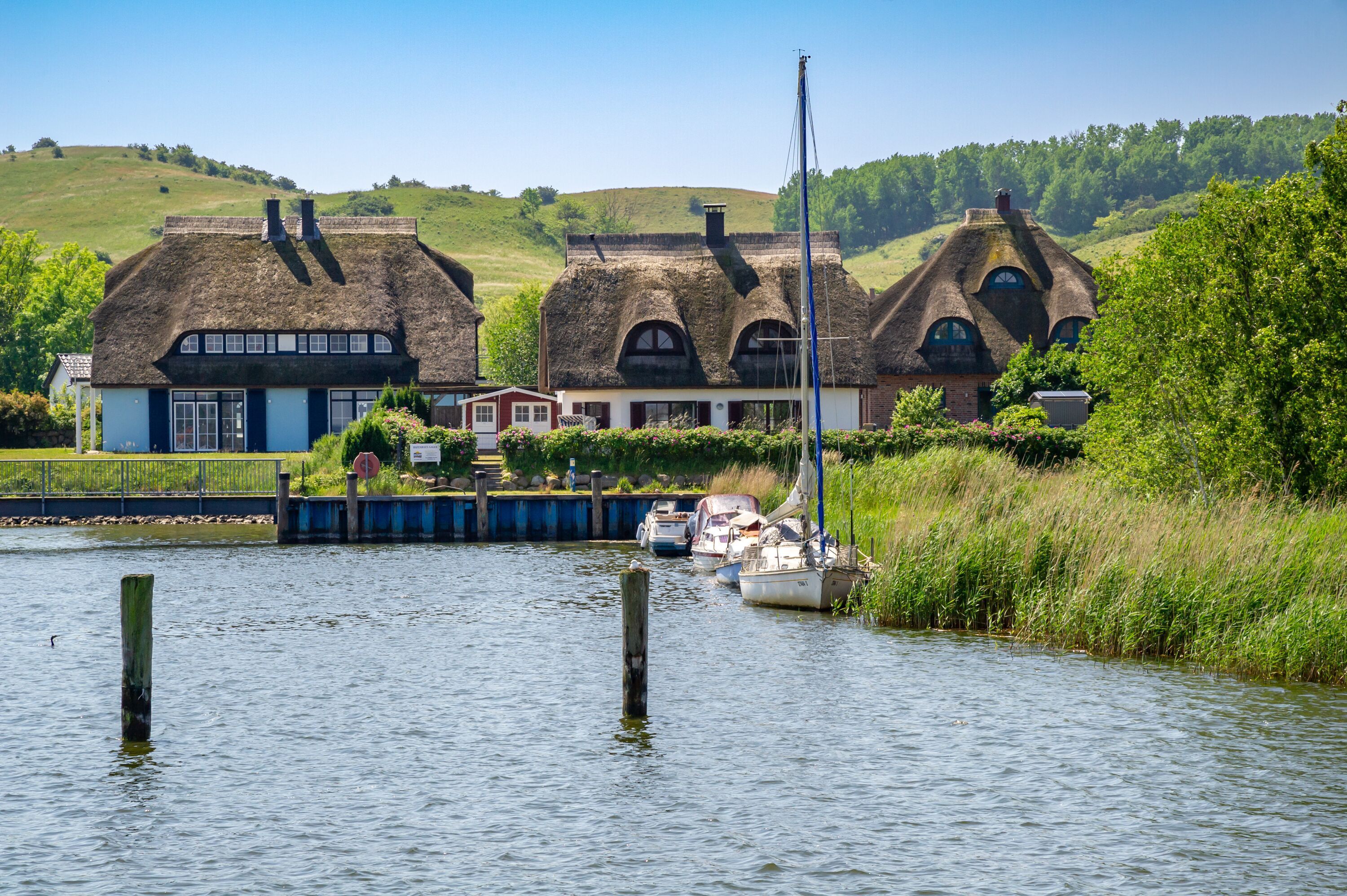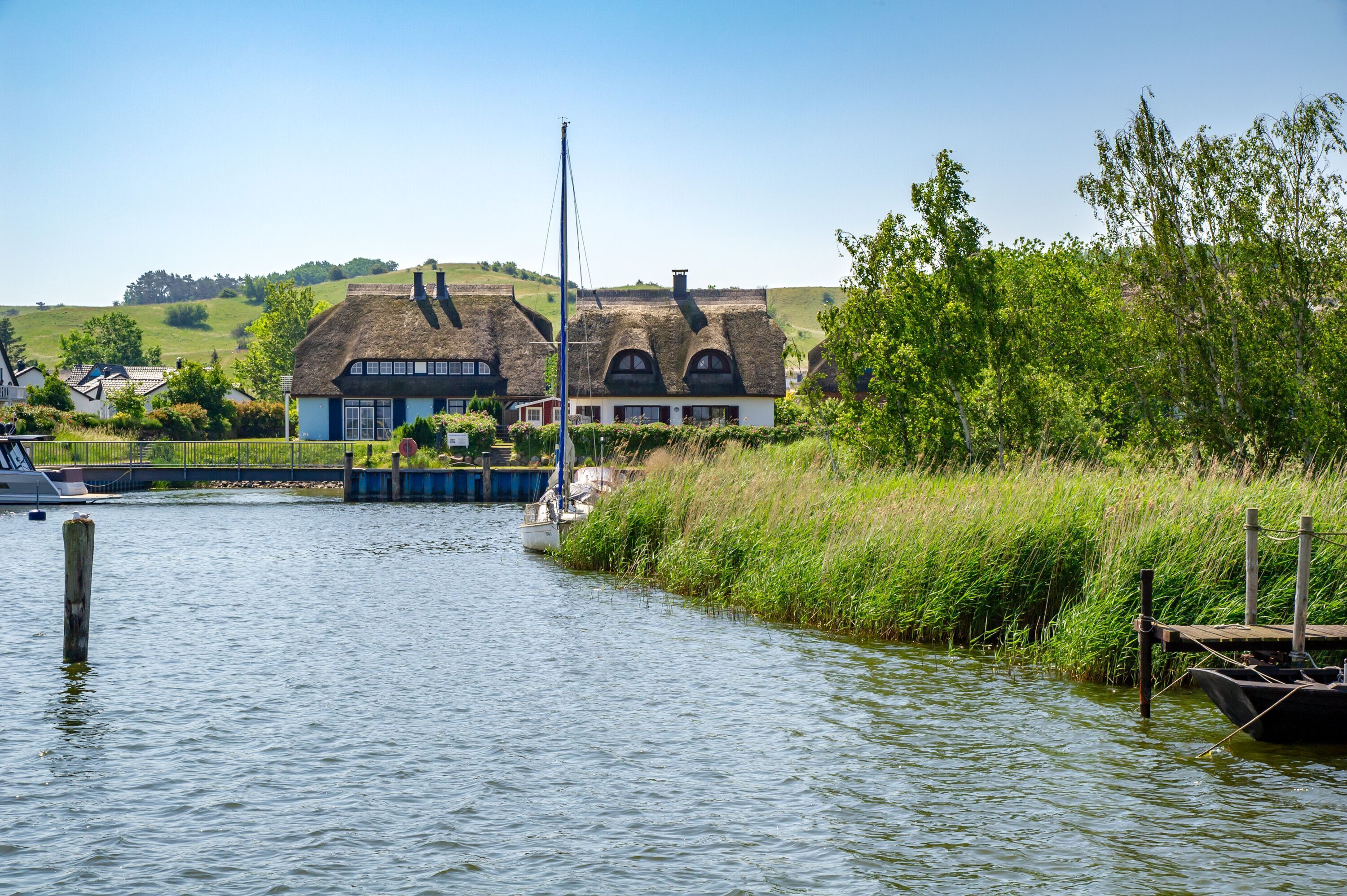 Die großzügige umlaufende Terrasse mit Morgen- und Abendsonne bietet eine traumhafte Aussicht auf den Hafen von Gager und die Hagensche Wiek. Aus dem Strandkorb, sowie der Sitzgruppe oder von den Liegen auf der Terrasse kann der Blick in die Ferne schweifen.