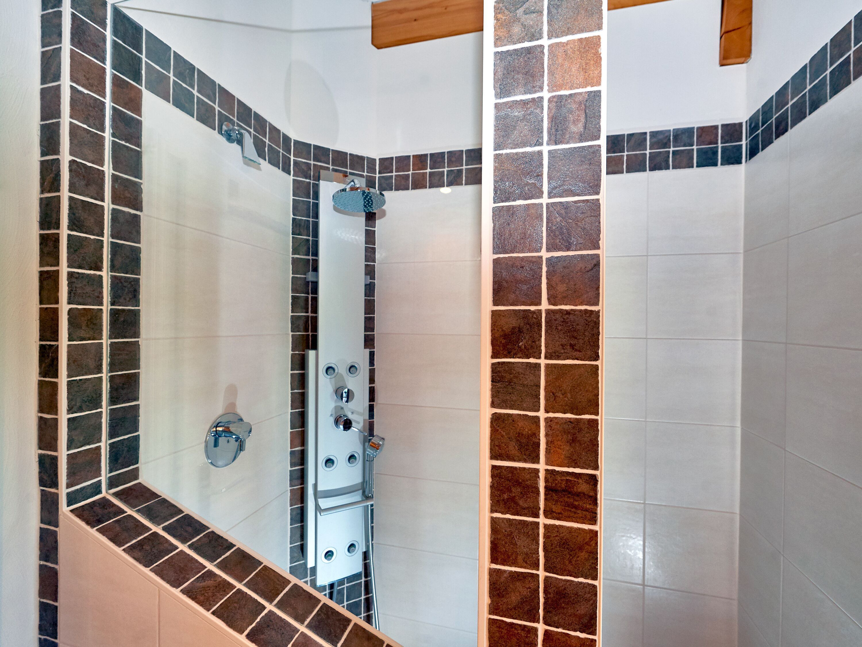 Das zweite Schlafzimmer auf dieser Ebene verfügt über ein Doppelbett der Größe 160 x 200 cm mit einer durchgehenden Matratze, einen Flachbild-TV und ein eigenes Badezimmer mit Dusche. Dieser Raum kann auch als Fernsehzimmer genutzt werden.