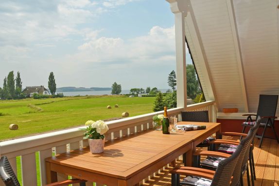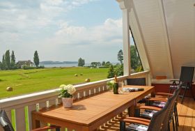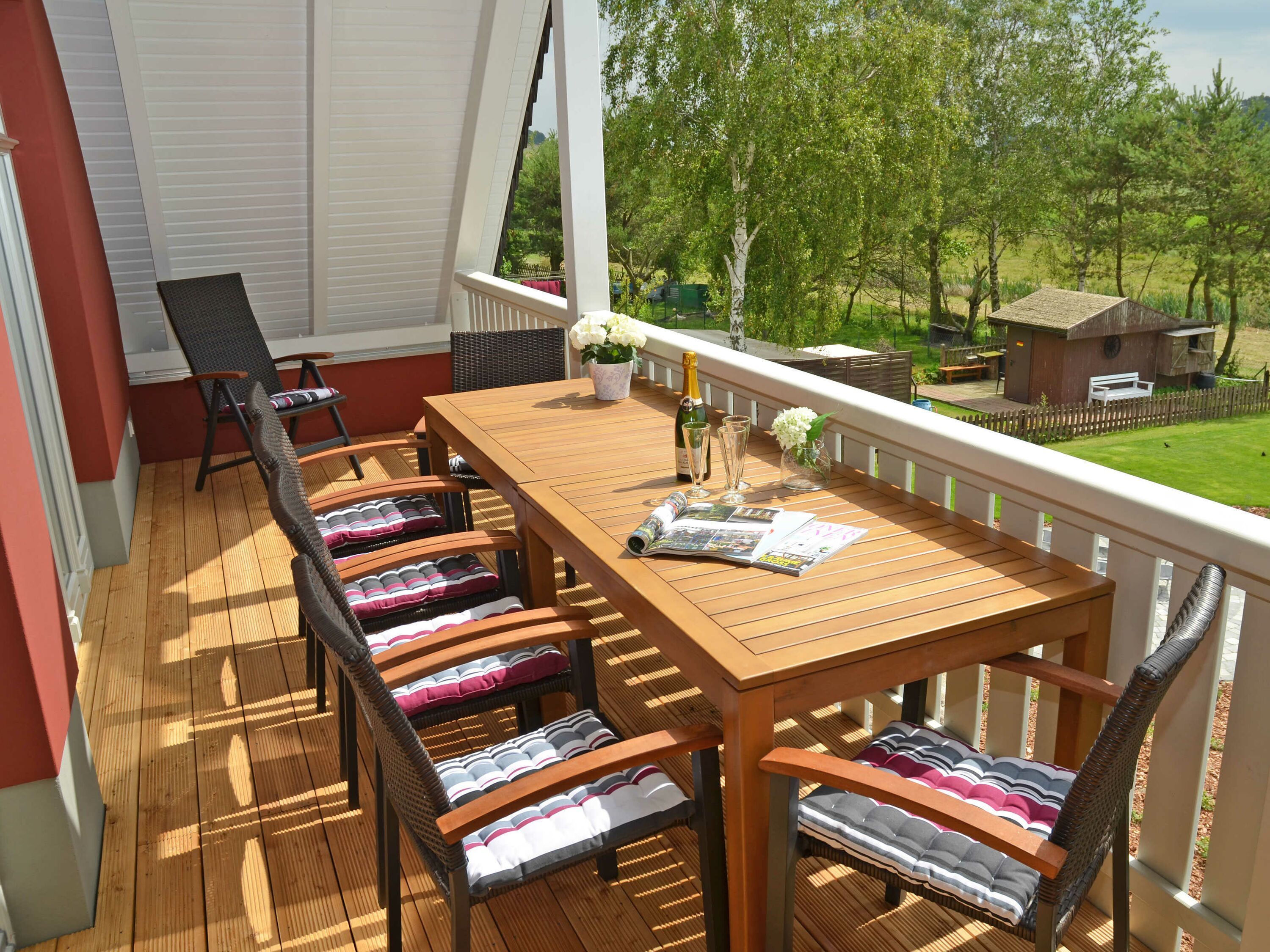 Der bestuhlte und überdachte Balkon zur Süd-Westseite lädt zu entspannten Stunden ein.