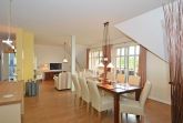Das 5-Raum-Appartement befindet sich im Obergeschoss des wunderschönen Hauses und hat ca. 130m² Wohnfläche. Im gesamten Haus verbinden sich technische Moderne und ländliche Optik von Farben und Einrichtung. Die weißen Wohnungsinnentüren mit profilierten Zargen und Türblättern, sowie die Holzfenster in lichtgrauer Optik, mit den passenden Fensterbänken, geben der Wohnung eine ganz persönliche Note.