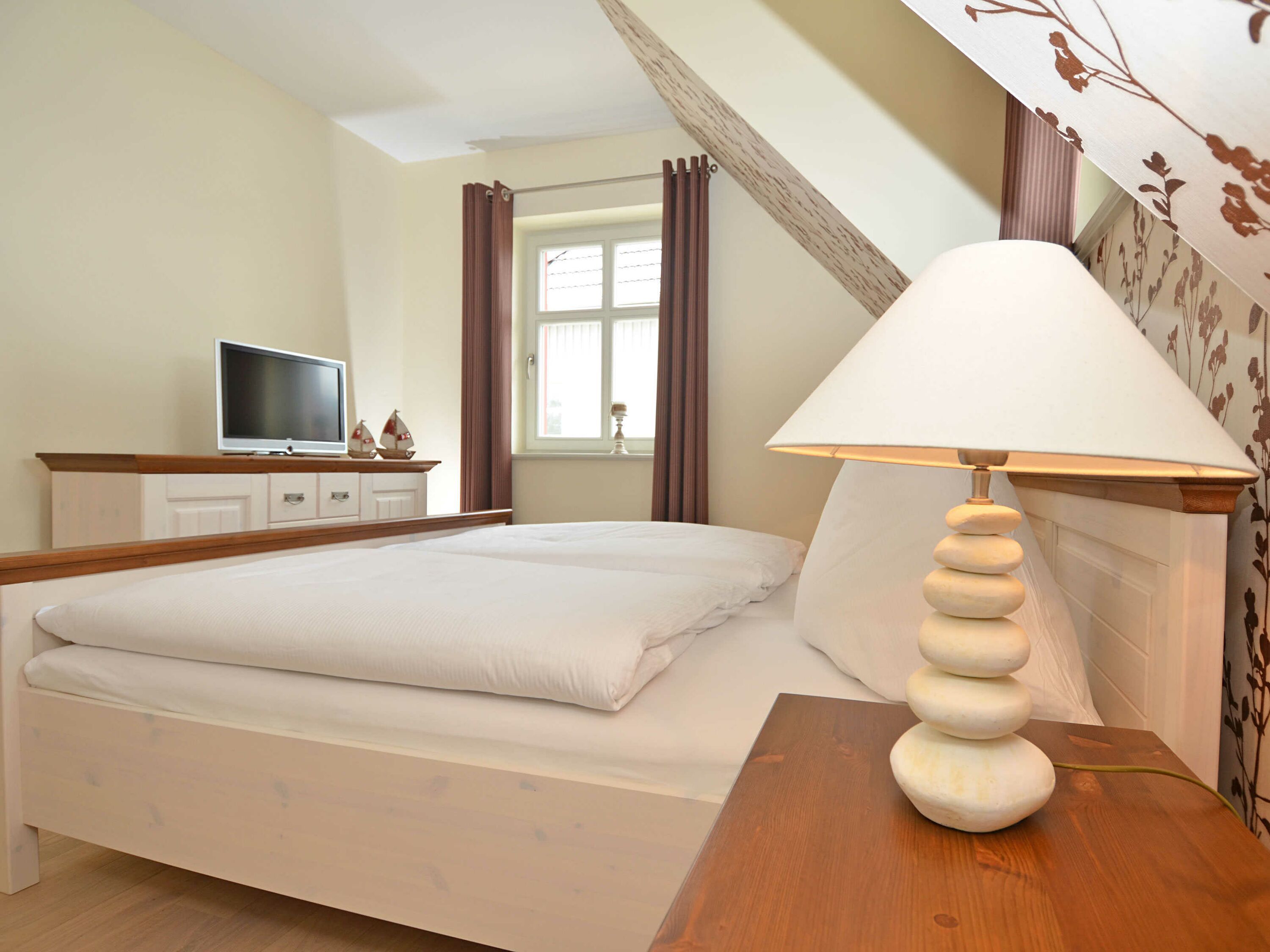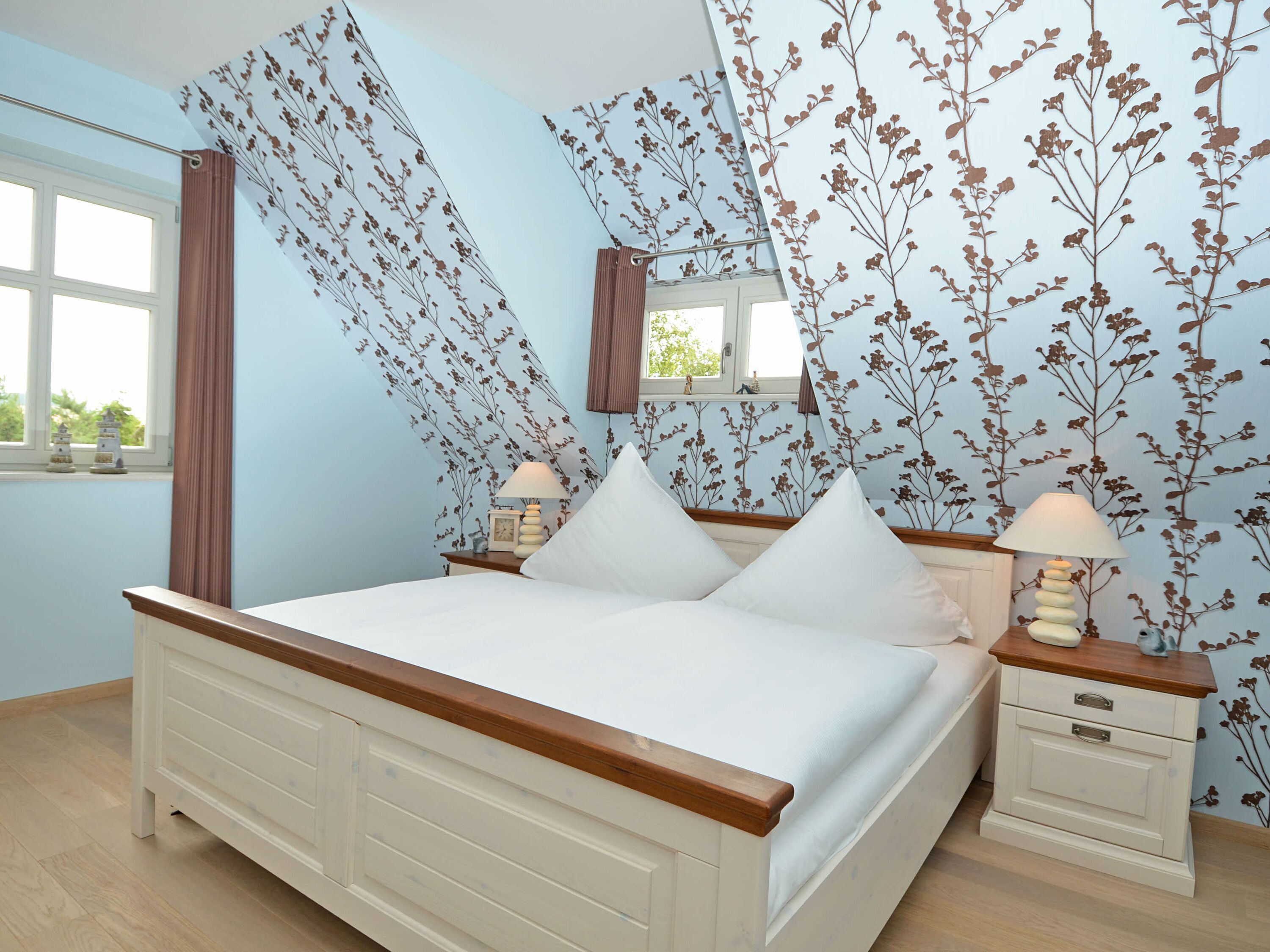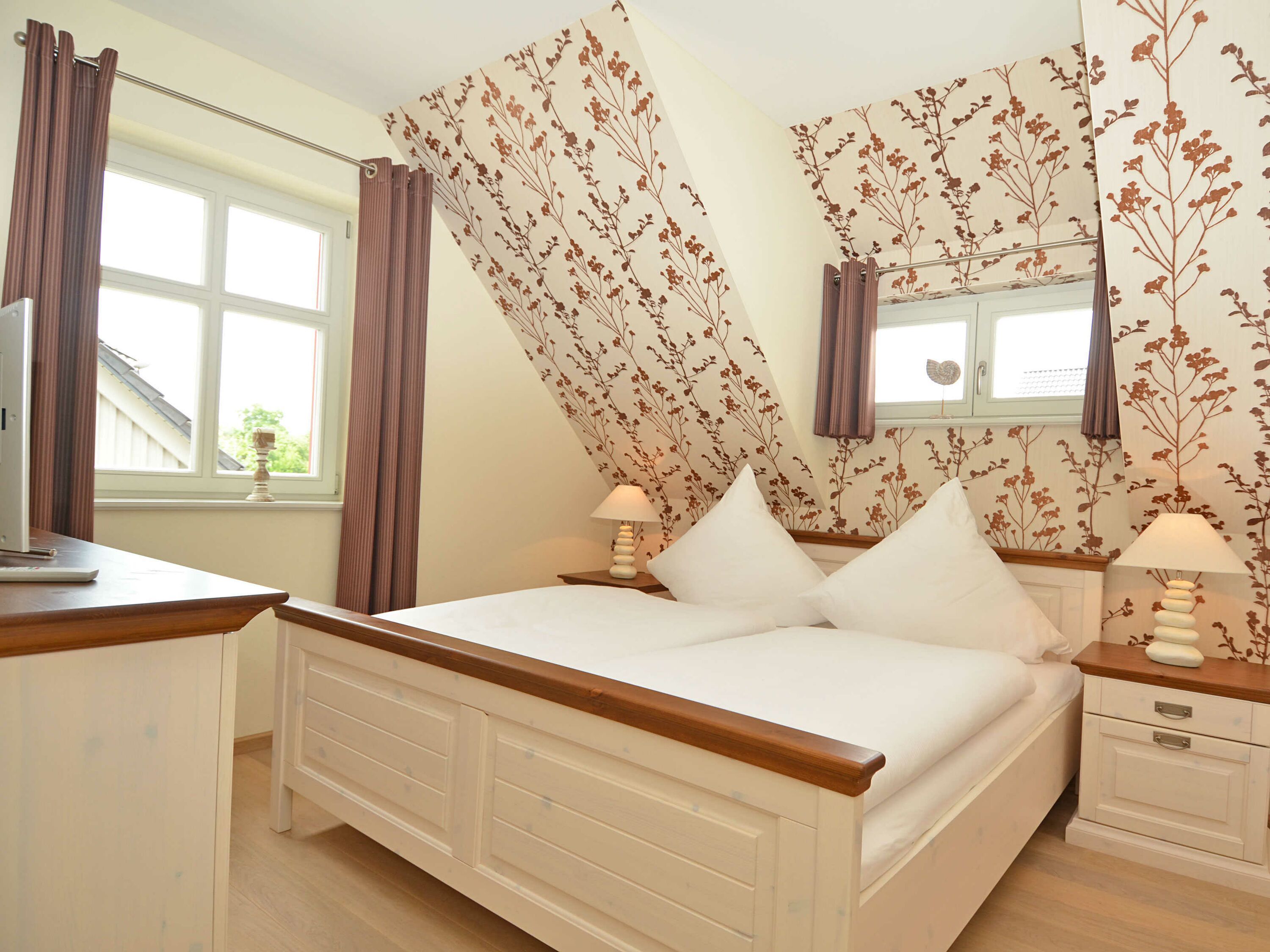 In der Wohnung gibt es insgesamt vier Schlafzimmer. Drei der Schlafzimmer sind mit je einem Doppelbett eingerichtet, das Vierte mit einem Einzelbett, alle mit ausreichend Stauraum für Ihre Garderobe, sowie Parkett in Landhausoptik. Zwei der vier Schlafzimmer verfügen jeweils über einen weiteren Flachbild-TV von LÖWE.