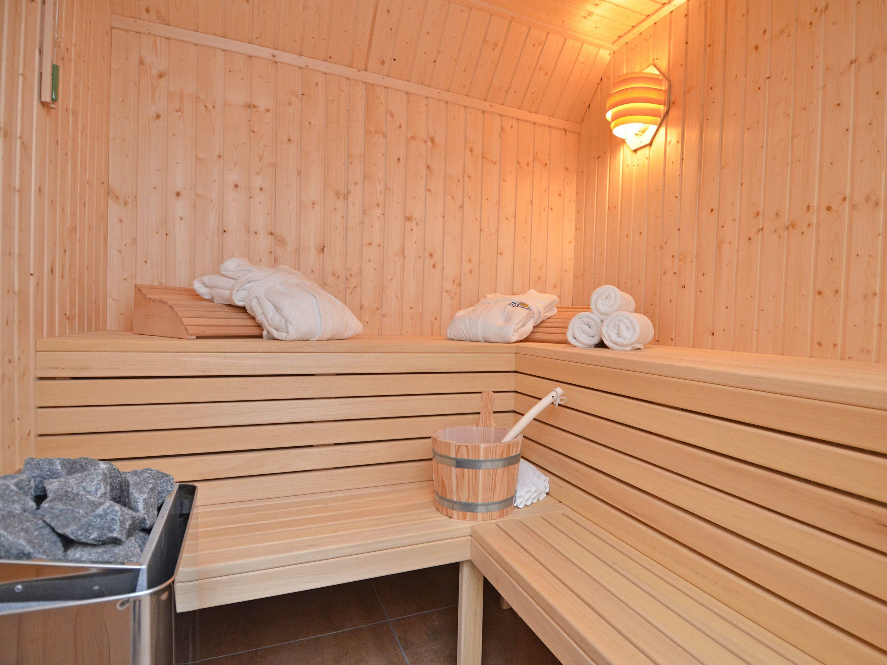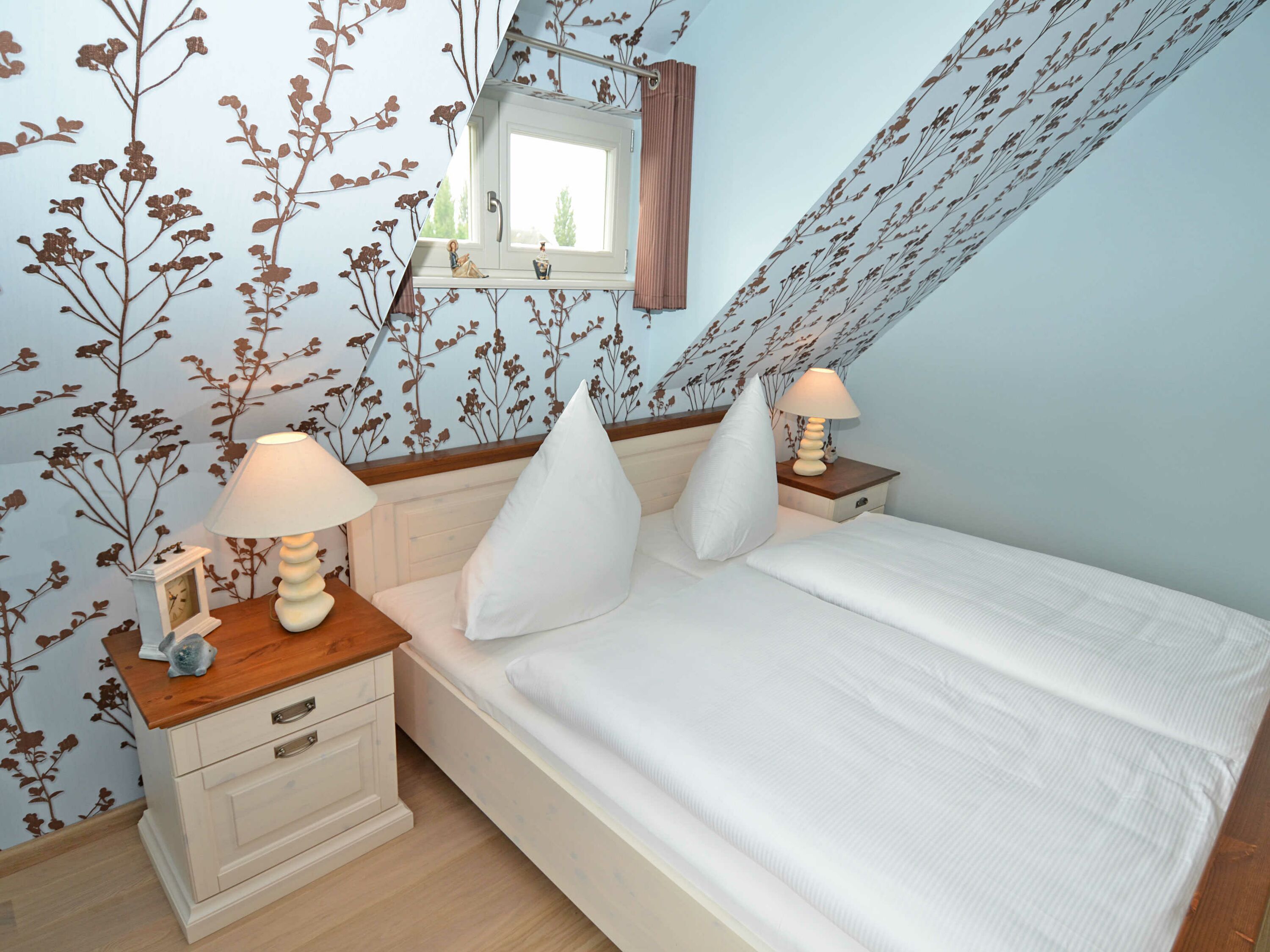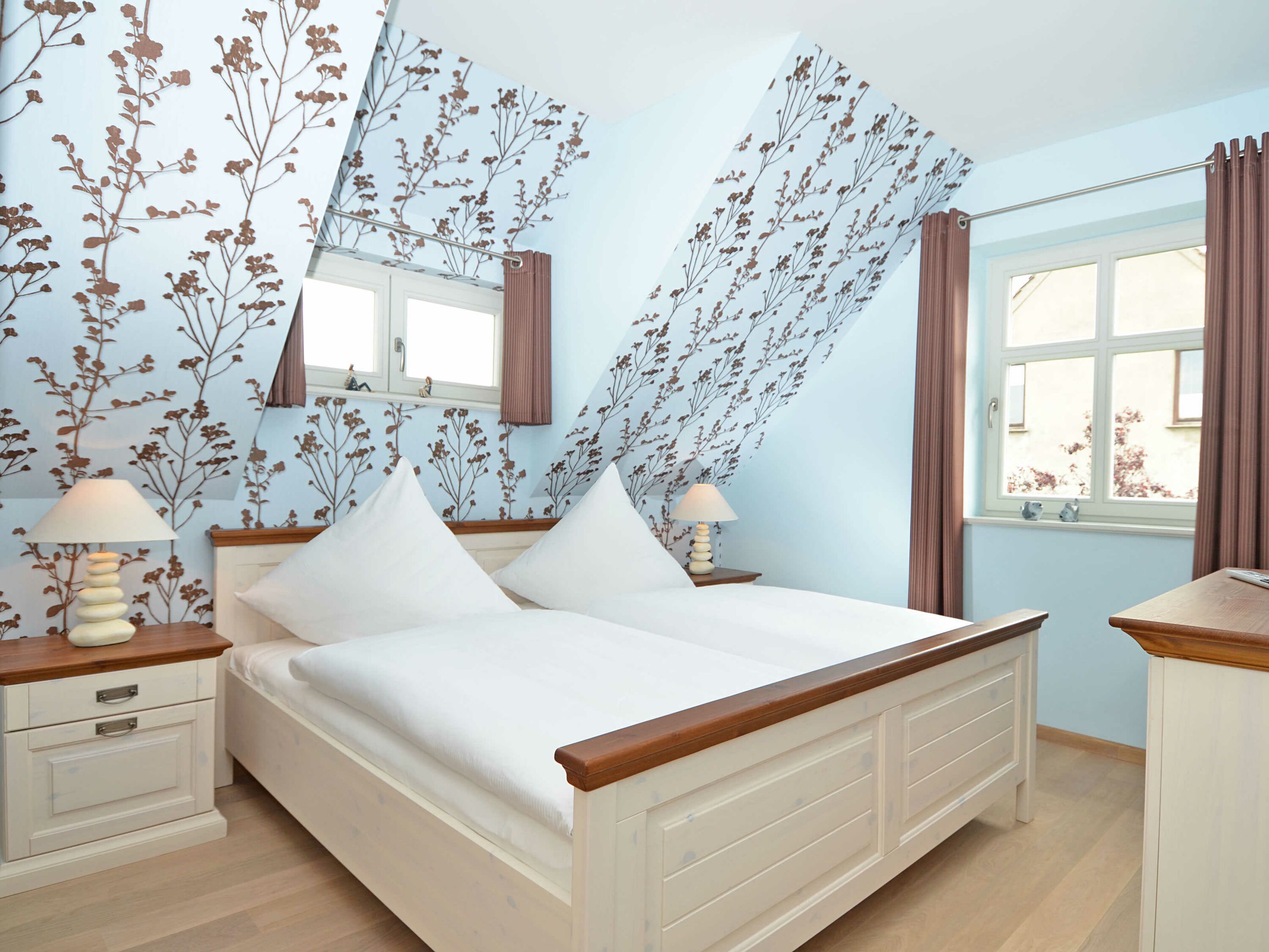 In der Wohnung gibt es insgesamt vier Schlafzimmer. Drei der Schlafzimmer sind mit je einem Doppelbett eingerichtet, das Vierte mit einem Einzelbett, alle mit ausreichend Stauraum für Ihre Garderobe, sowie Parkett in Landhausoptik. Zwei der vier Schlafzimmer verfügen jeweils über einen weiteren Flachbild-TV von LÖWE.