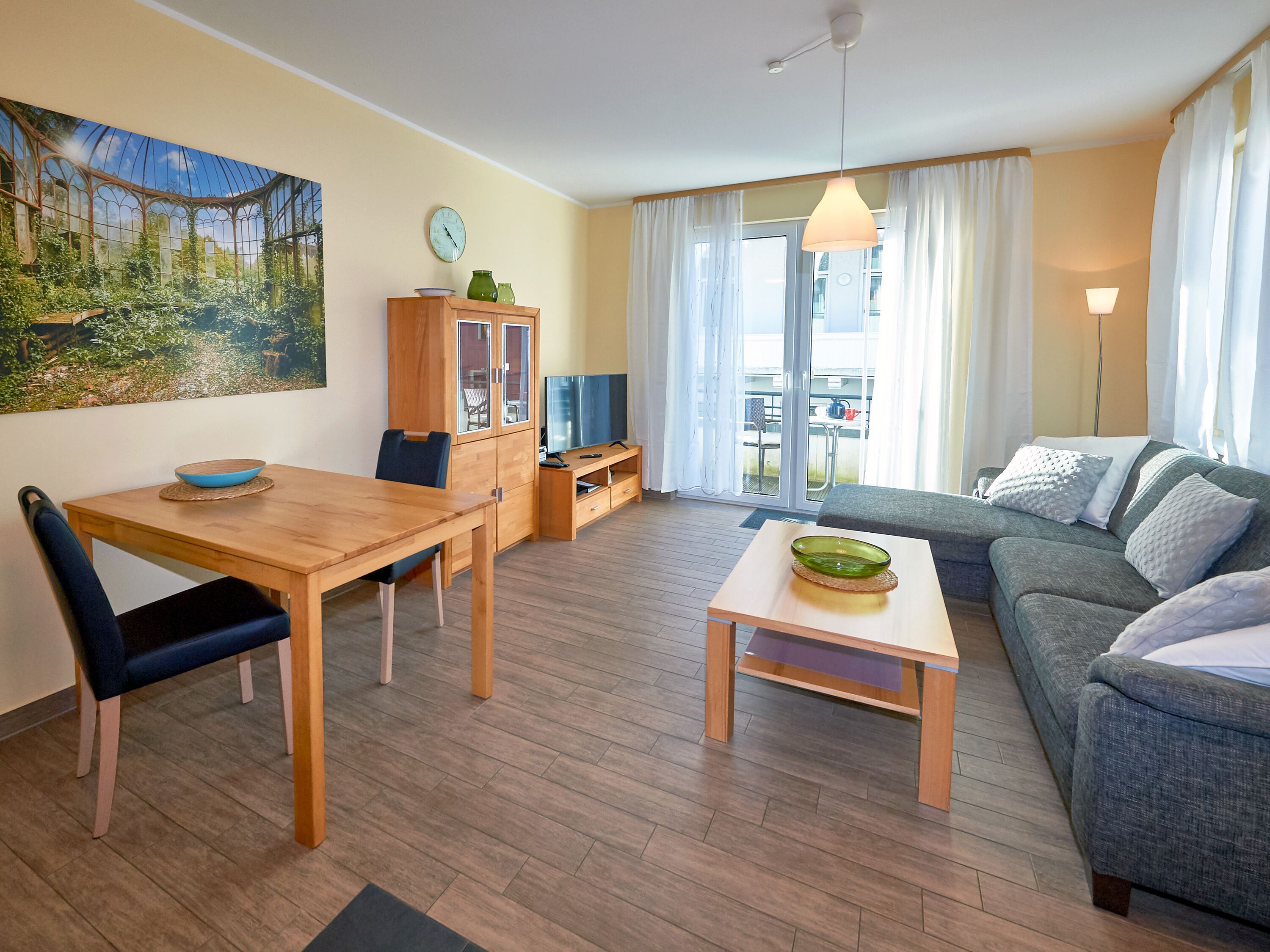 Vom Eingangsbereich gelangen Sie durch die großzügige Diele in den modern eingerichteten Wohn- und Essbereich, der mit einem großen SMART-TV, einem DVD-Player und einer Stereoanlage mit CD-Player ausgestattet ist. Machen Sie es sich auf der gemütlichen Couch (Aufbettungsmöglichkeit für eine Person) bequem. Wer seine Lieblingsfilme streamen oder mobil arbeiten möchte, wird sich darüber hinaus über das schnelle W-LAN von bis zu 50 Mbit/s freuen.