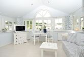 Über einen Flur gelangen Sie in den gemütlich ausgestatteten Wohn- und Essbereich. In diesem befinden sich u.a. einen Esstisch für zwei Personen, ein LCD-Fernseher, eine BOSE Bluetooth-Soundanlage sowie ein schnurloses Telefon. Kostenloser Internetzugang (per Datenkabel oder per WLan) steht zu Ihrer Verfügung. Ein besonderes Highlight dieser Wohnung ist die verglaste Veranda, welche zum Verweilen einlädt.