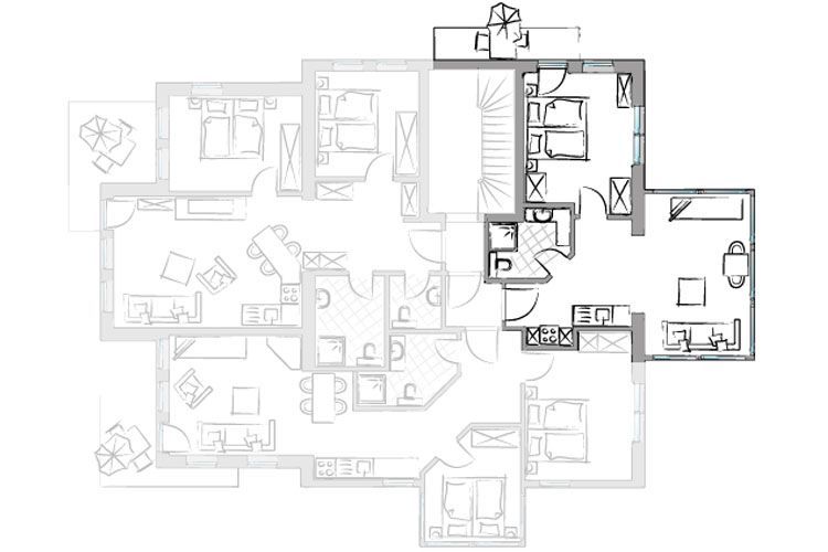Unser Tipp: Die Wohnung 6 und 7 können zusammen als Penthouse gebucht werden.