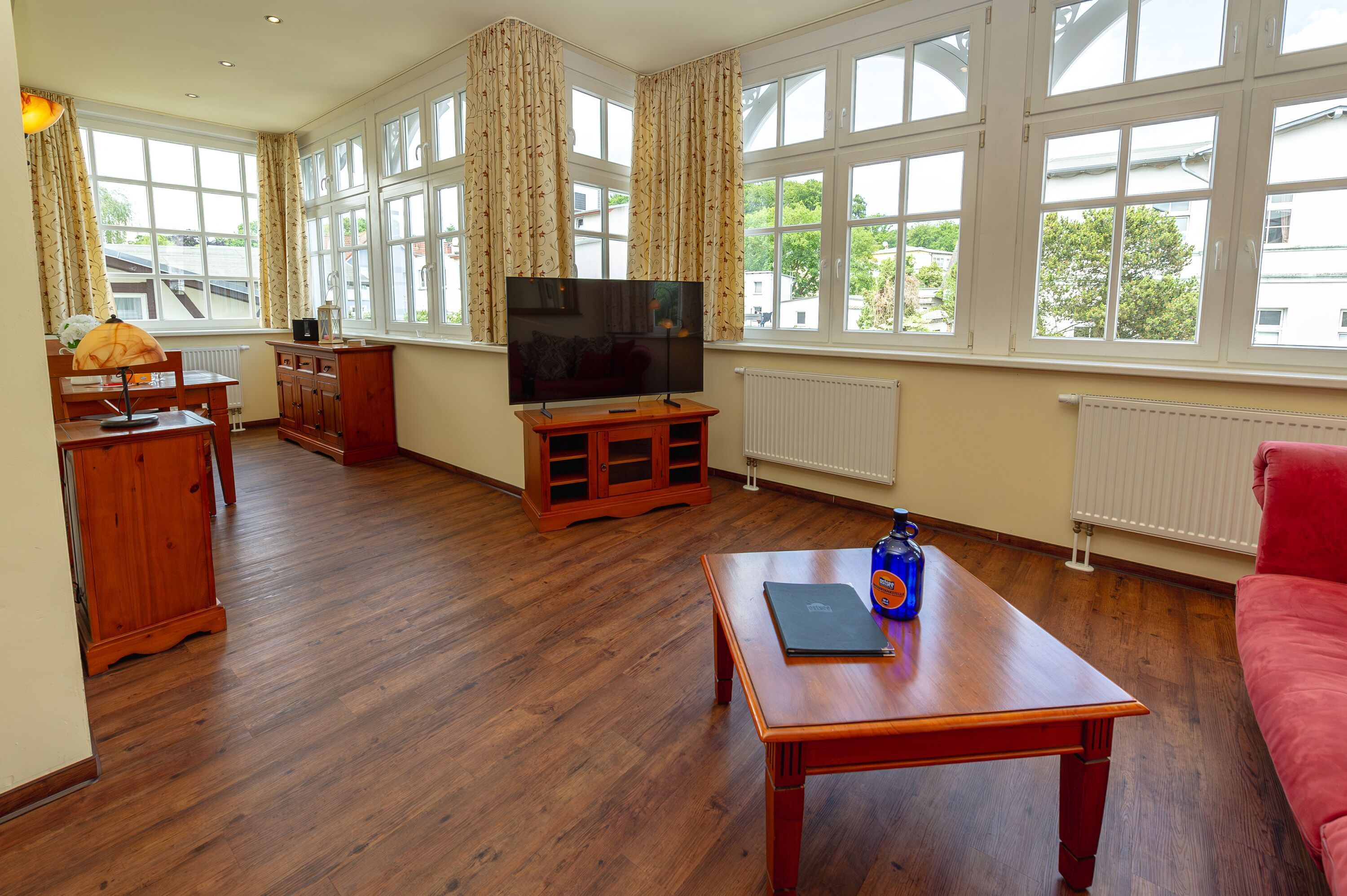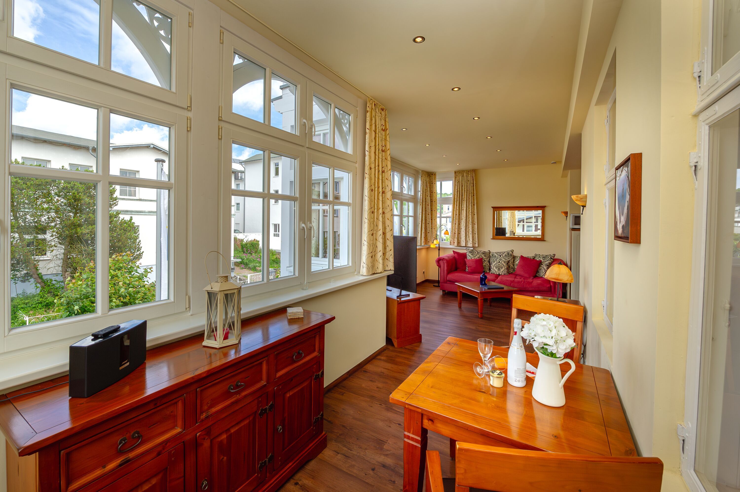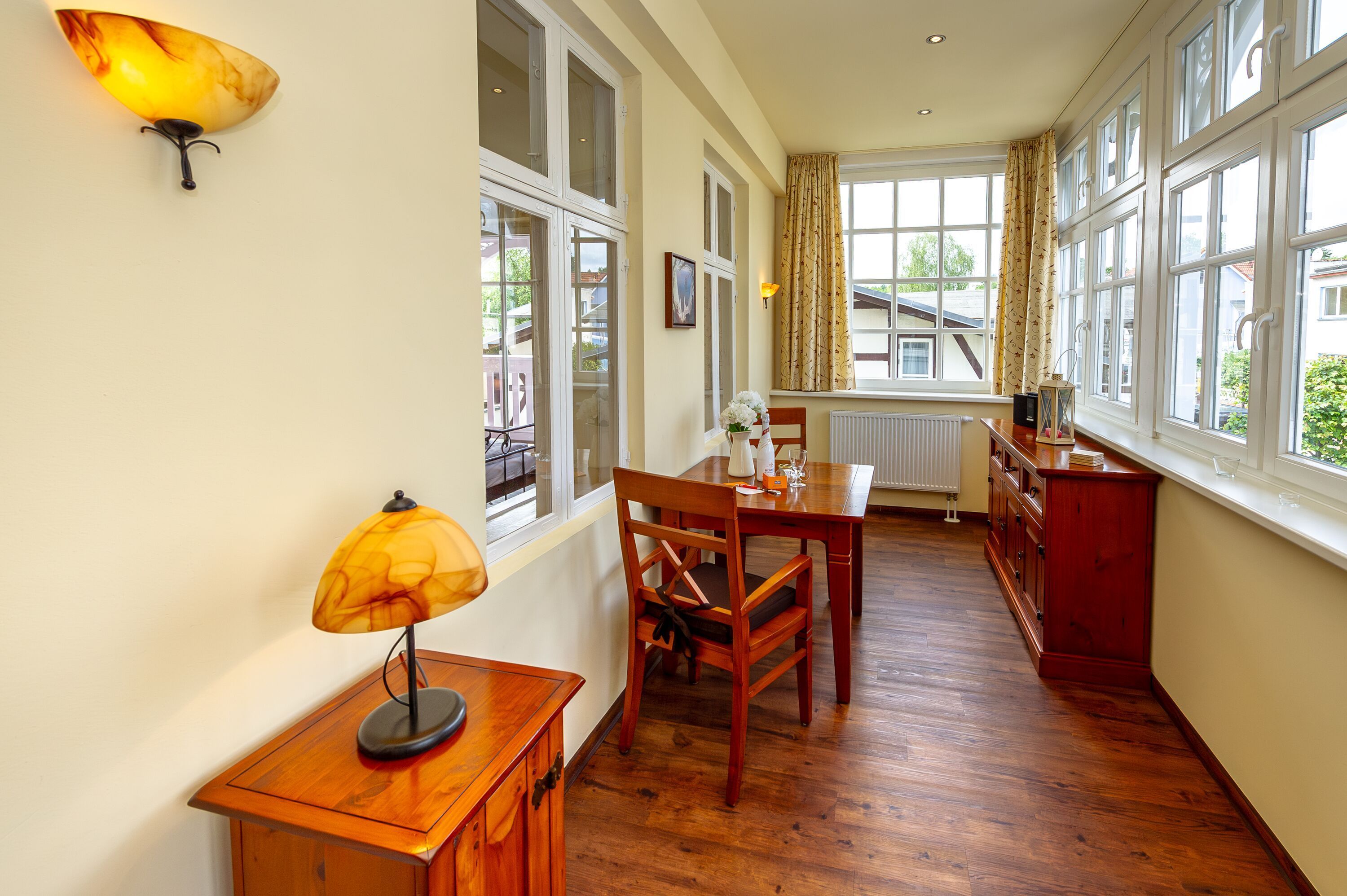 Dieses schöne 2-Raum-Appartement im 1. Obergeschoss ist im bernsteinfarbenen Landhausstil eingerichtet, hat eine Wohnfläche von ca. 56 m² und einen möblierten Balkon (ca. 5 m²) zur Abendsonne.