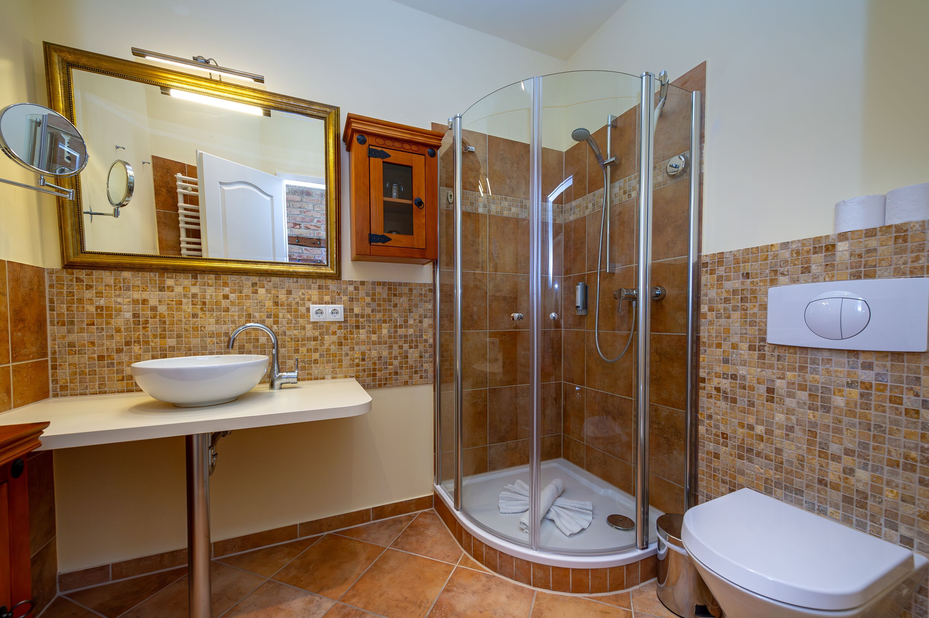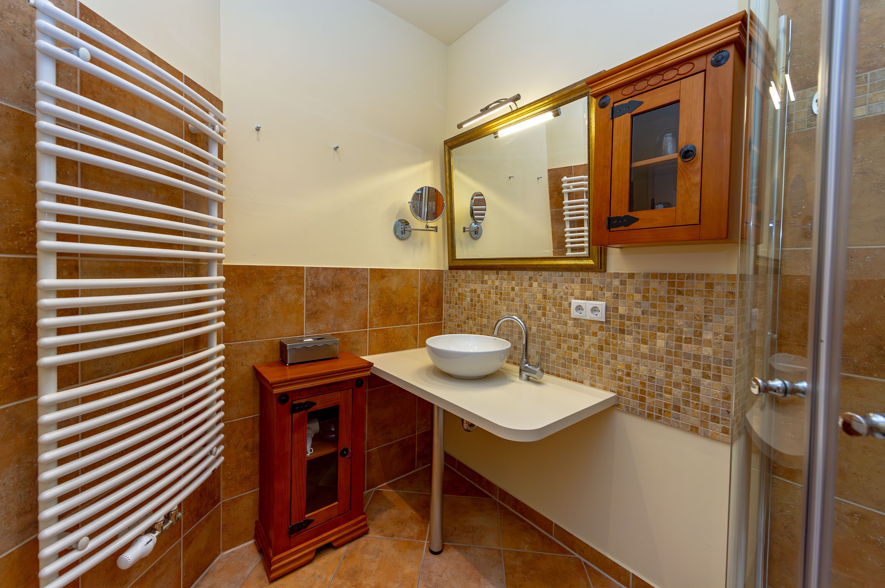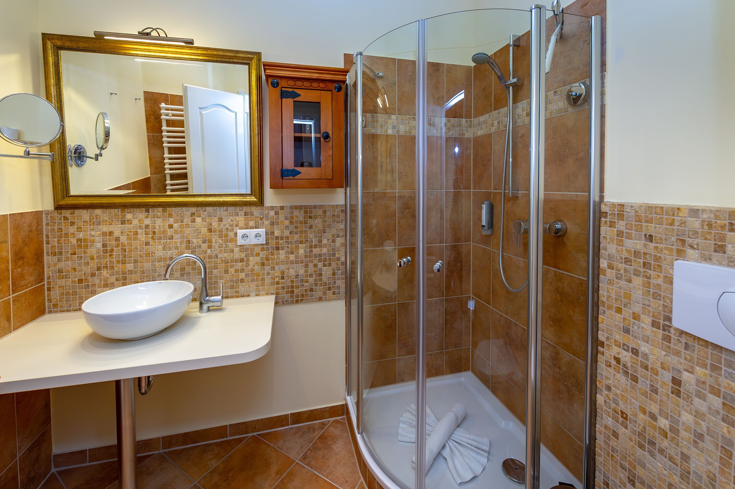 Es steht Ihnen ein modernes Duschbad mit WC, Waschbecken, Handtuchheizung und Fußbodenheizung zur Verfügung.