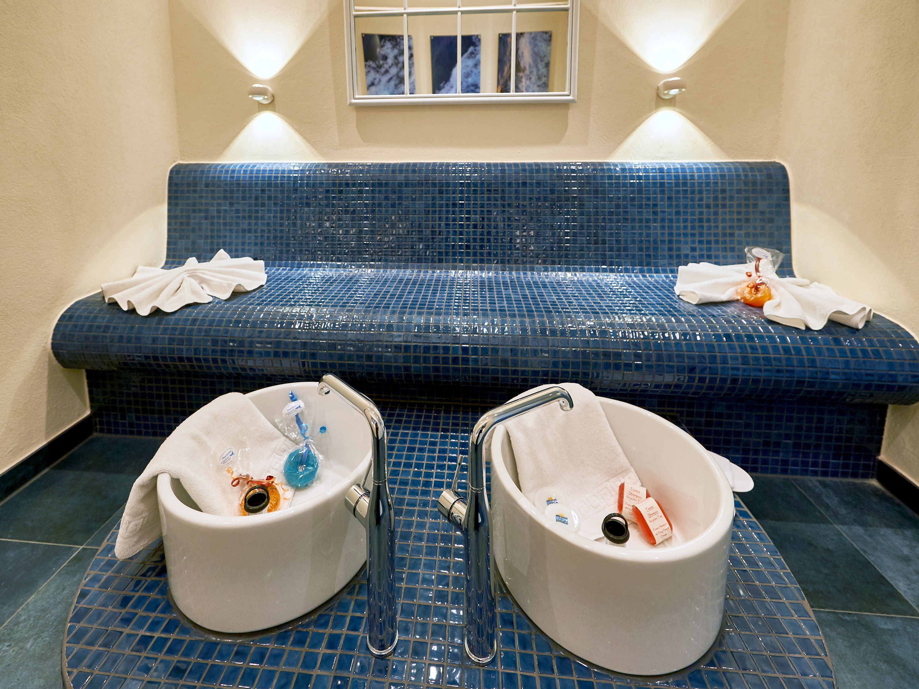 • Im Souterrain des Hauses steht ein kleiner Wellnessbereich mit Sauna, Duschen, WC und Ruhezone kostenlos zur Verfügung.
