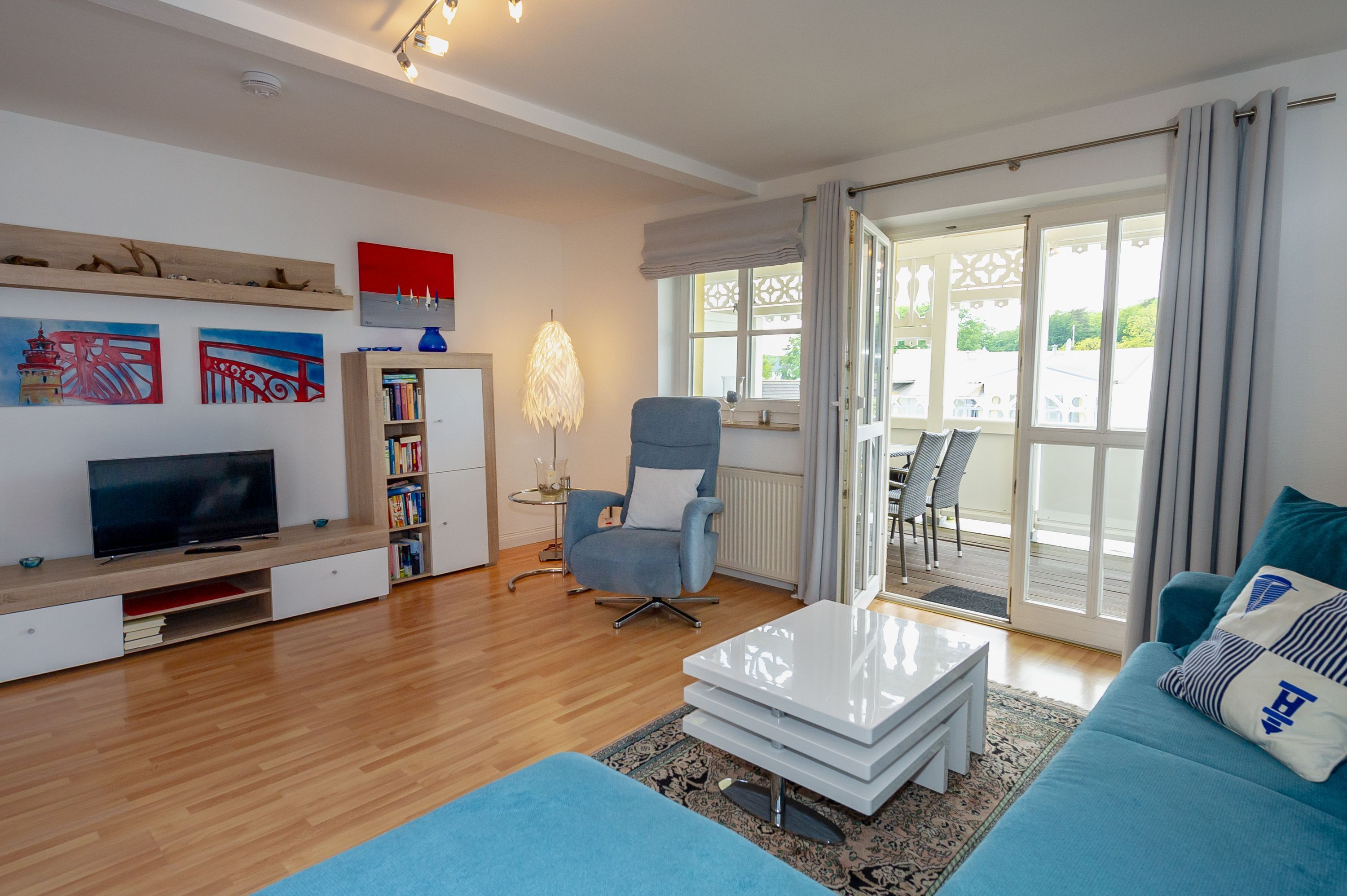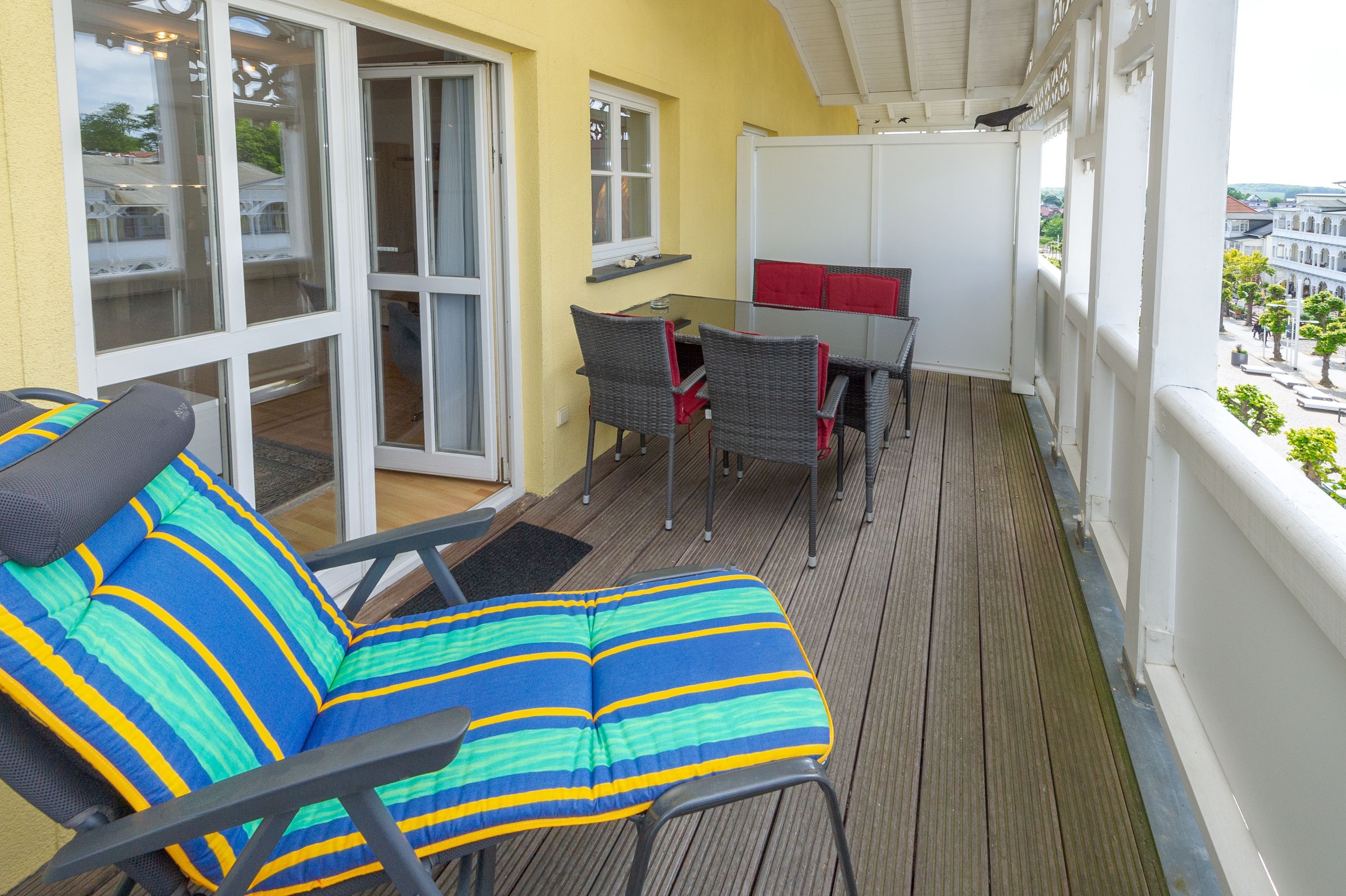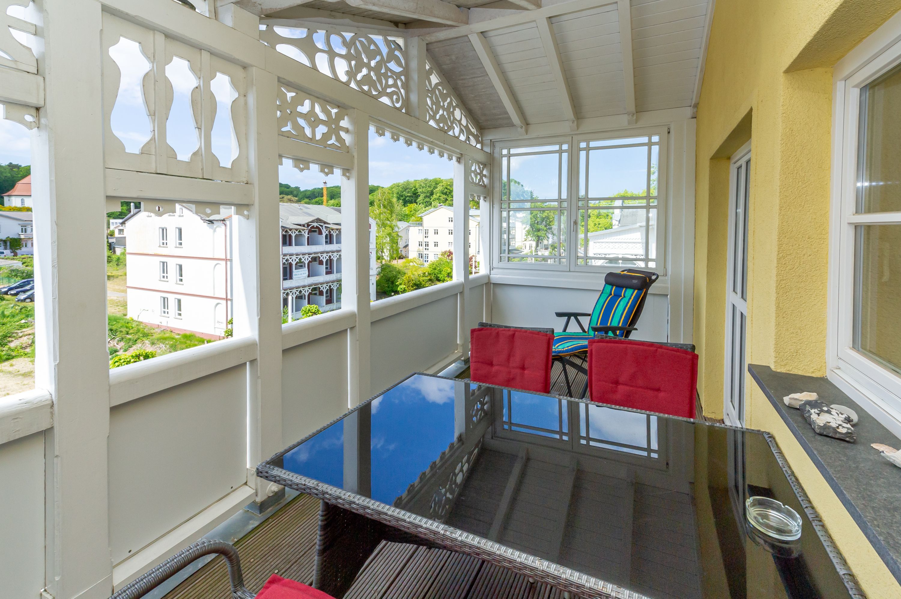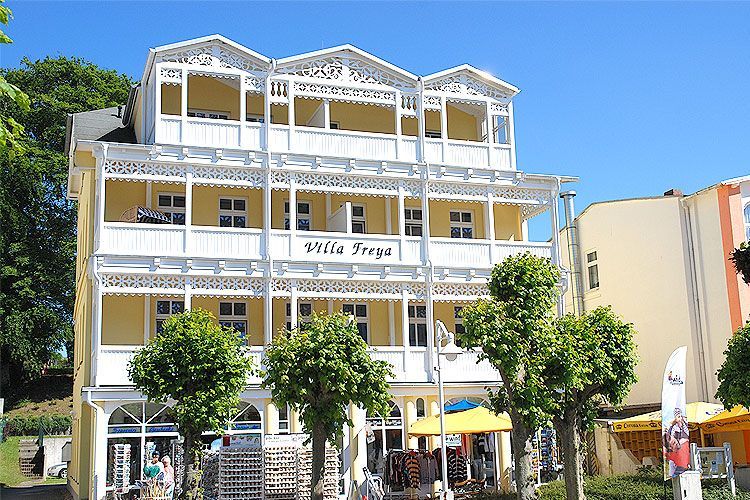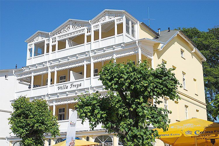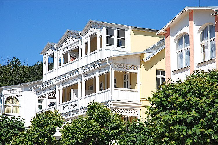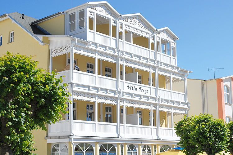 Die wunderschön restaurierte Villa Freya im Stil der Bäderarchitektur ist in der Wilhelmstrasse des Ostseebades Sellin gelegen - ca. 350 m vom Strand und der Seebrücke entfernt. Ihr rund 81 m² großes 3-Raum-Appartement erwartet Sie im dritten Obergeschoss des Hauses und hat gleich zwei möblierte Balkone, einen zur Morgen- und einen zur Abendsonne.