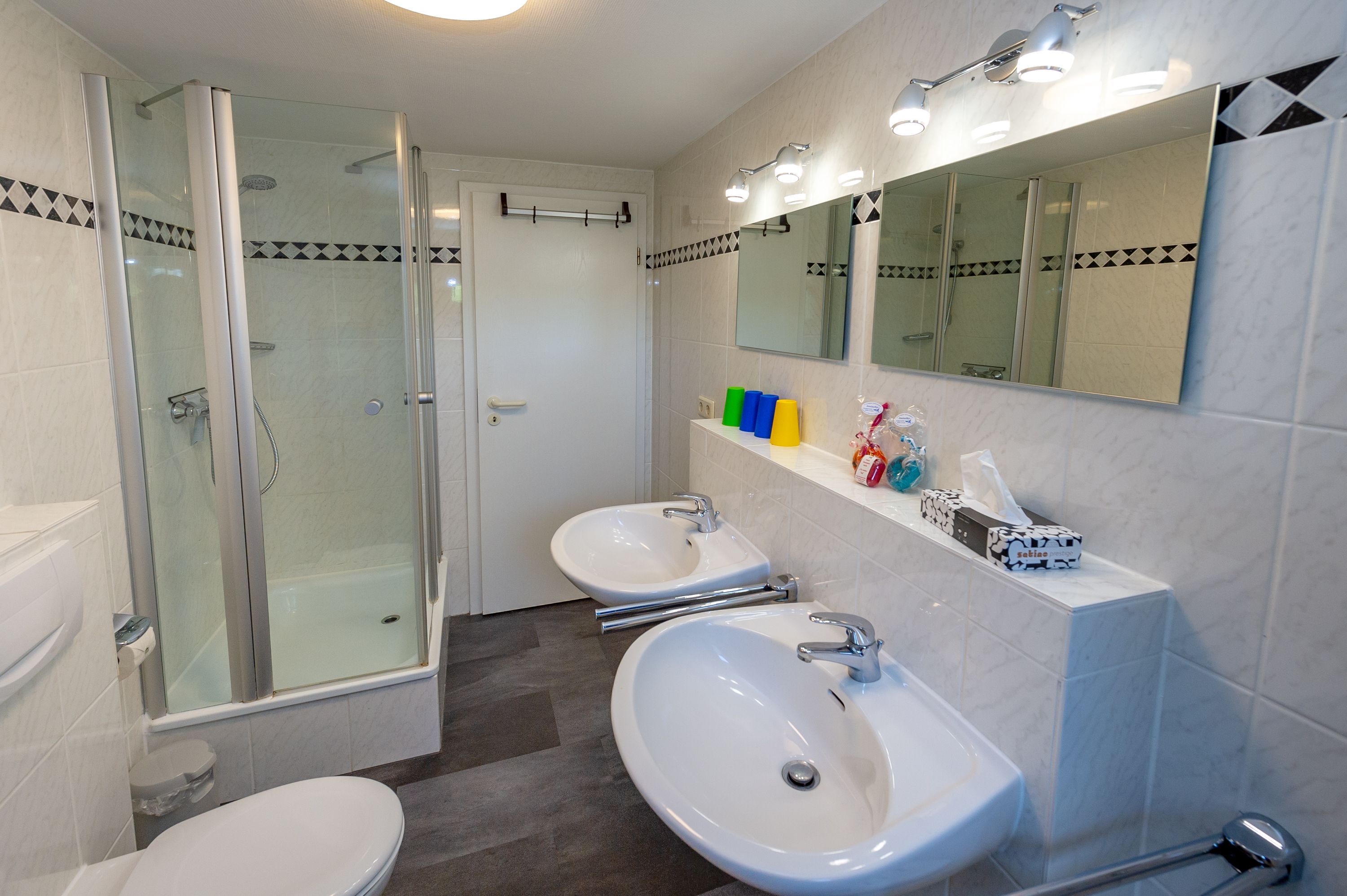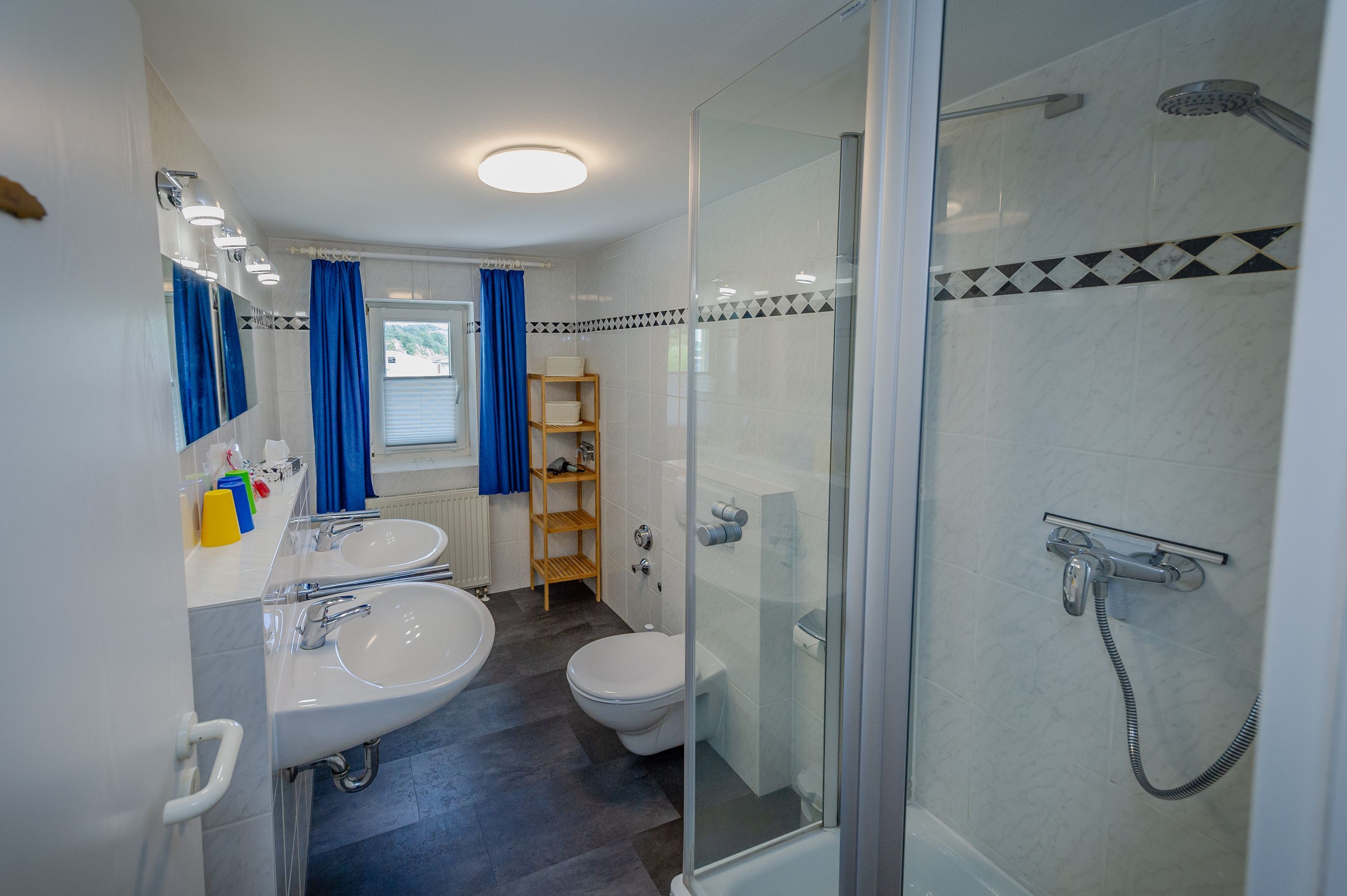 Auch das Tageslichtbad Ihrer Wohnung, ausgestattet mit Dusche/WC, zwei Waschbecken und Haartrockner, weiß zu überzeugen.