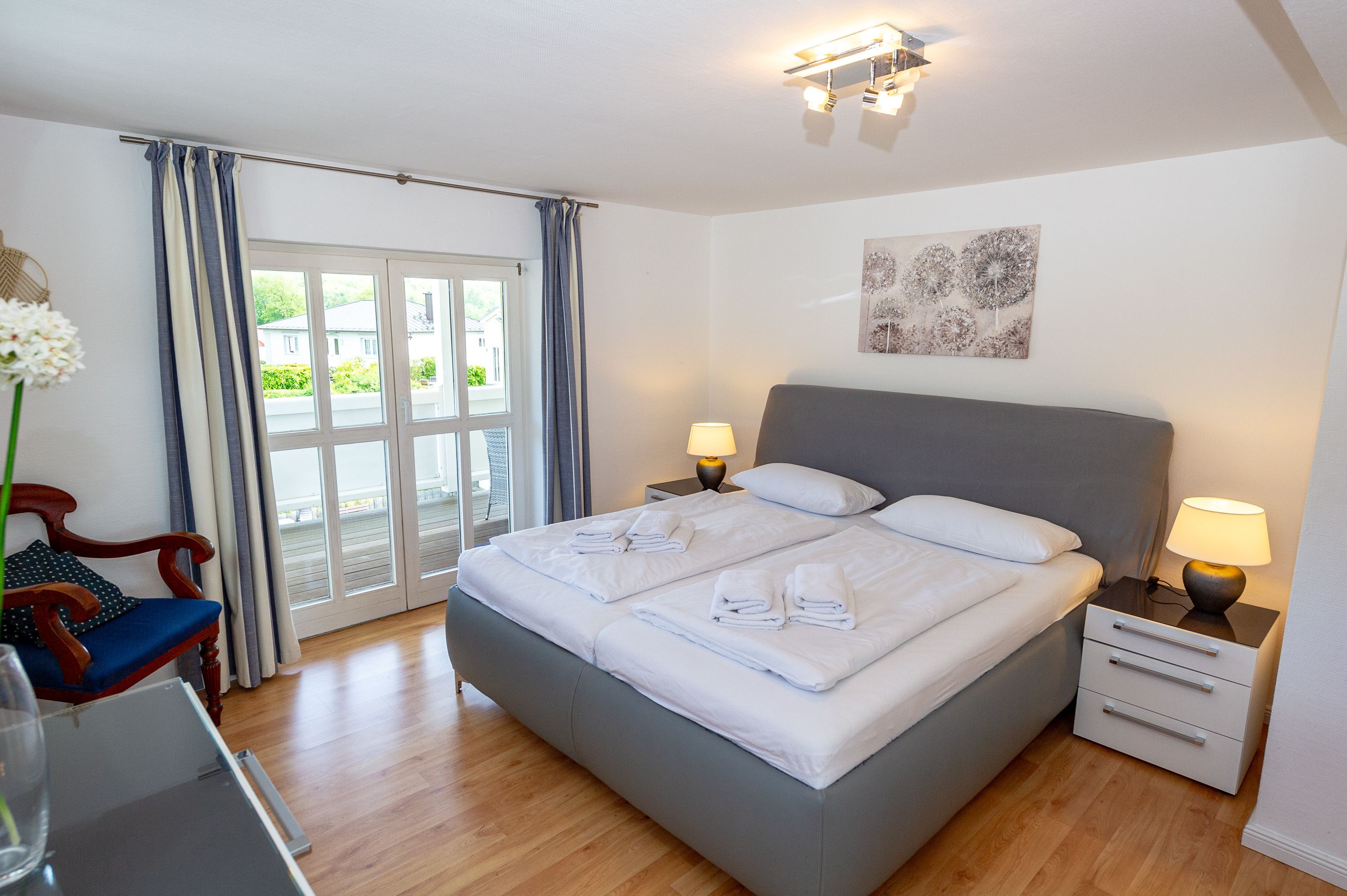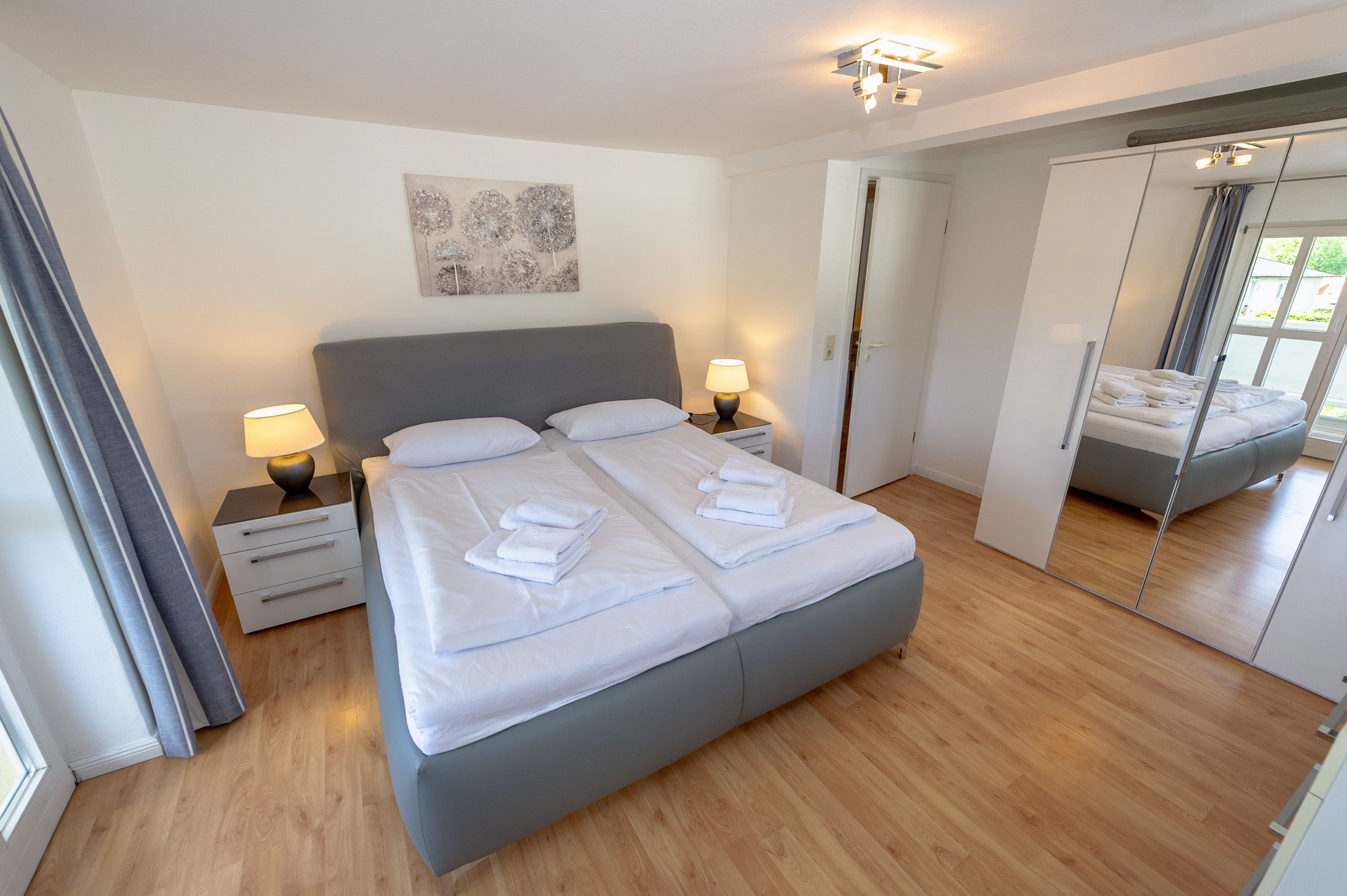 Das große Schlafzimmer Ihres Zuhauses auf Zeit ist mit einem bequemen Doppelbett und einem geräumigen Kleiderschrank für die Urlaubsgarderobe ausgestattet. Wenn Sie lieber getrennt schlafen möchten, steht darüber hinaus noch ein kleines Schlafzimmer mit einem Einzelbett zur Verfügung.