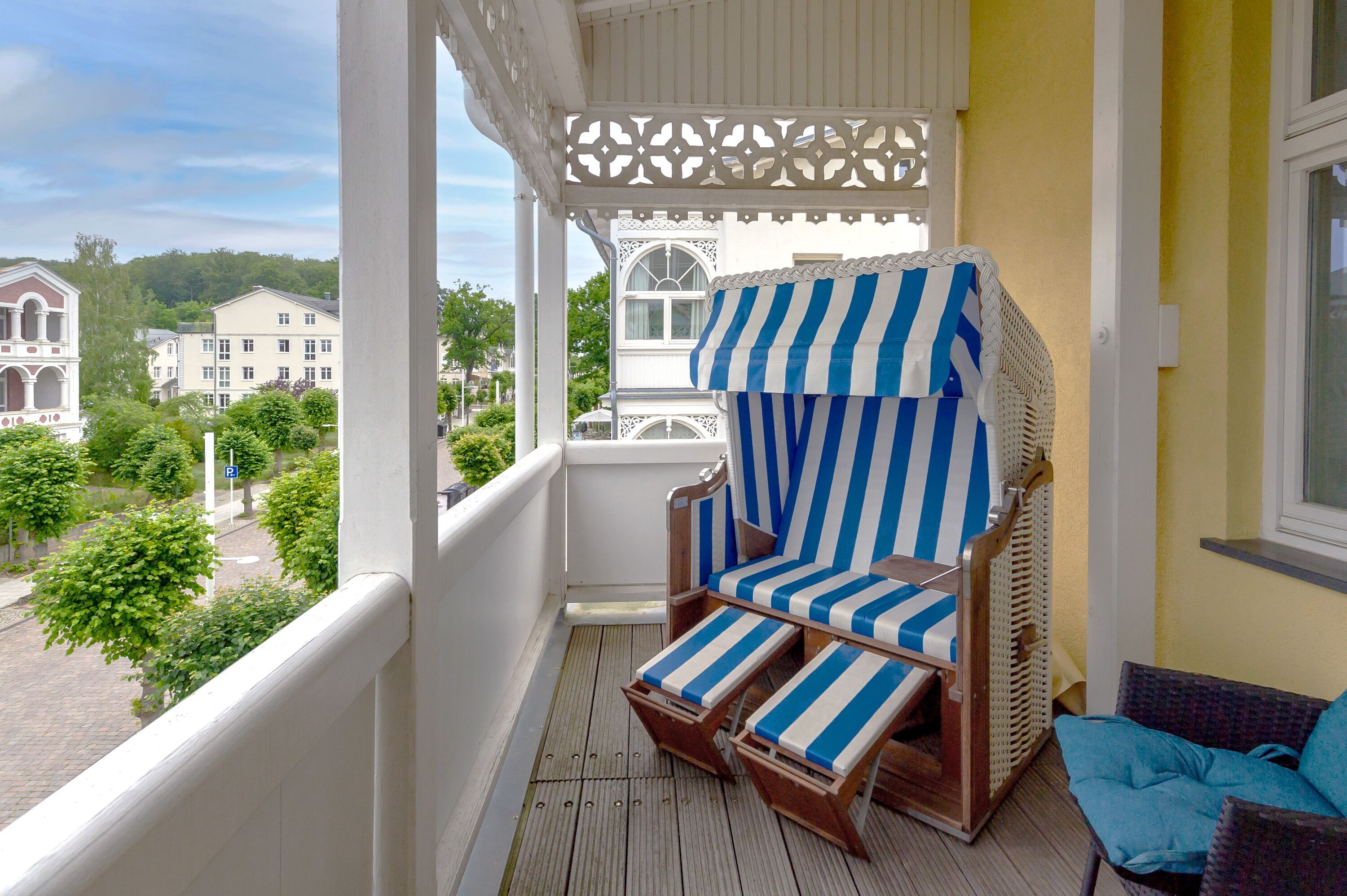 Dieses gemütliche 2-Raum-Appartement mit großem, überdachten Balkon zur Abendsonne begrüßt Sie im zweiten Obergeschoss der Villa Freya und verfügt über rund 50 m² Wohnfläche.