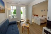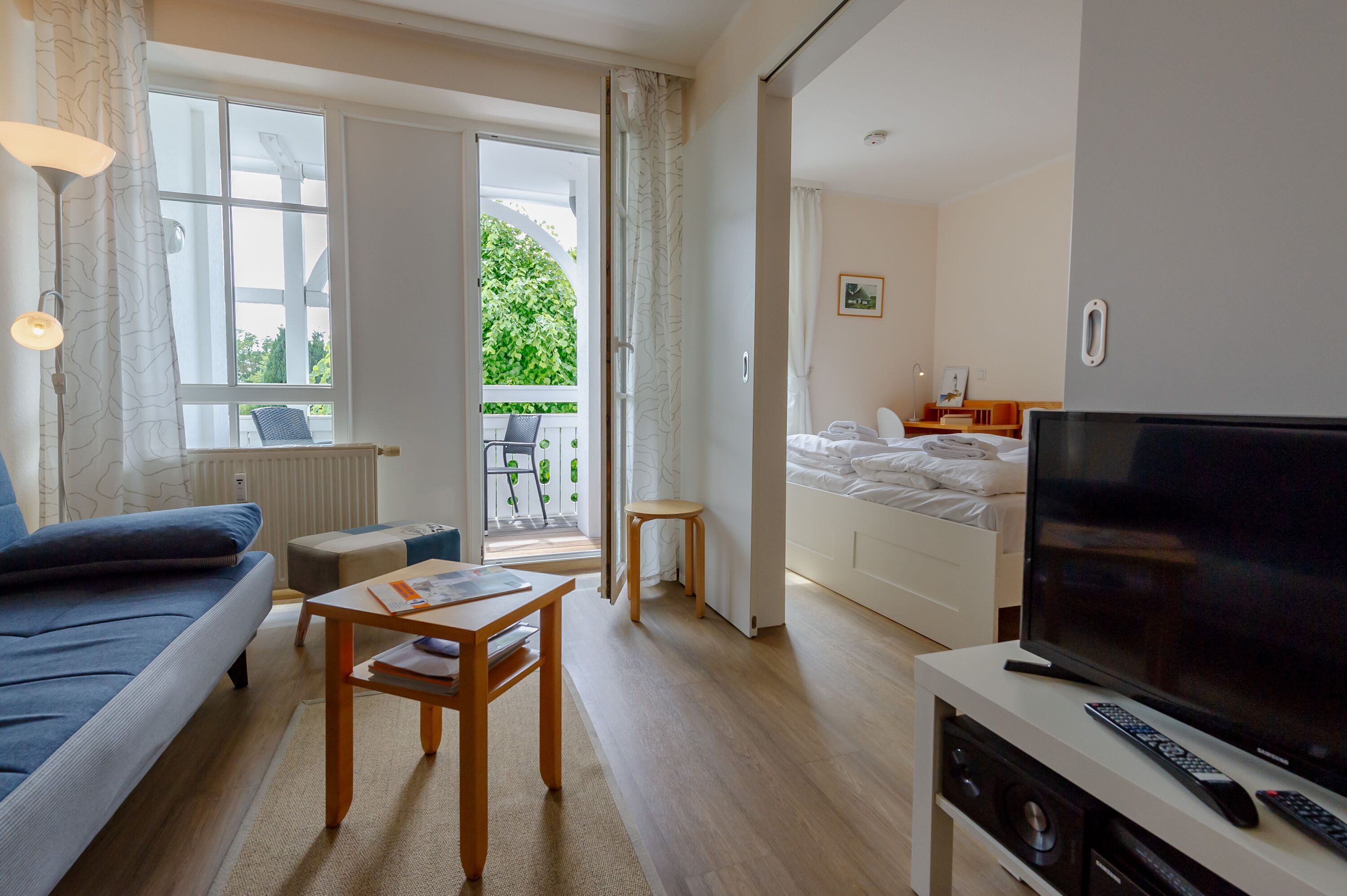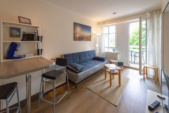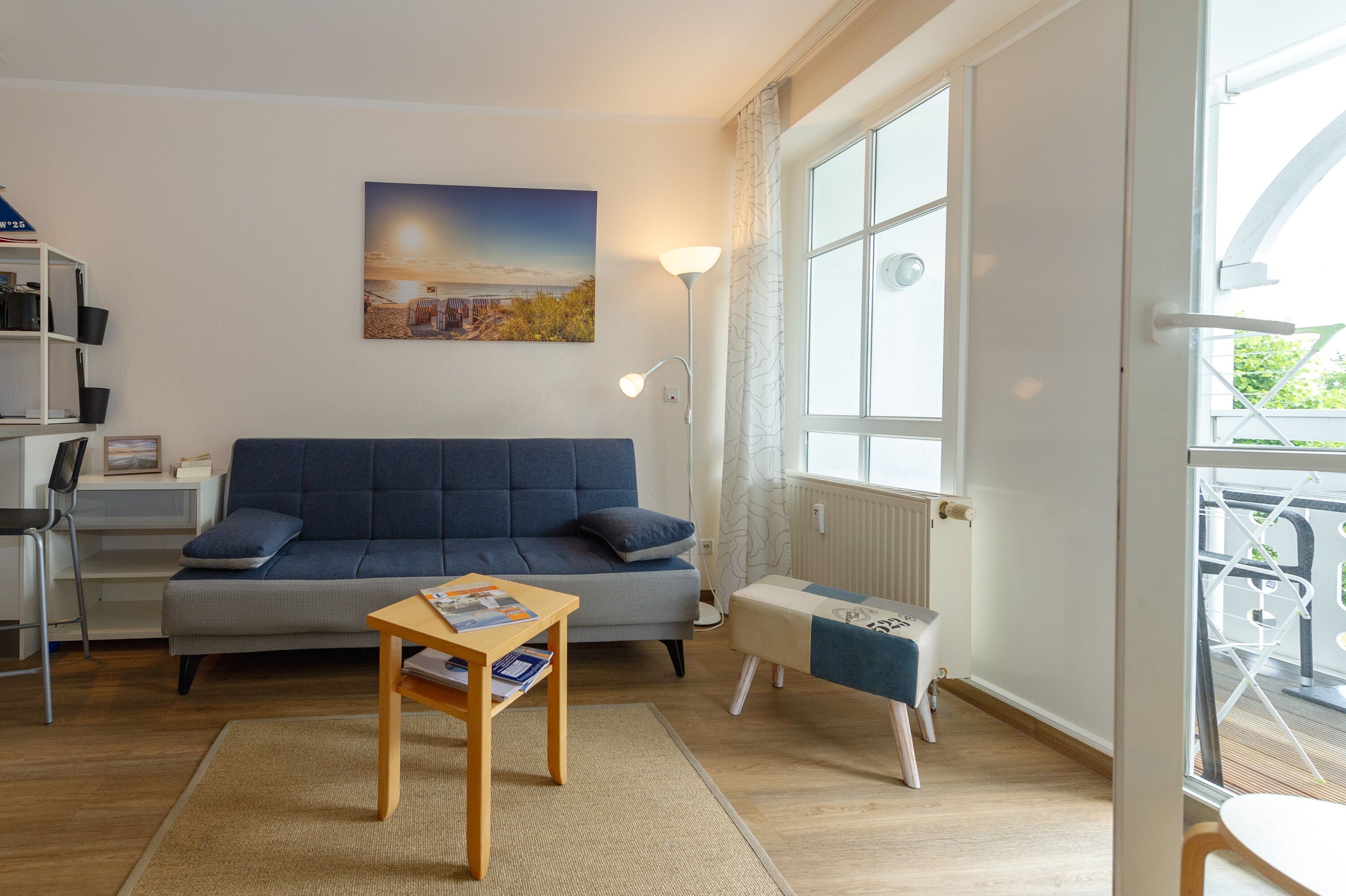 Nach einem erlebnisreichen oder entspannten Tag auf Rügen lädt das Sofa (Aufbettung für eine zusätzliche Person) zum Fernsehen, Lesen oder Musikhören ein. Oder lassen Sie Ihren schönen Urlaubstag auf dem gemütlichen Balkon mit Abendsonne und einen guten Glas Wein ausklingen.