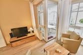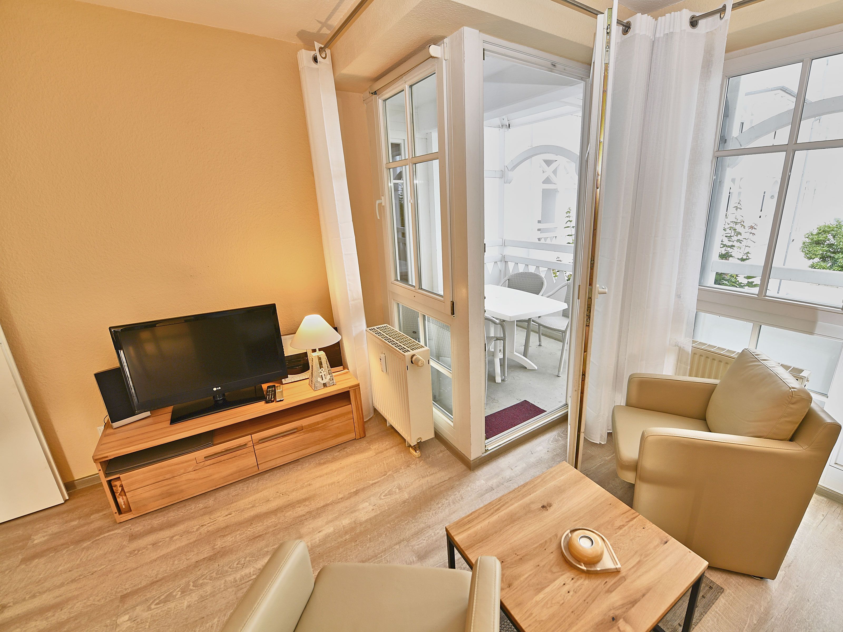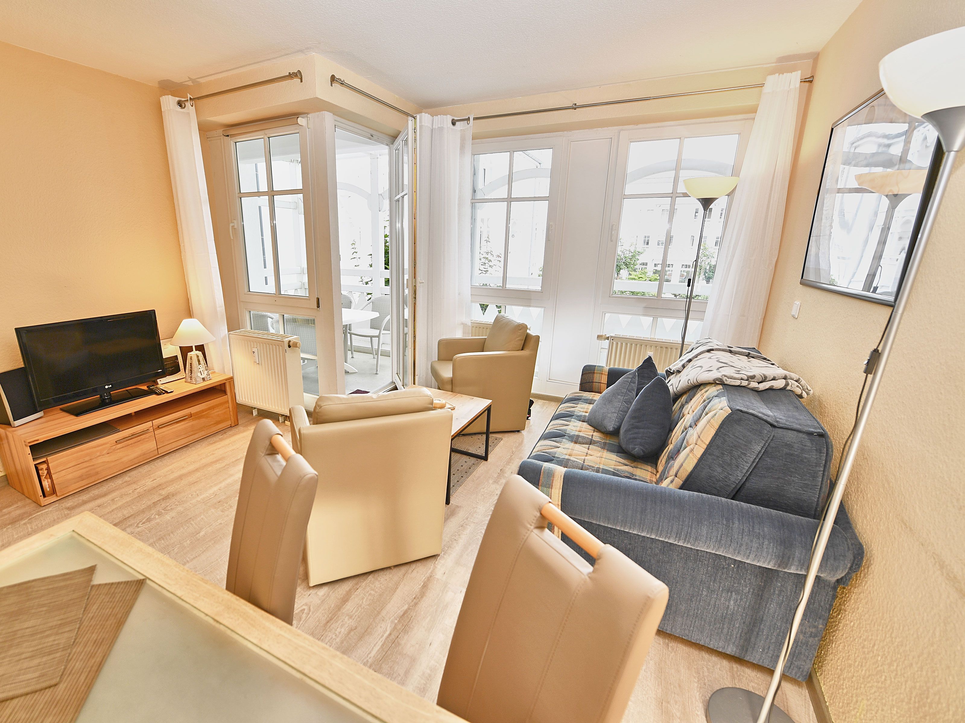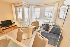 Das schöne 3-Raum-Appartement ist ca. 60 m² groß und befindet sich im 1. Obergeschoss des „Haus Baabe“. Die Wohnung verfügt über ein schönes Wohnzimmer mit Sitzecke, TV, Stereoanlage und einem großen Esstisch für 4 Personen.