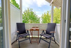 Dieses 2-Raum-Appartement unter gemütlichen Dachschrägen im zweiten Obergeschoss ist rund 32 m² groß und hat einen überdachten Balkon zur Südseite.