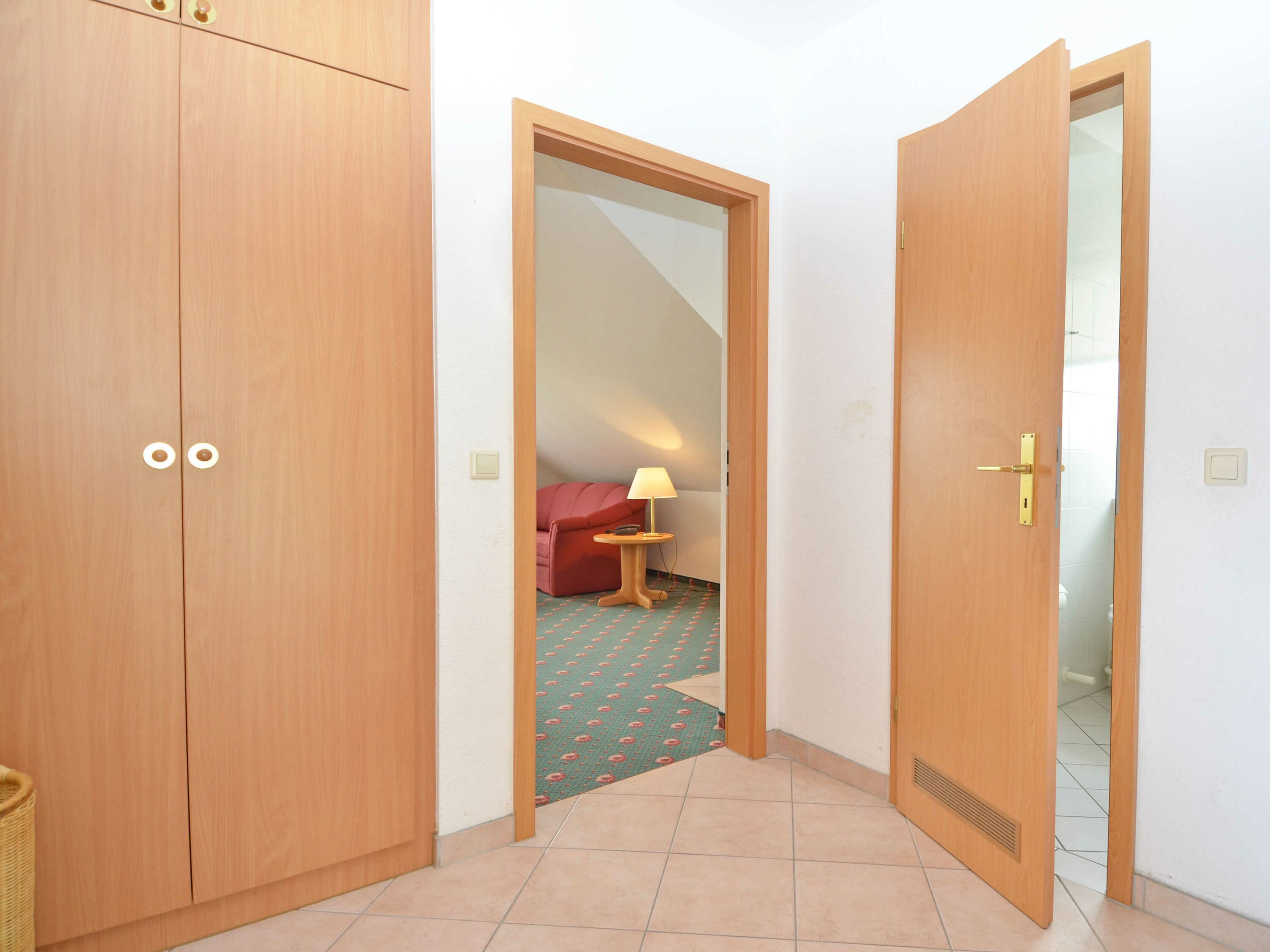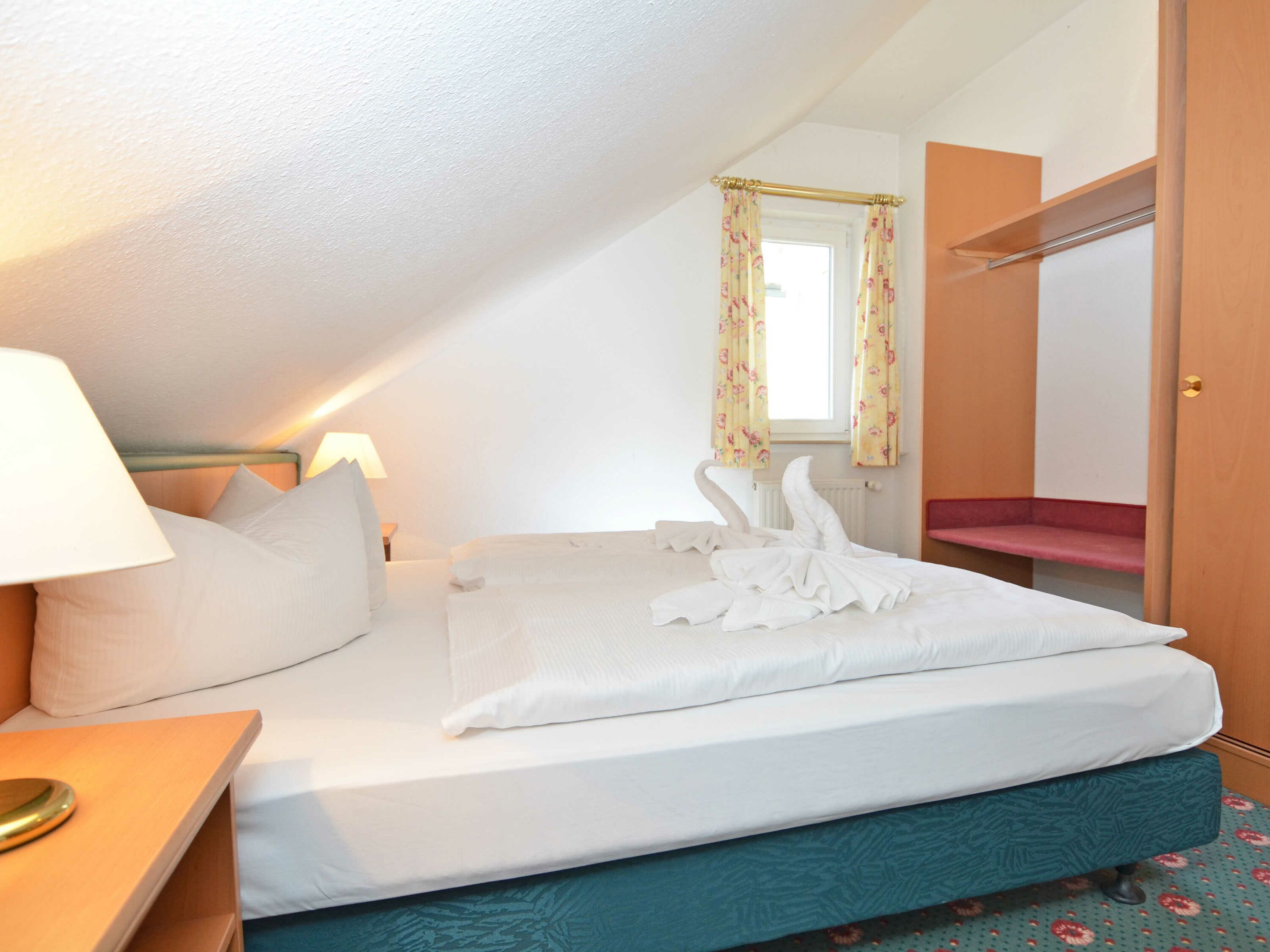 Im separaten Schlafzimmer finden Sie Ihr Doppelbett und ausreichend Platz für Ihre Garderobe. Das Badezimmer ist mit Dusche/WC, Waschbecken, Spiegel und Fön ausgestattet.
