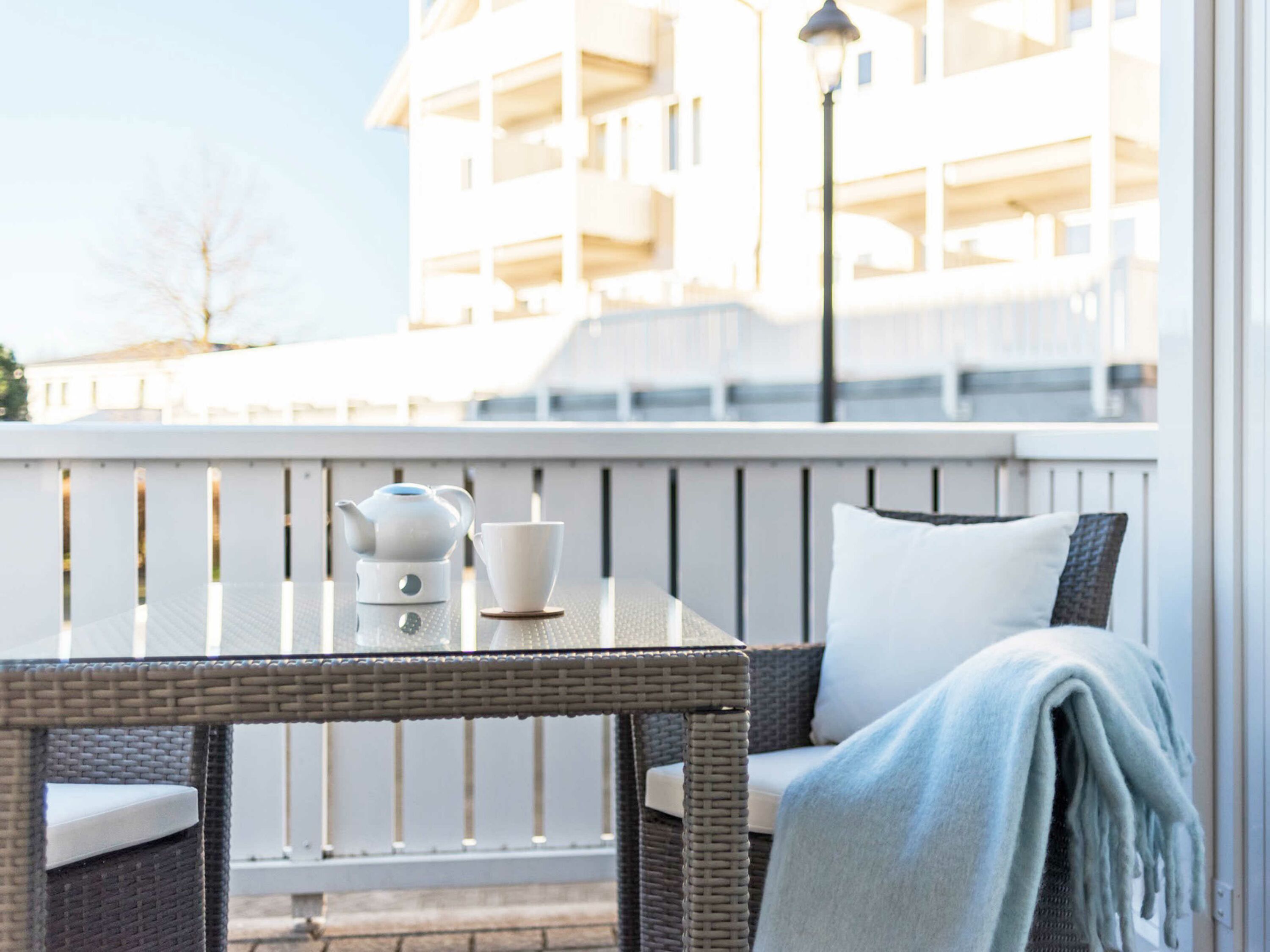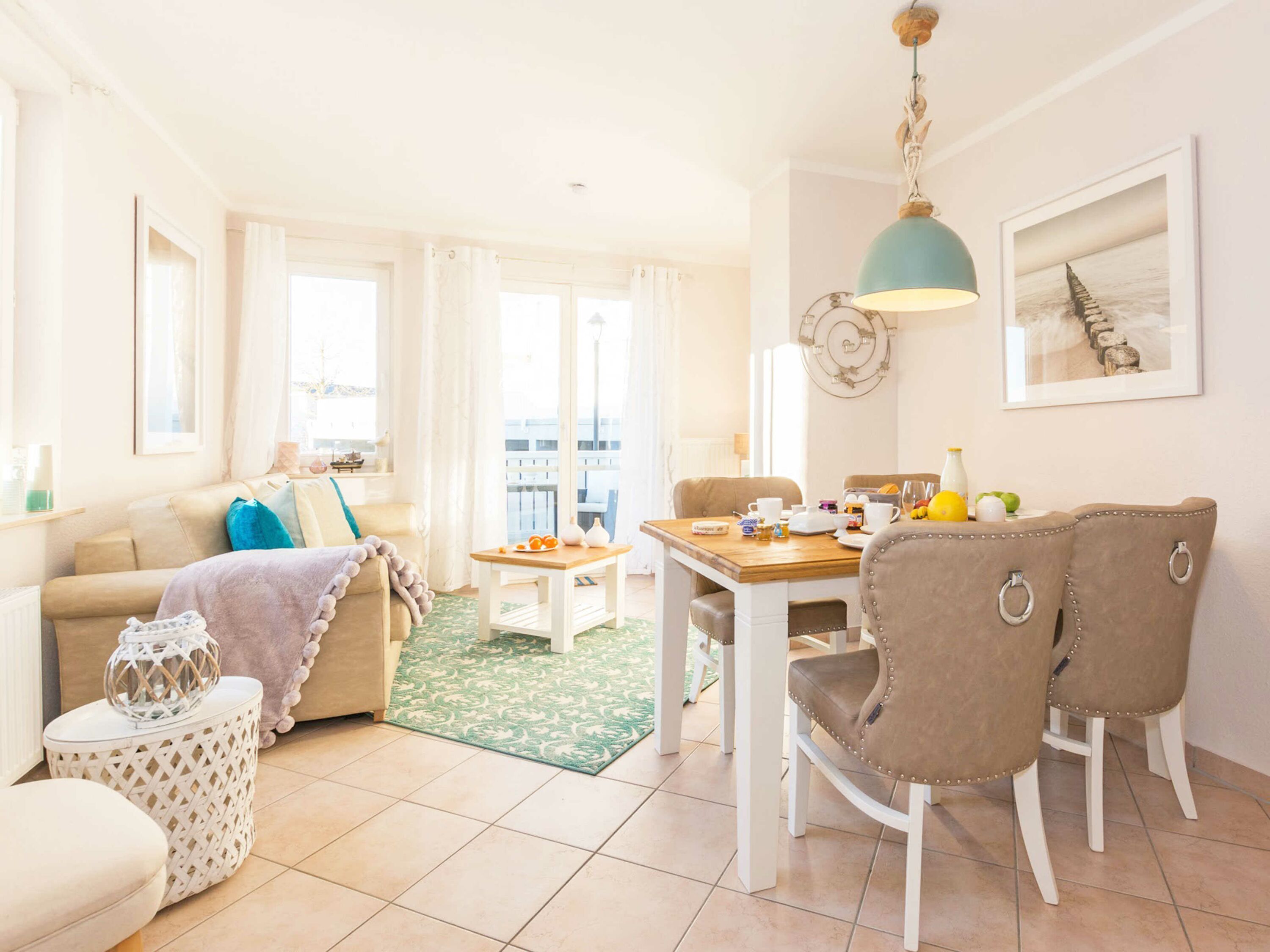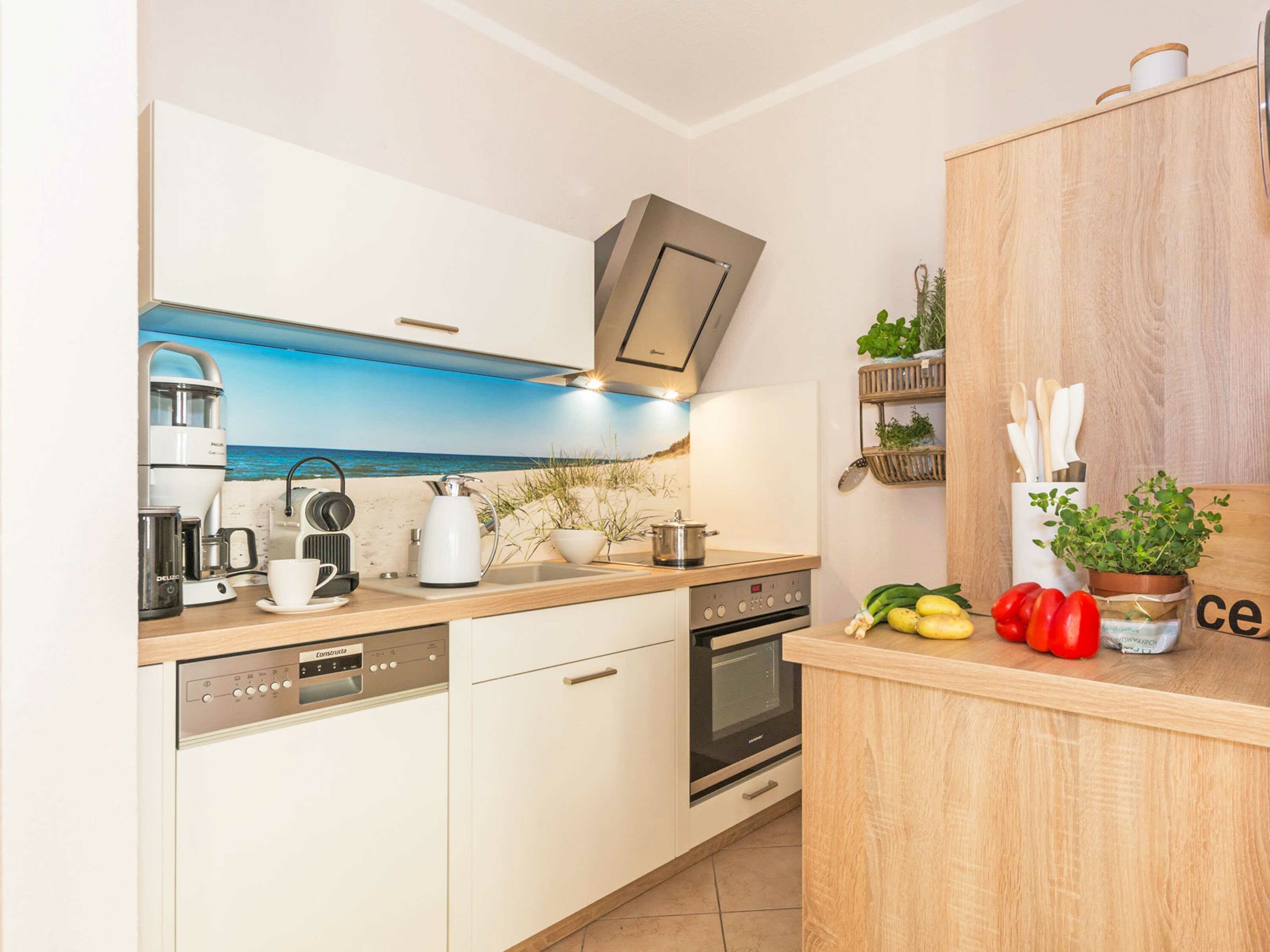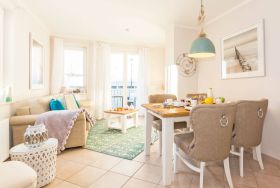 Treten Sie ein in dieses zauberhafte 2-Raum-Appartement im Erdgeschoss (Hochparterre) mit 47m². Es empfängt Sie eine lichtdurchflutete Ferienwohnung mit topmoderner Ausstattung. Genießen Sie Abend für Abend das Licht der untergehenden Sonne auf dem nach Südwesten ausgerichteten Balkon.