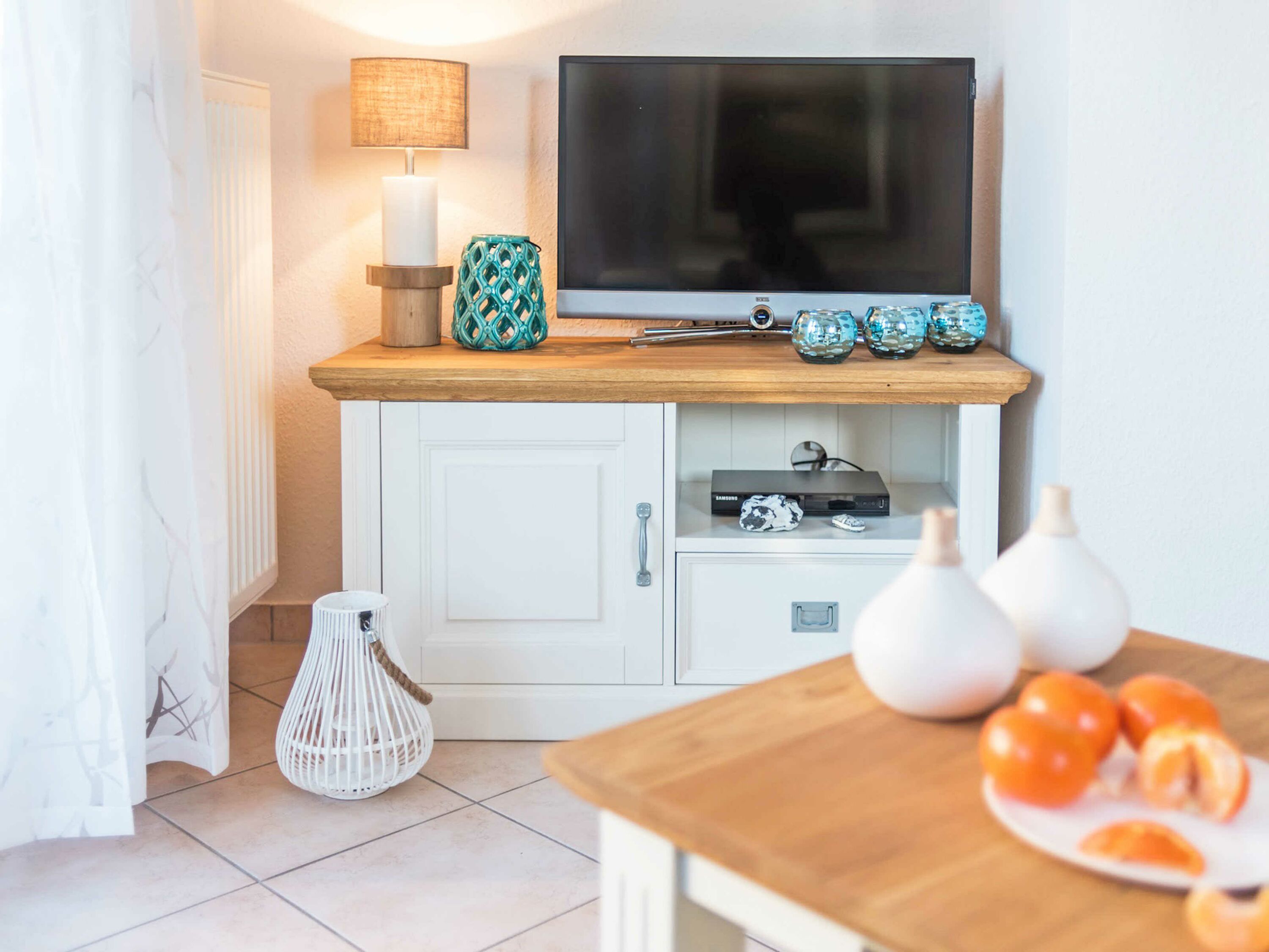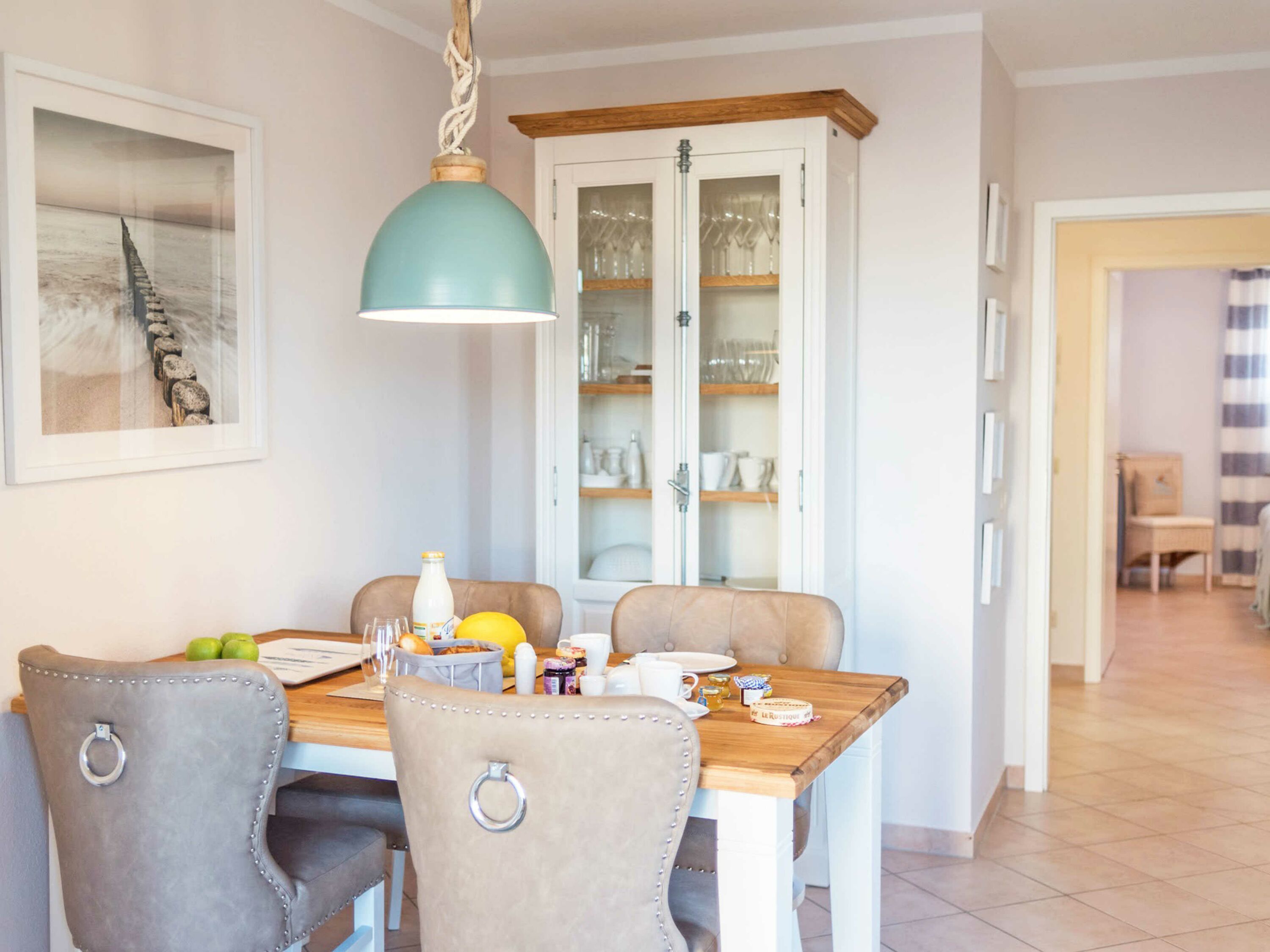 Weißes Flair und Naturholz heißen Sie in den geschmackvoll möblierten Zimmern willkommen. Der gemütliche Wohn-, Küchen- und Essbereich umfasst:
