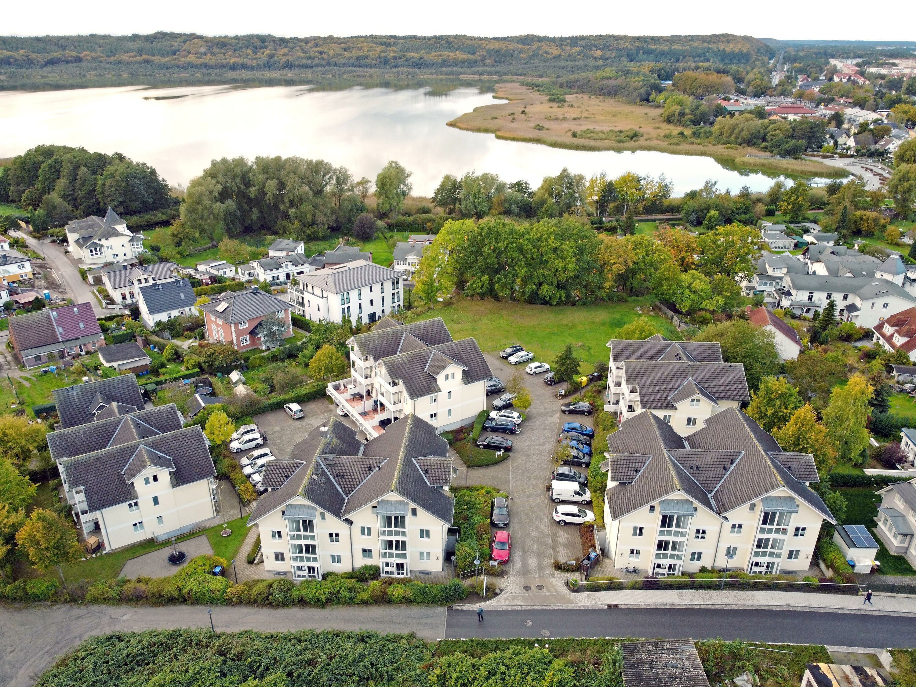 Von der ruhig gelegenen Anhöhe im Grünen sind die autofreie Strandpromenade mit der Seebrücke und die Dampflokstation des Rasenden Roland in jeweils rund zehn Minuten zu Fuß erreichbar.