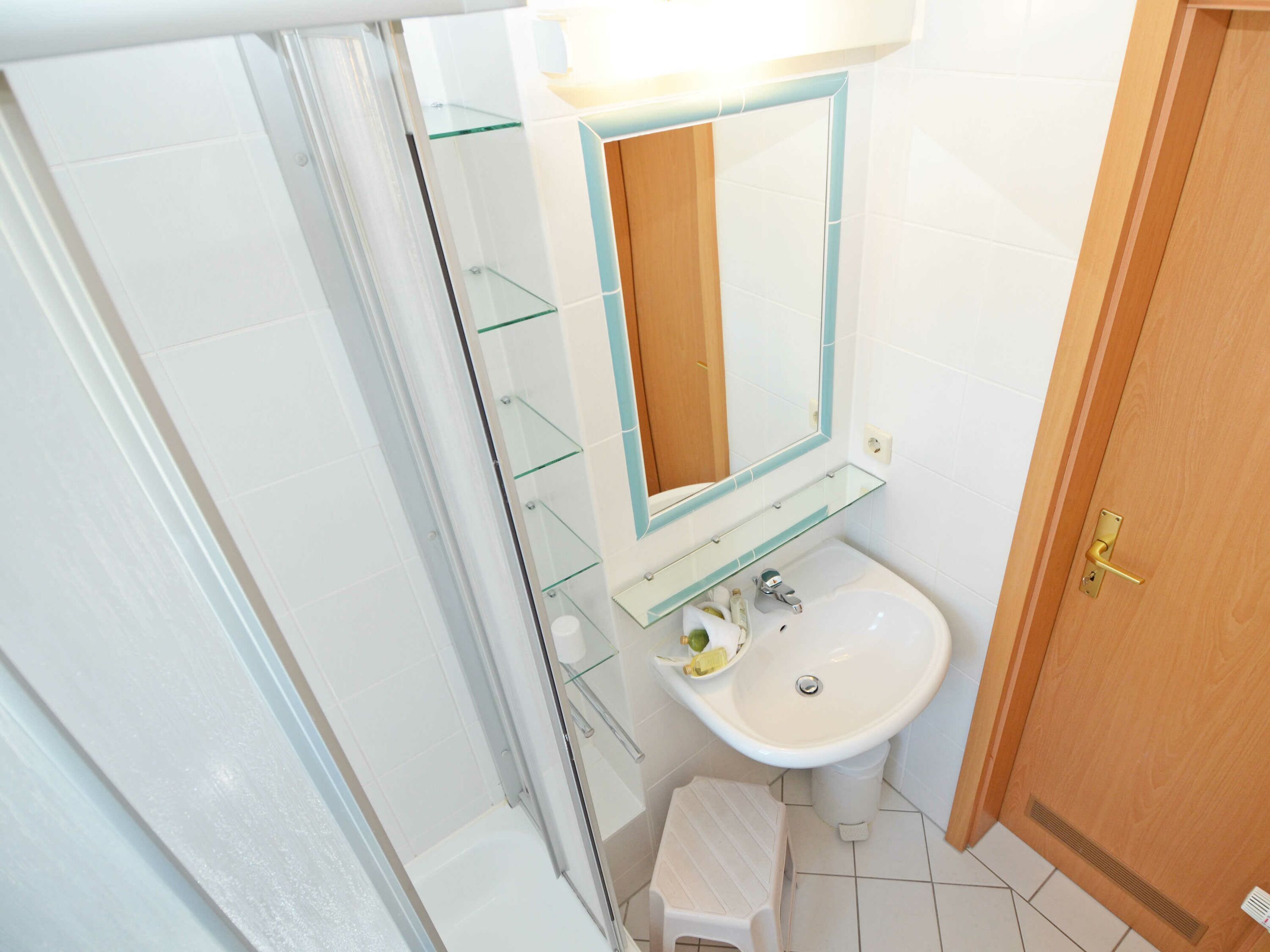 Weiterhin gibt es ein Schlafzimmer mit einem Doppelbett, einem zweiten Fernseher und ausreichend Platz für Ihre Garderobe sowie ein Bad mit Dusche/WC. Alle Böden sind entweder gefliest oder mit einem modernen Bodenbelag in Holzoptik ausgestattet.
