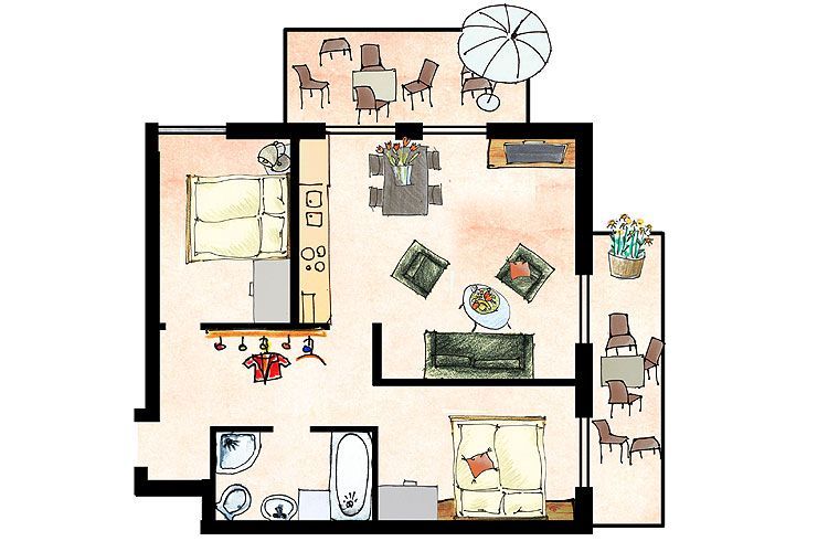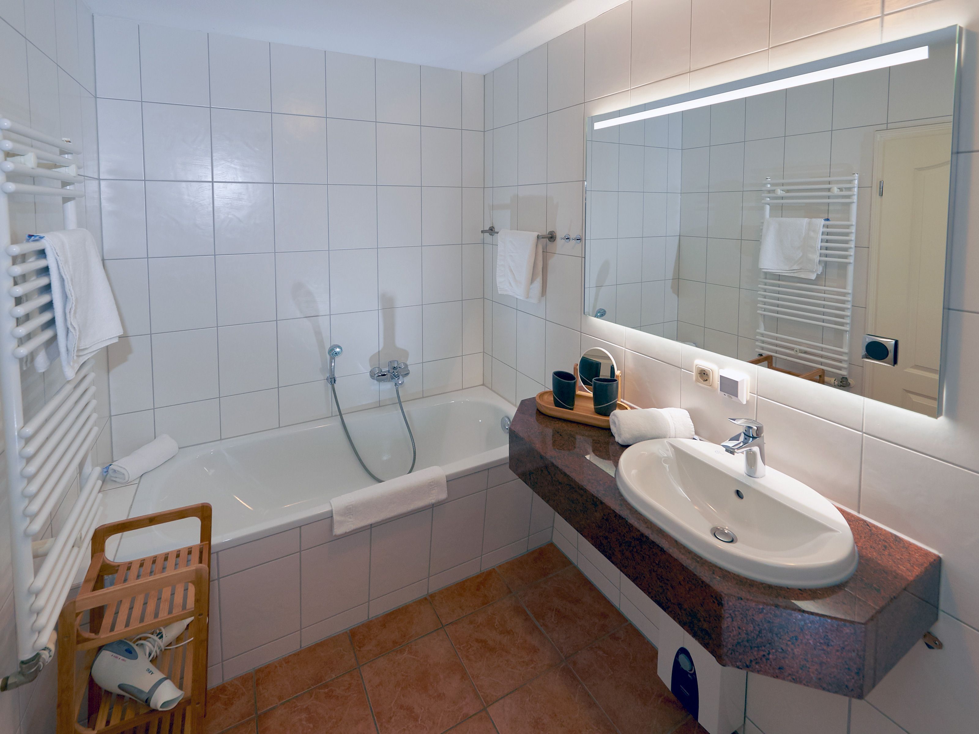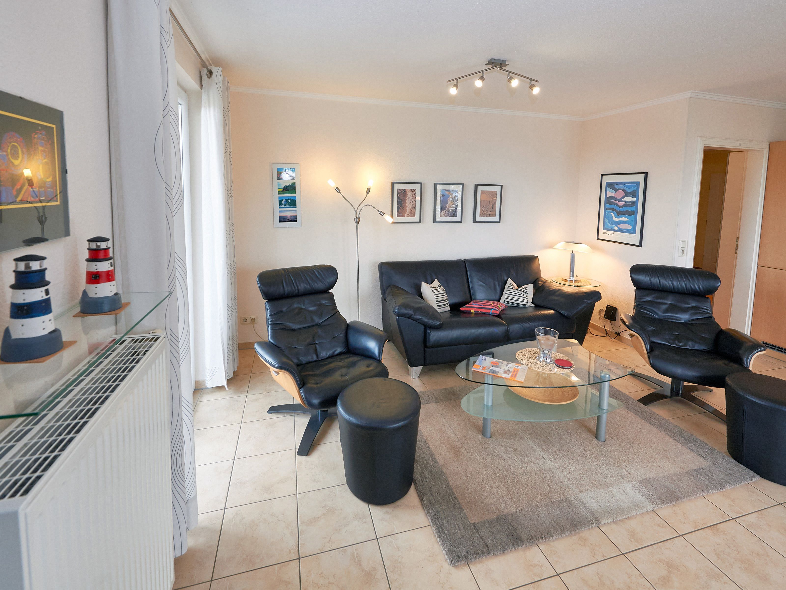 Ihr 3-Raum-Appartement besteht aus einem kombinierten Wohn-/Esszimmer, zwei Schlafzimmern mit komfortablen Doppelbetten (1,80 x 2,00 m bzw. 1,60 x 2,00 m), einer geräumigen Diele sowie einem Badezimmer mit Dusche/WC, Badewanne, beleuchtetem Waschtisch, Fön und beheizbarem Handtuchtrockner.