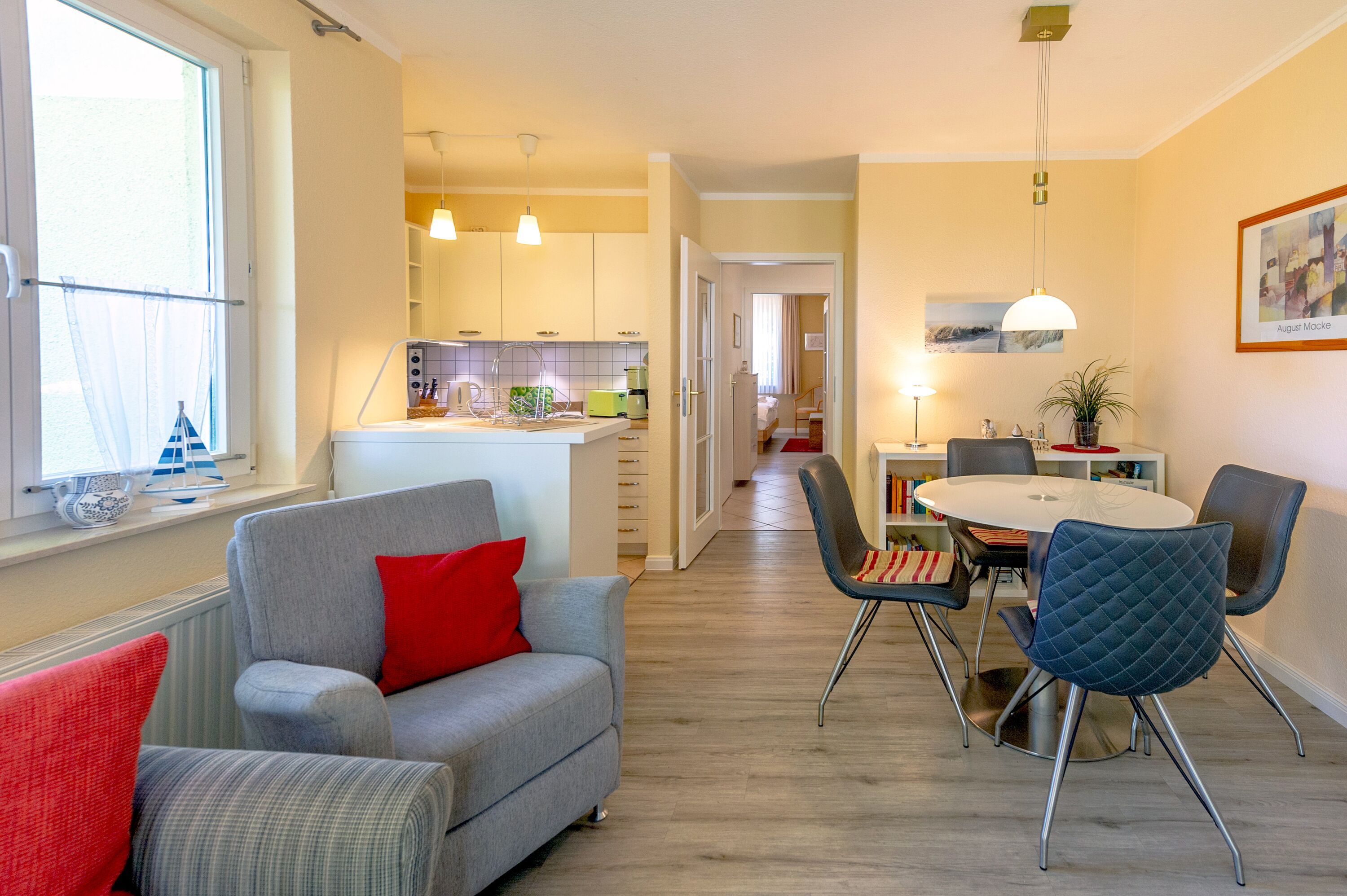 Die Wohnung 14 eignet sich für bis zu vier Personen. Wer möchte, kann gegen einen kleinen Aufpreis auch seinen Hund mitbringen. Mit Rücksicht auf die nachfolgenden Gäste ist das Rauchen in den Innenräumen nicht gestattet.