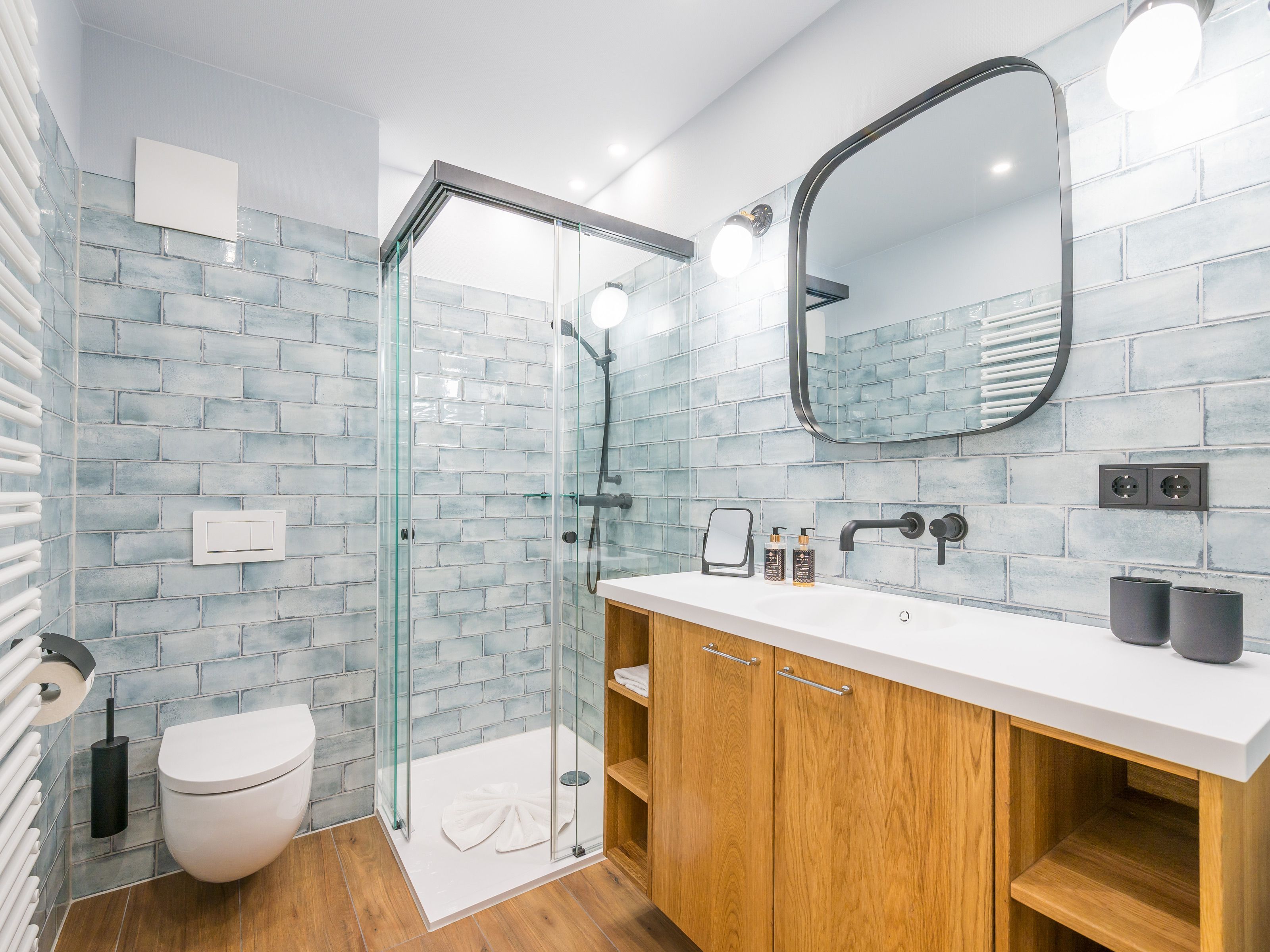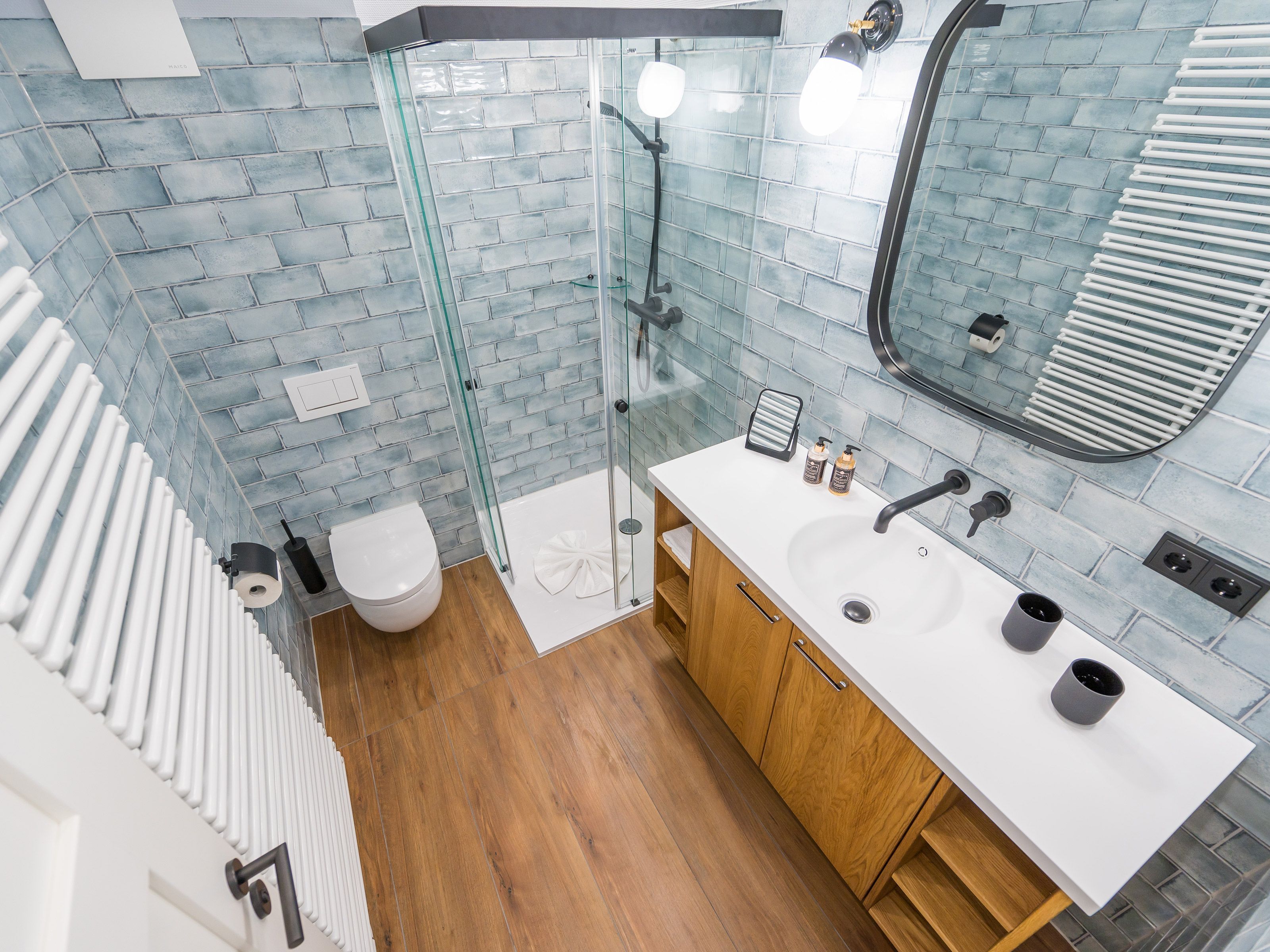 Ein modernes Duschbad mit Infrarot-Sauna sowie ein separates Schlafzimmer mit einem komfortablen Doppelbett, einem Flachbild-TV und ausreichend Stauraum für Ihre Garderobe gehören ebenfalls zu diesem Appartement.