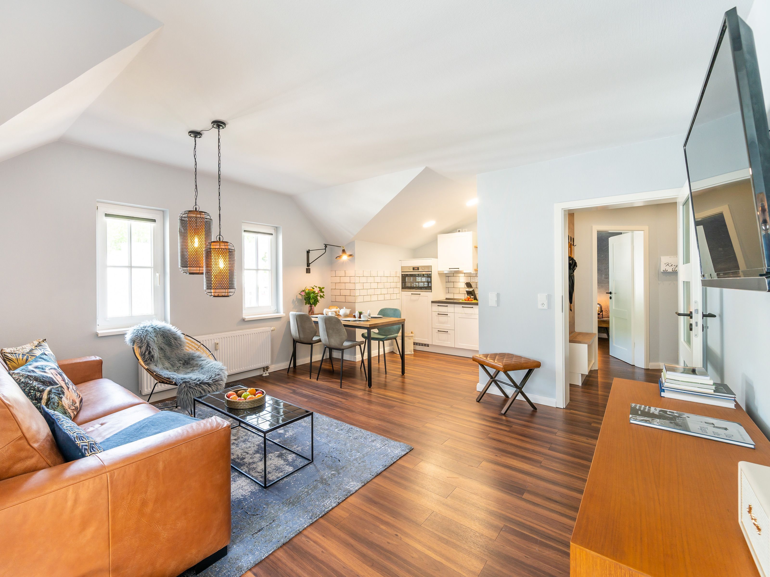 Das OSTSEELOFT BINZ ist ein gut 52 qm großes 2-Raum-Appartement im Dachgeschoss der Villa Amanda. Leichte Dachschrägen vermitteln eine besondere Gemütlichkeit.
