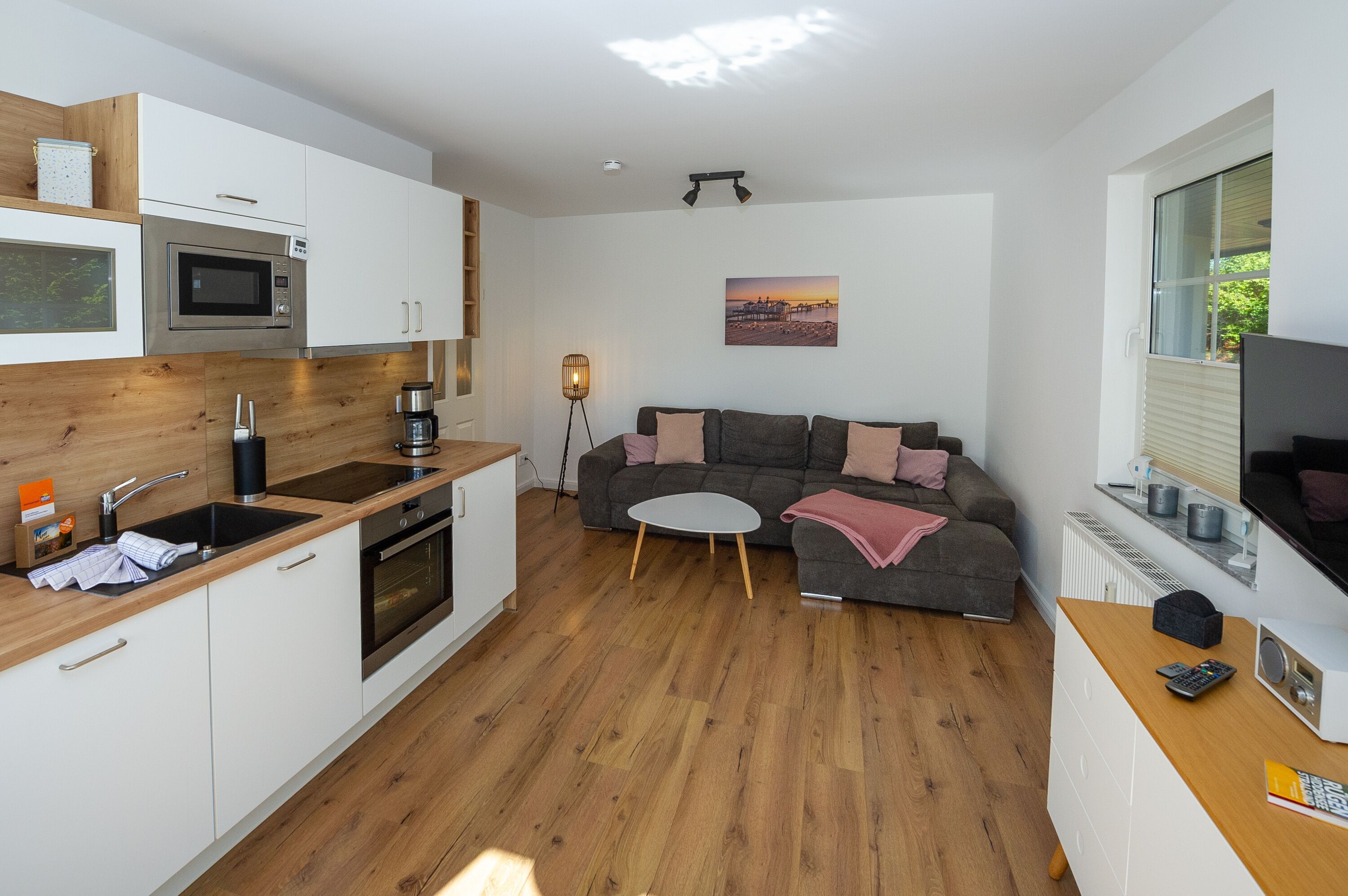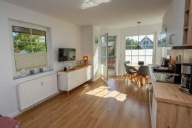 Dieses zauberhafte 2-Raum-Appartement mit rund 50 m² Wohnfläche begrüßt Sie im Erdgeschoss des reetgedeckten Hauses.