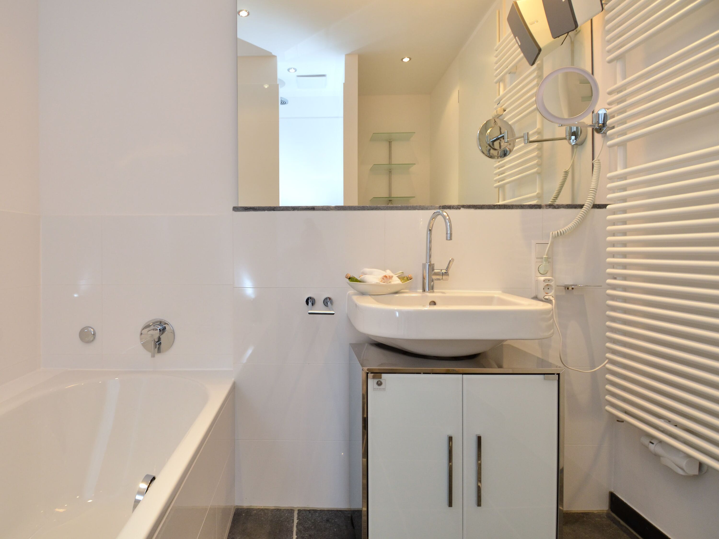 Das moderne Bad ist mit einer bodengleichen Dusche, einer Badewanne sowie Handtuchheizung und Haartrockner ausgestattet. Die appartementeigene, separate Sauna verspicht Entspannung pur! Die Fußbodenheizung in allen Räumen sorgt für ein angenehmes Klima in der kühlen Jahreszeit.