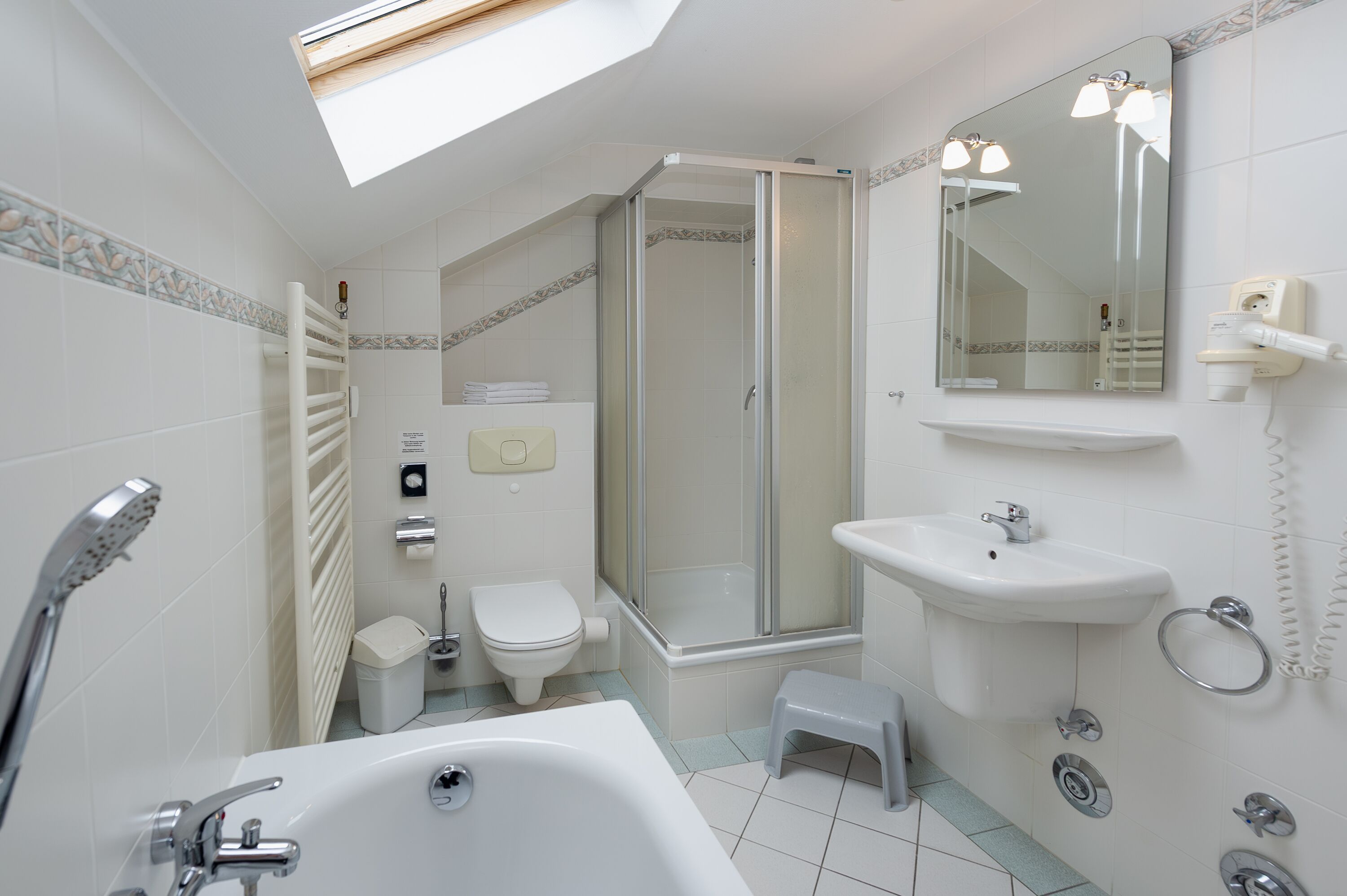 Die Wohnung verfügt über ein modernes Badezimmer, das mit einer Badewanne, einer separaten Dusche, WC, Handtuchwärmer, Waschbecken und Haartrockner den guten Gesamteindruck der Ausstattung abrundet.