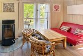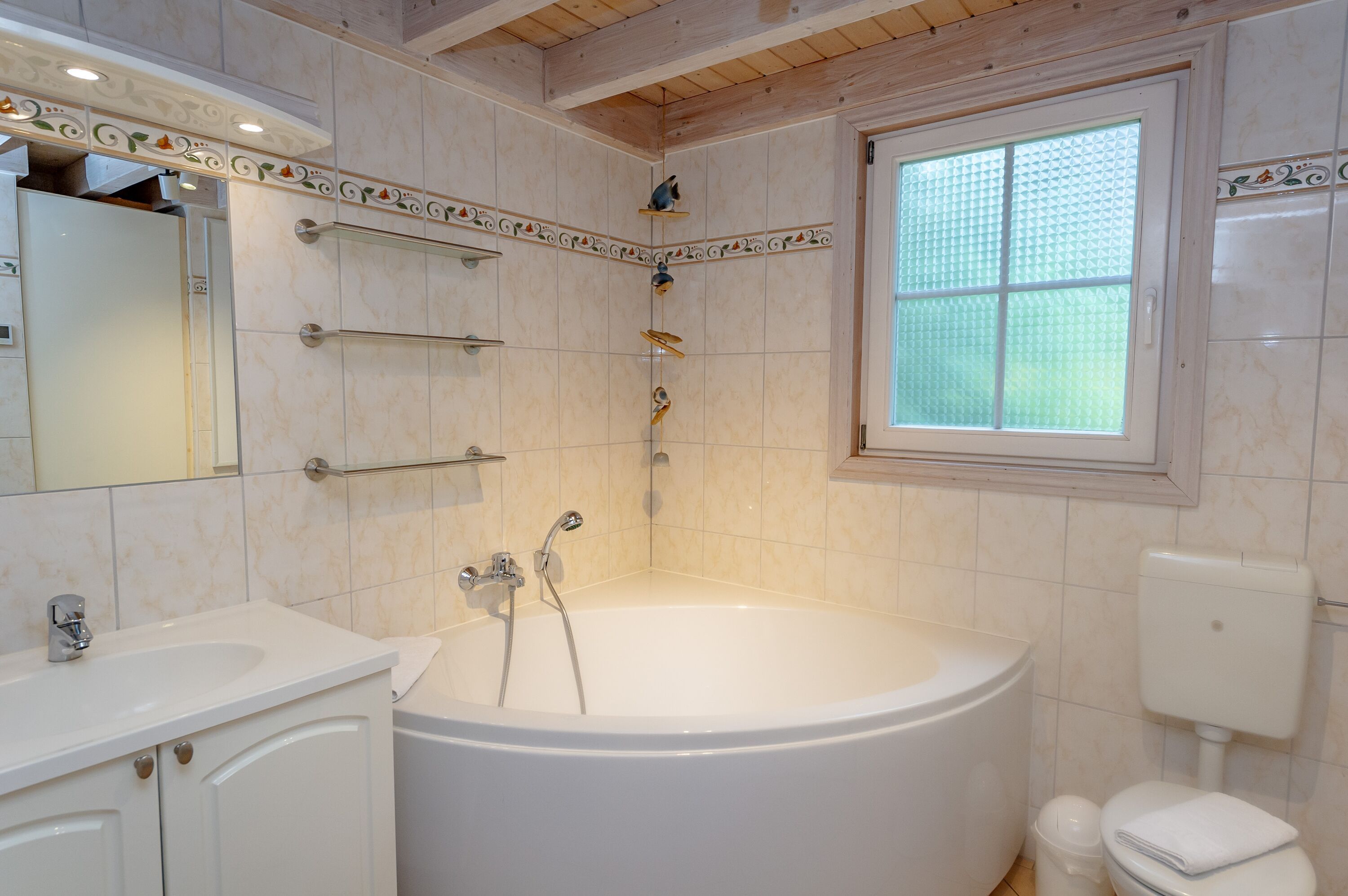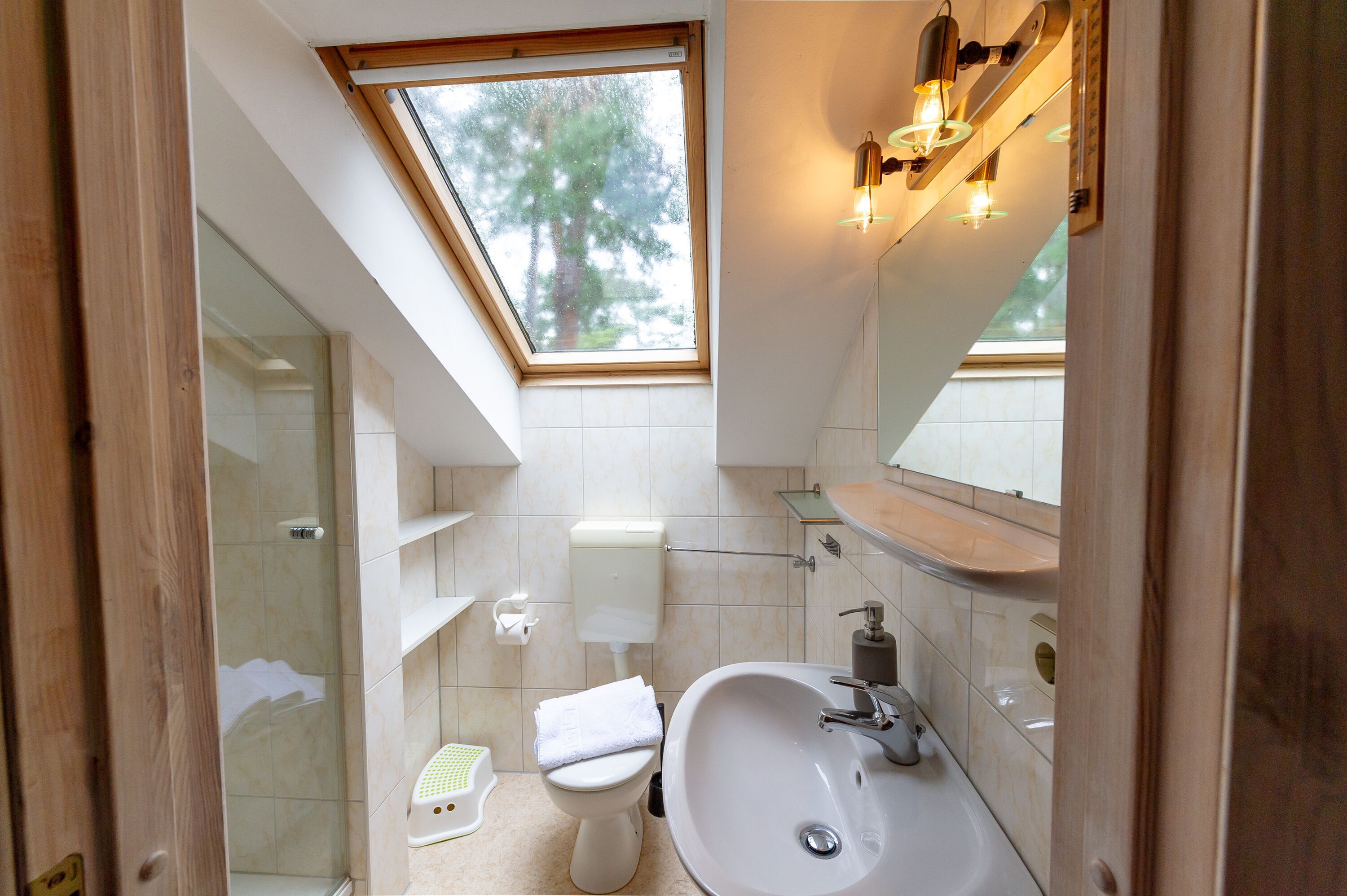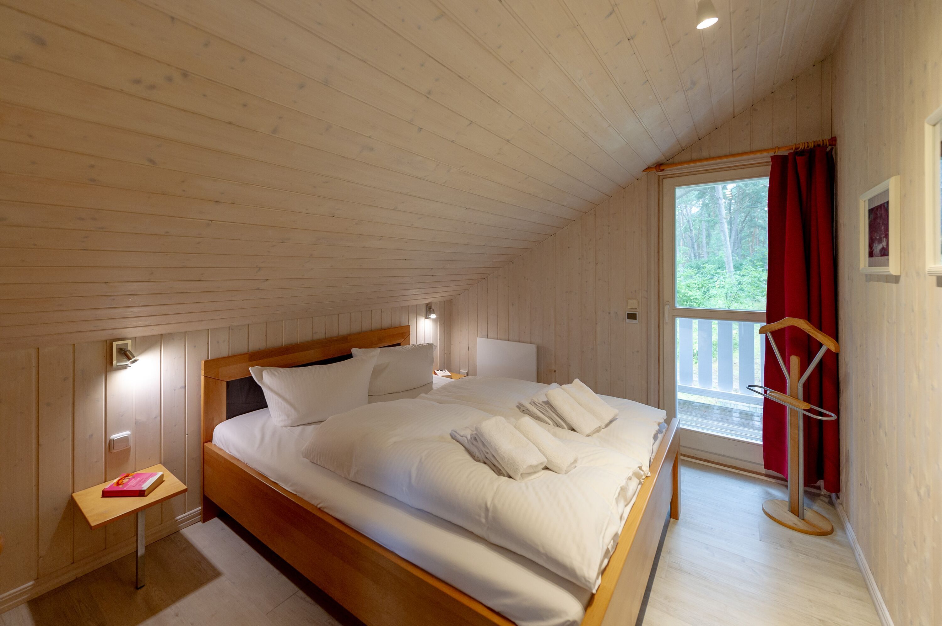 Im Obergeschoss finden Sie unter gemütlichen Dachschrägen zwei Schlafzimmer mit jeweils einem Doppelbett, einen Zugang auf einen überdachten Balkon, ein weiteres kleines Badezimmer mit Dusche/WC sowie eine Relaxecke mit Fernseher. In einem der Schlafzimmer im Obergeschoss befindet sich ein weiterer Fernseher.