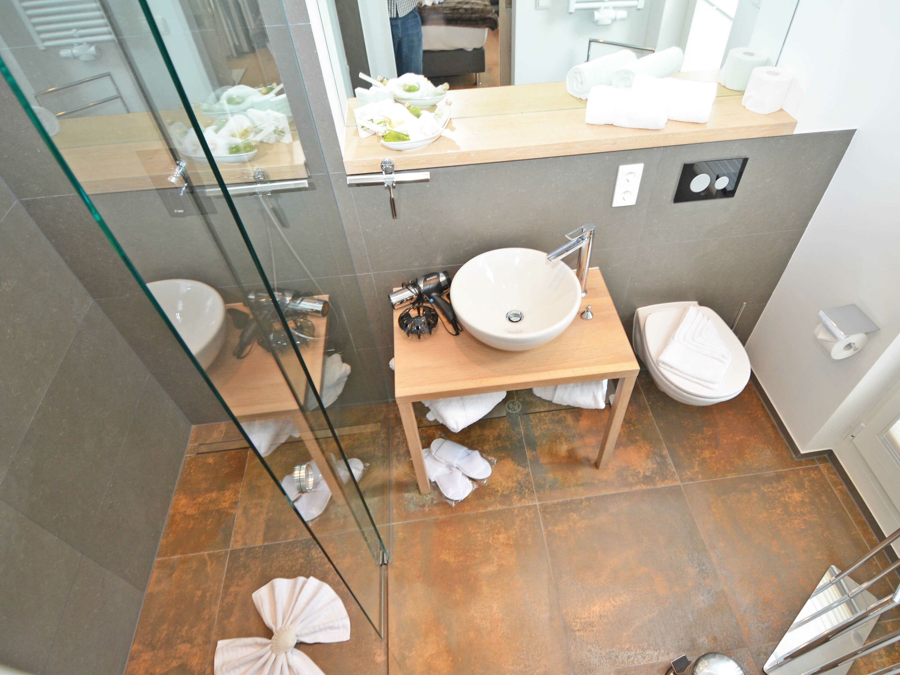 Die beiden eleganten Schlafzimmer sind je mit einem komfortablen Cocoon 5-Sterne-Deluxe Doppelbett und einem eigenen Duschbad mit hochwertigen Armaturen ausgestattet. Das Hauptschlafzimmer ist durch eine fast raumhohe Doppelschiebetür aus altem charakterreichem Holz von dem dazugehörigen Duschbad getrennt.