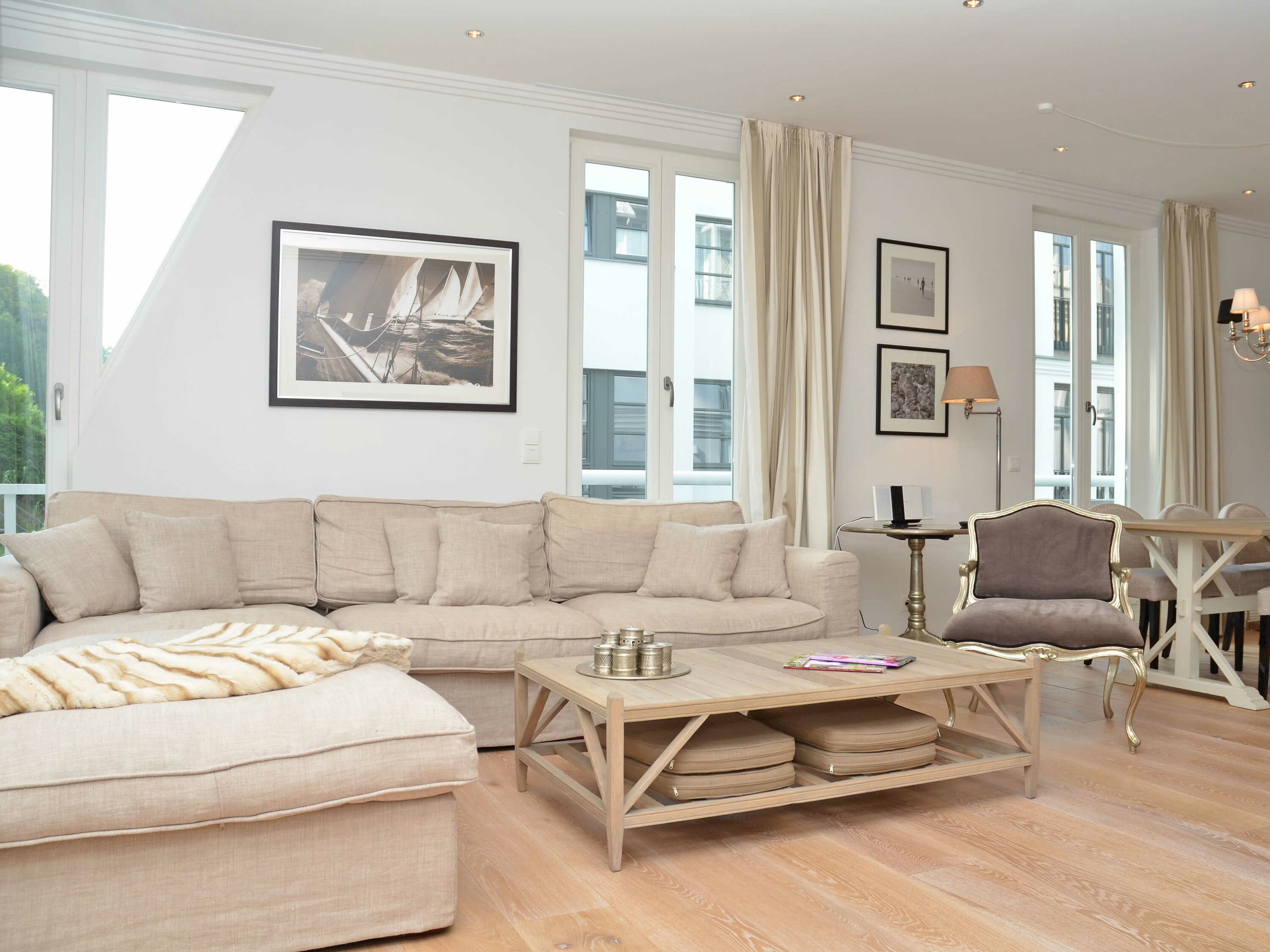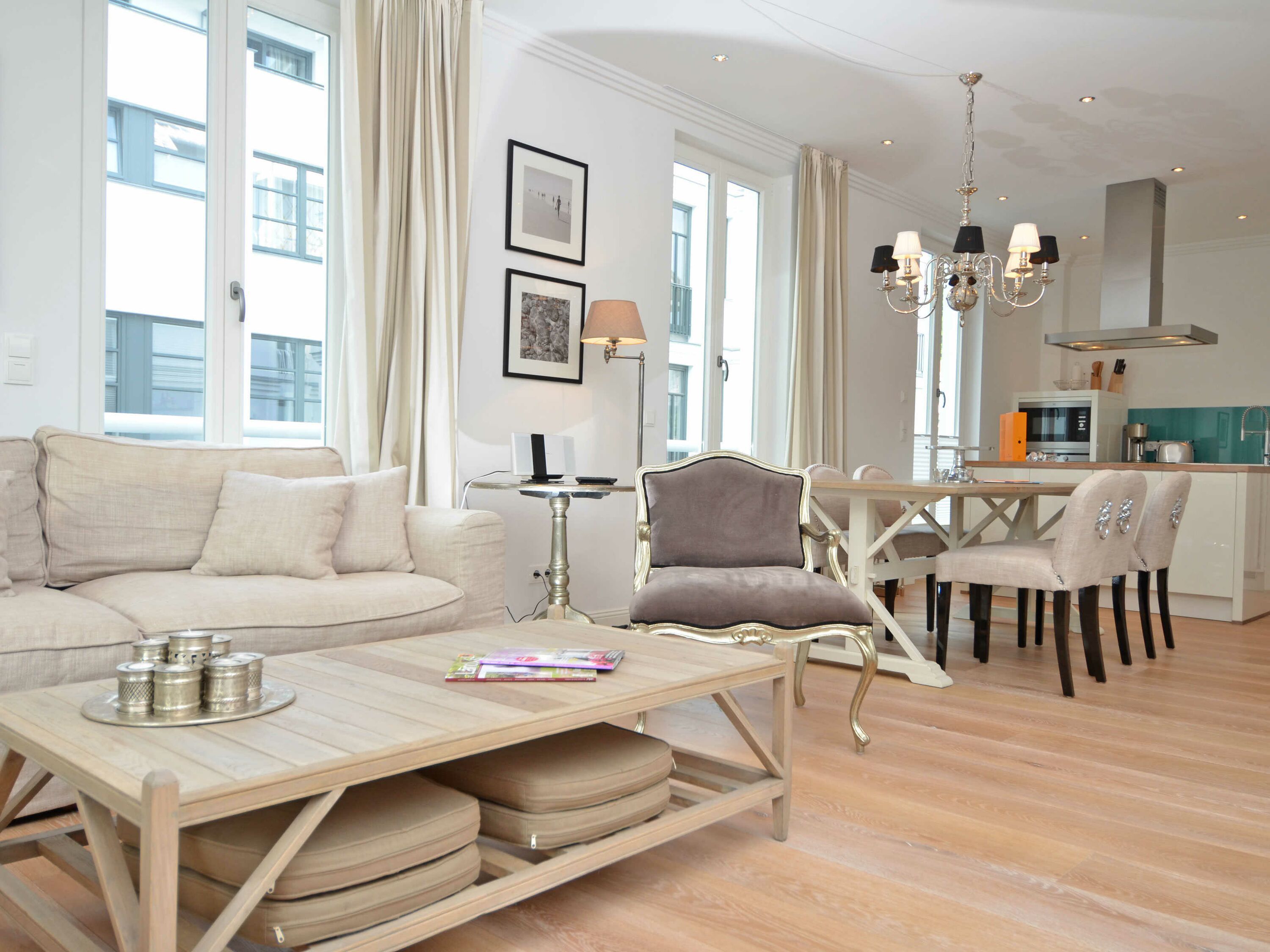 Dieses interessant geschnittene Vier-Raum-Appartement im 2. Obergeschoss erfüllt auf ca. 110 m² luxuriöser Wohnfläche höchste Wohnansprüche! Ausgesuchte Stoffe, eine kreative Mischung von modernen und klassischen Möbeln, sowie die warmen Naturtöne schaffen mit stilvollen Akzenten ein ganz einzigartiges Wohlfühlambiente.