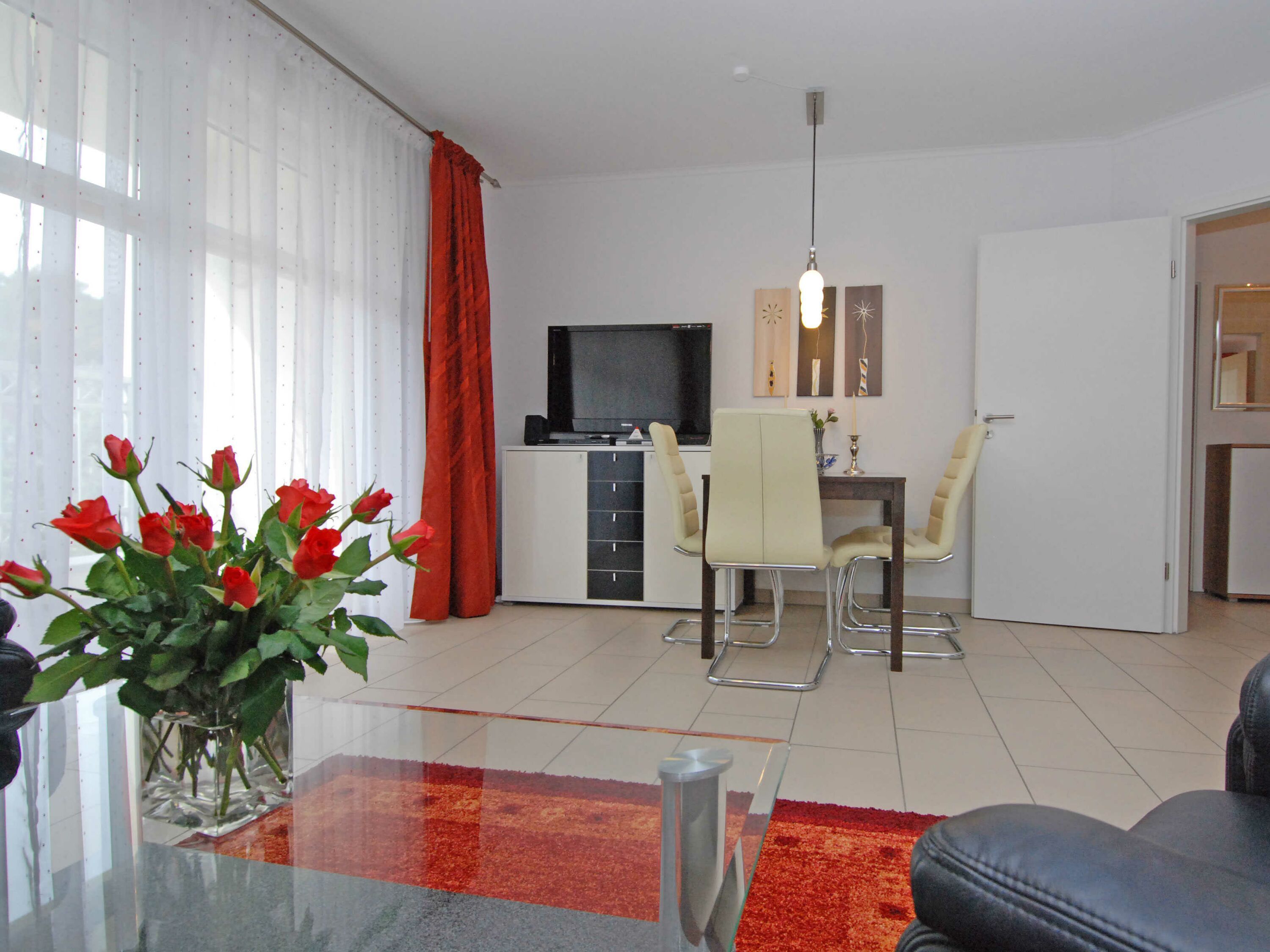 Die gesamte Nichtraucherwohnung ist gefliest und mit einer Fußbodenheizung versehen. Im Wohnbereich finden sie einen großen Flachbildfernseher (102 cm) sowie eine Stereoanlage mit CD-/MP3-Player vor.