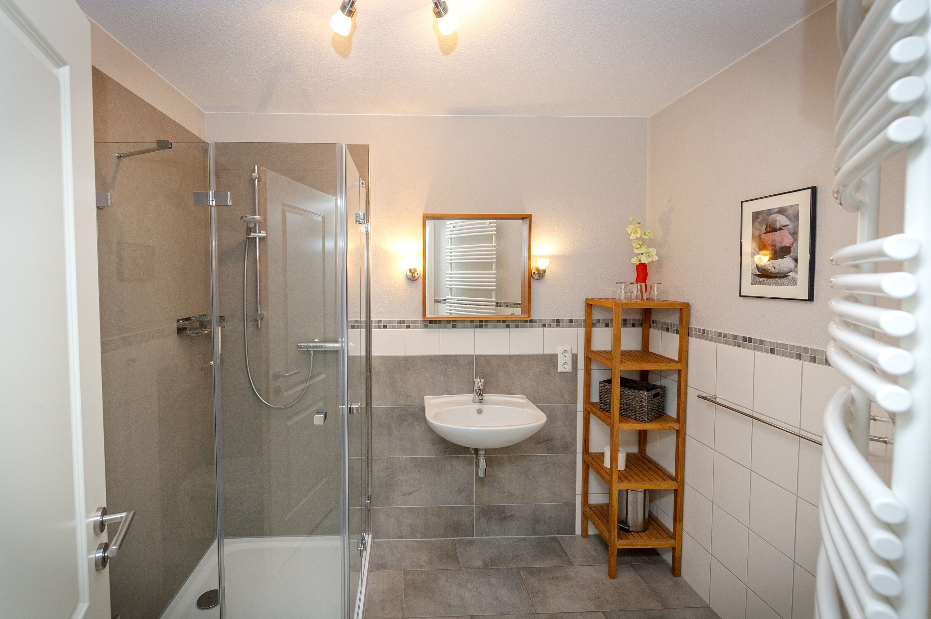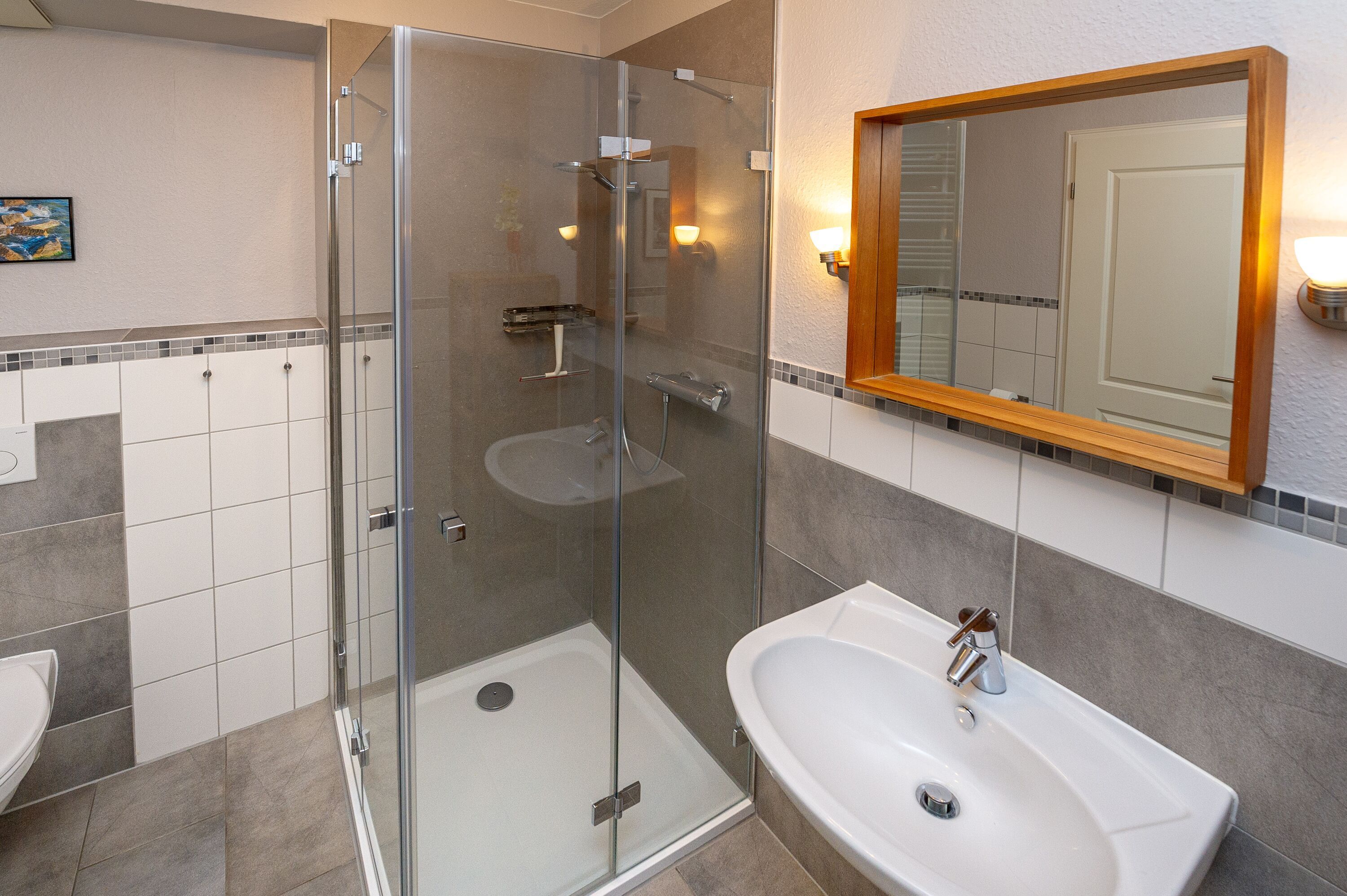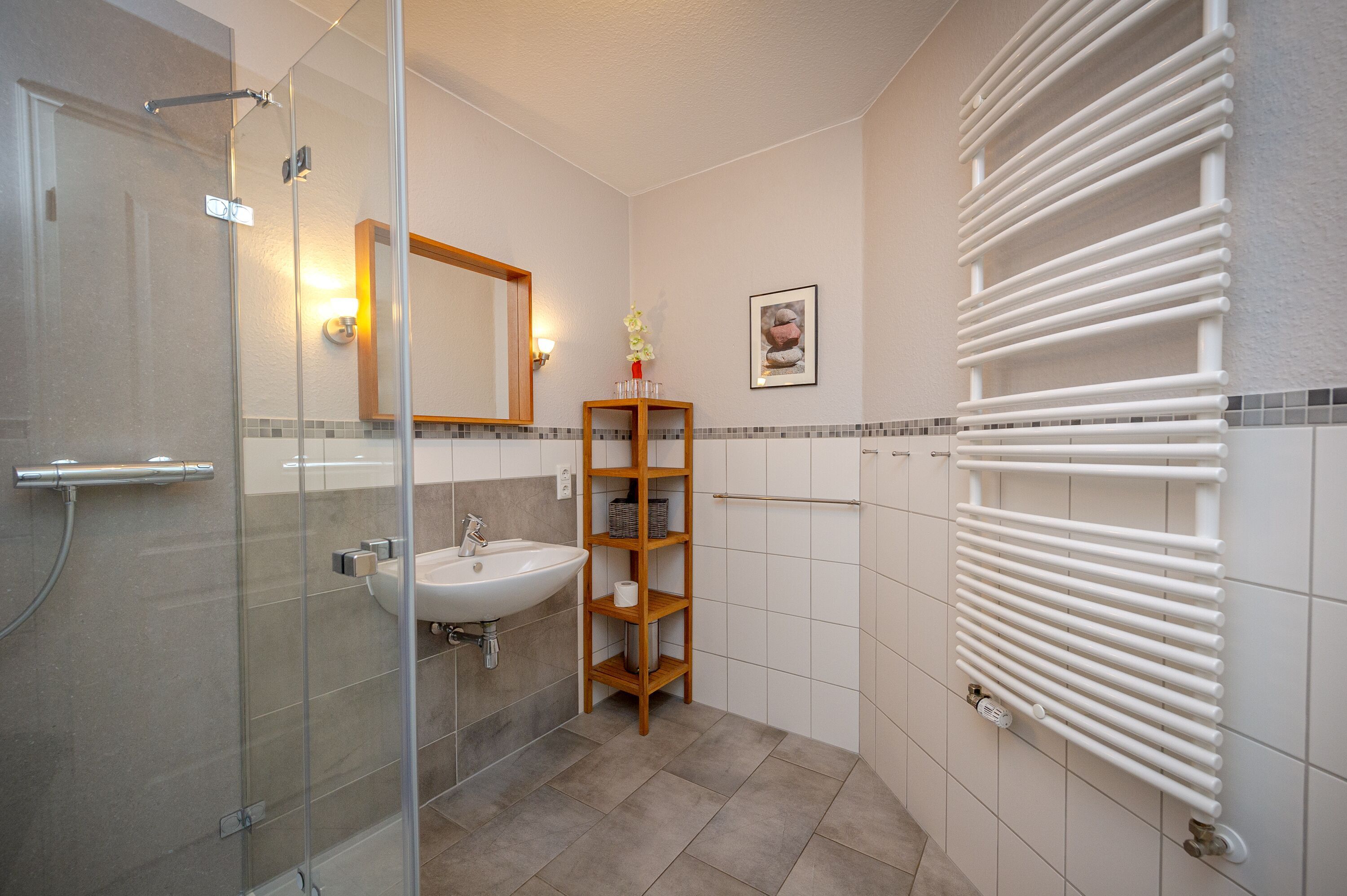 Alle Böden sind entweder gefliest oder mit einem modernen Laminat in Holzoptik ausgestattet.