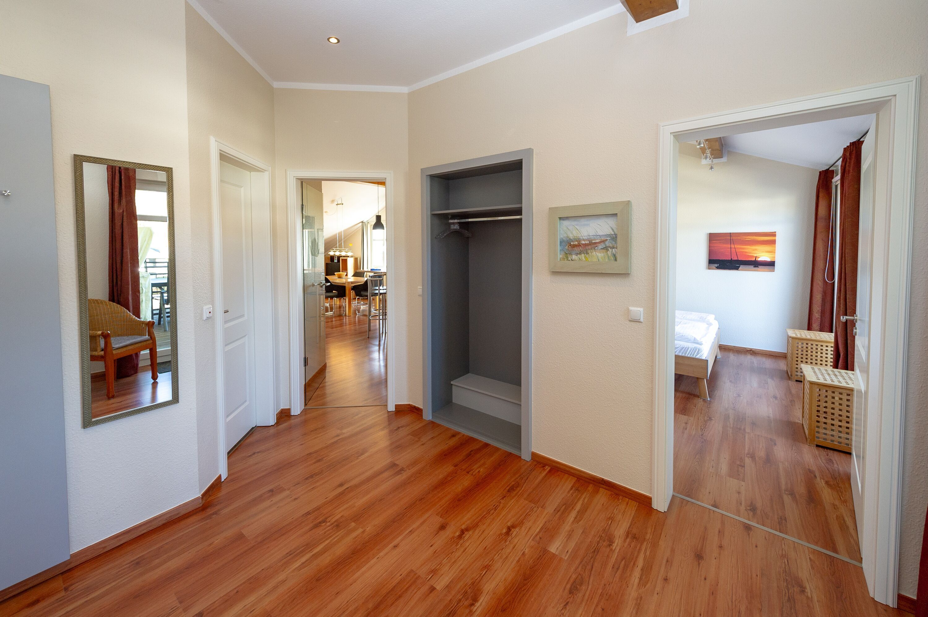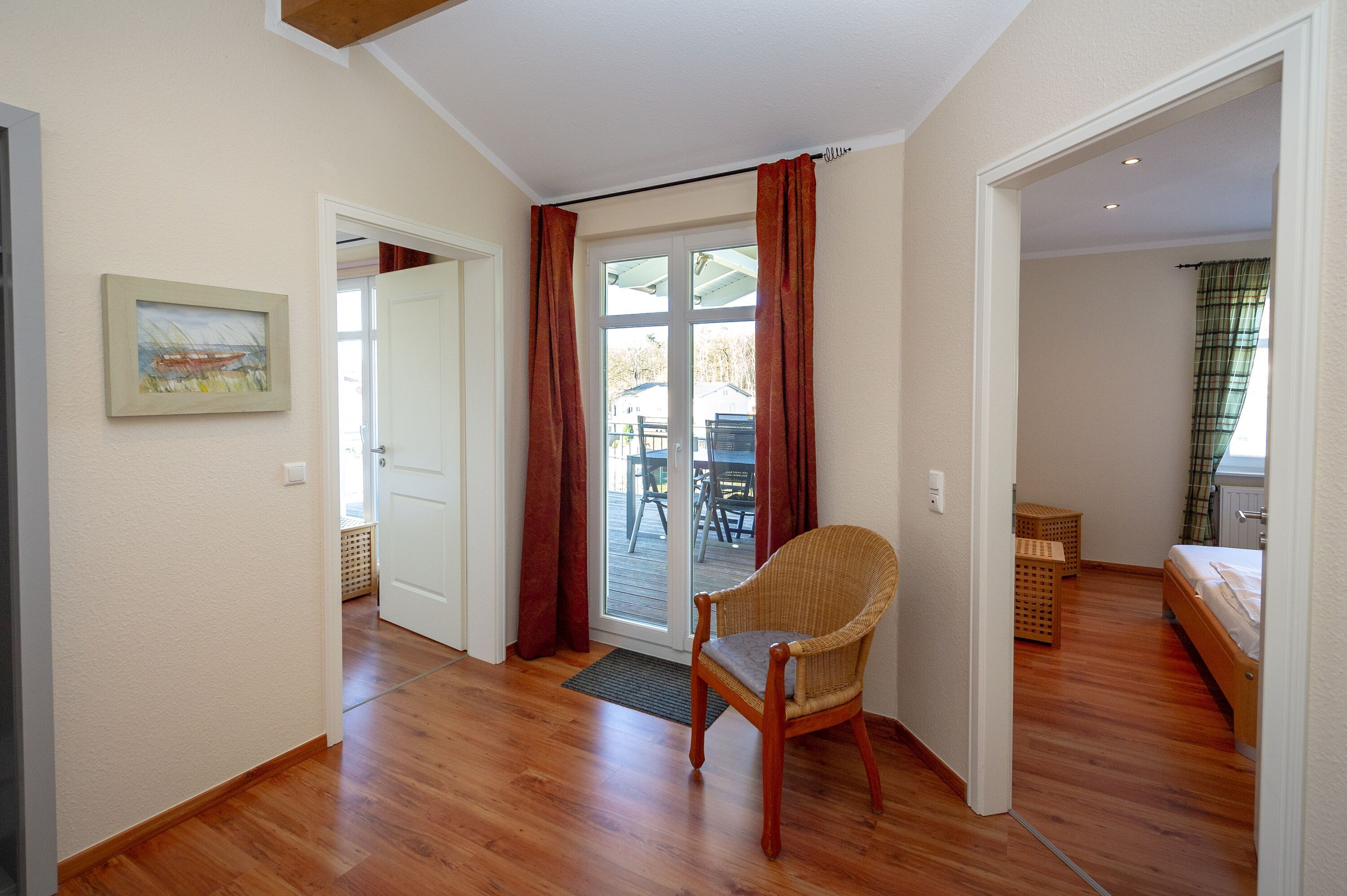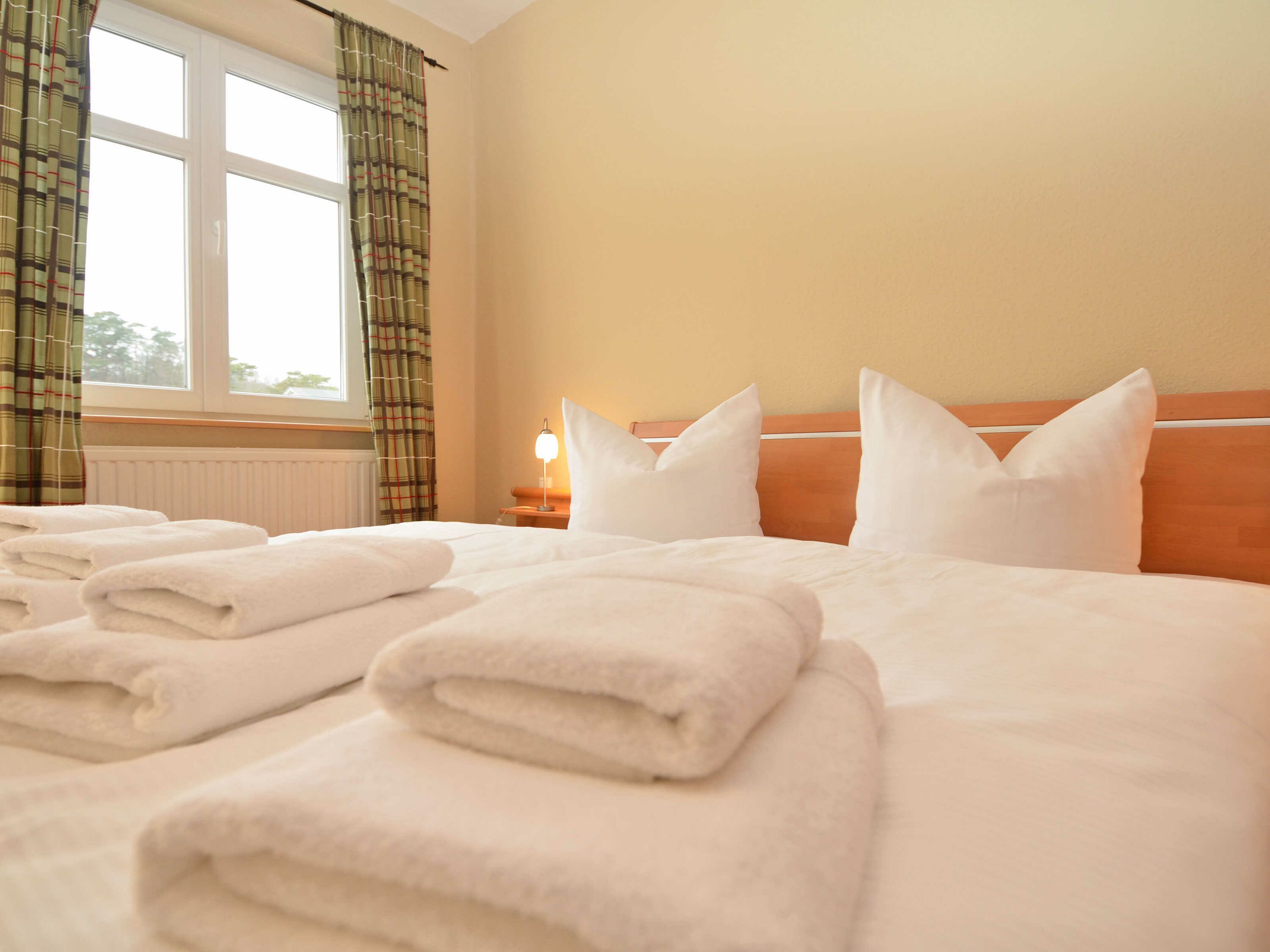 Weiterhin gibt es zwei Schlafzimmer mit je einem Doppelbett und ausreichend Platz für Ihre Garderobe sowie ein modernes Bad mit Dusche/WC und einem Haartrockner.