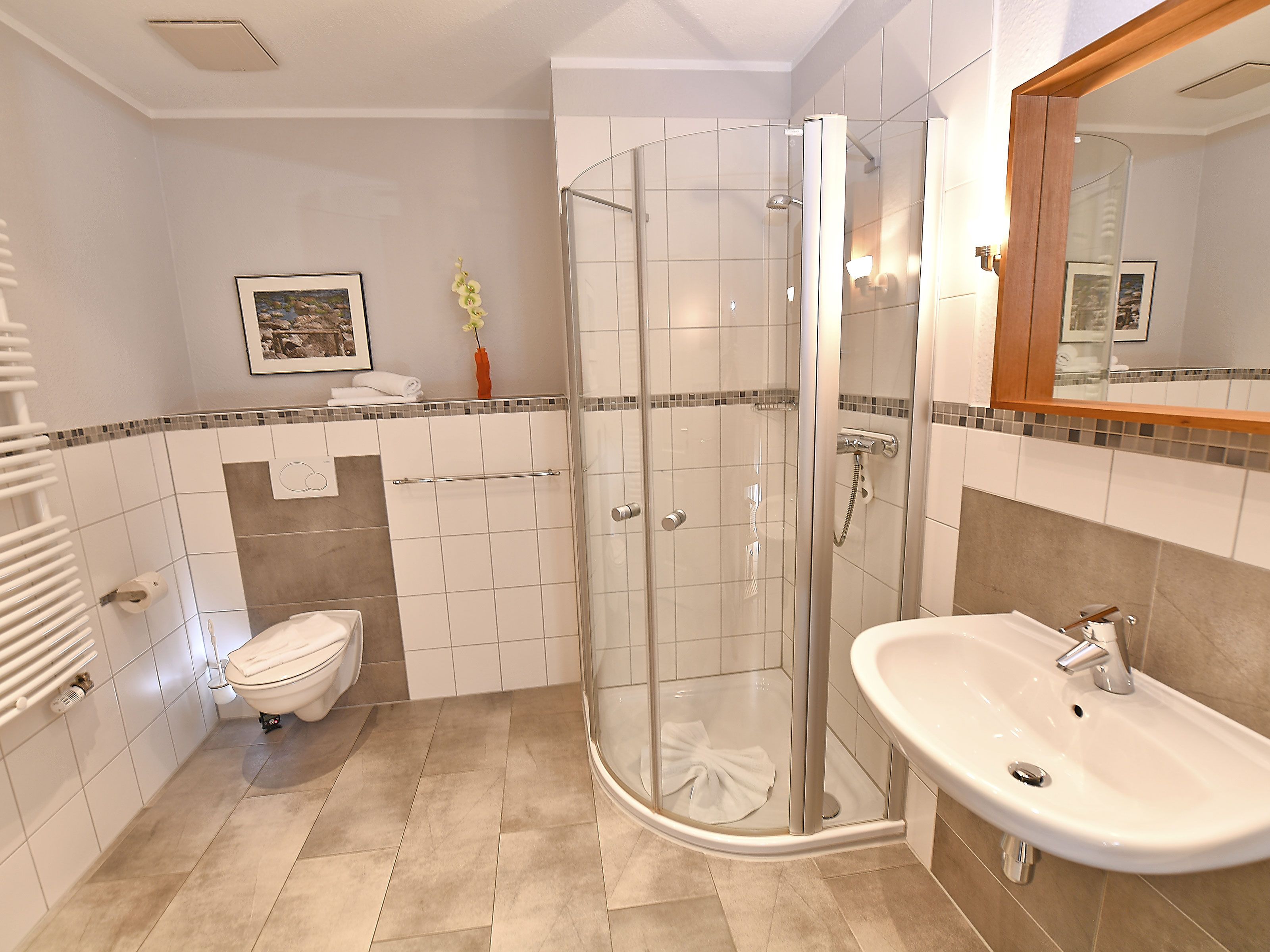 Weiterhin gibt es zwei Schlafzimmer mit je einem Doppelbett und ausreichend Platz für Ihre Garderobe sowie ein modernes Bad mit Dusche/WC und einem Haartrockner.