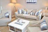 Vom Flur aus gelangen Sie in den überaus geschmackvoll ausgestatteten Wohnbereich mit der kuscheligen Couch und dem bequemen Sessel, einem Flachbild-TV, einer Stereoanlage und einem Esstisch für vier Personen. W-LAN steht Ihnen kostenfrei zur Verfügung.