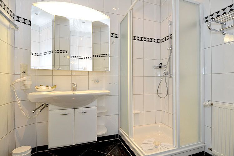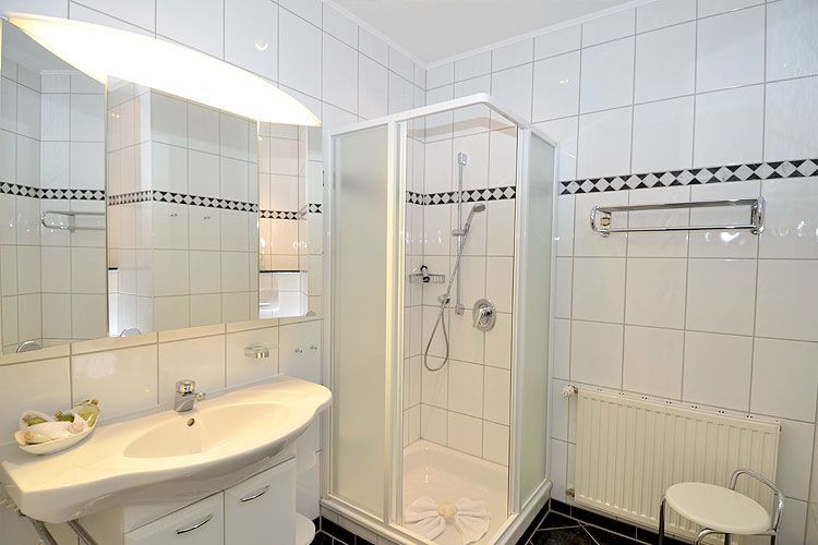 Die Wohnung verfügt auch über ein modernes Duschbad und ein zusätzliches Gäste-WC.