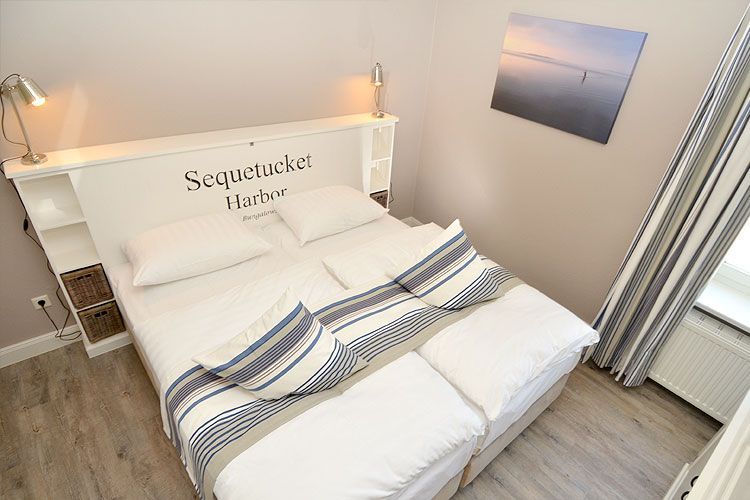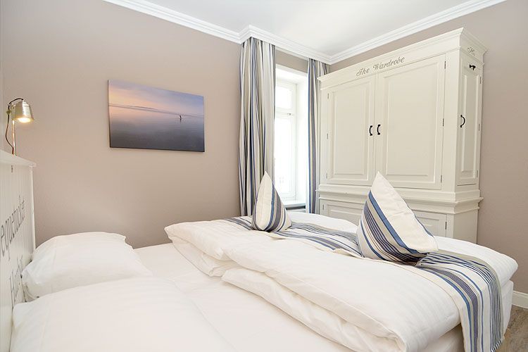 Das gemütliche Schlafzimmer wirkt durch das 5 Star-Deluxe-Boxspring-Doppelbett (1,80 x 2,00 m) mit Komforthöhe und dem ausreichenden Stauraum für Ihre Garderobe ganz besonders einladend.