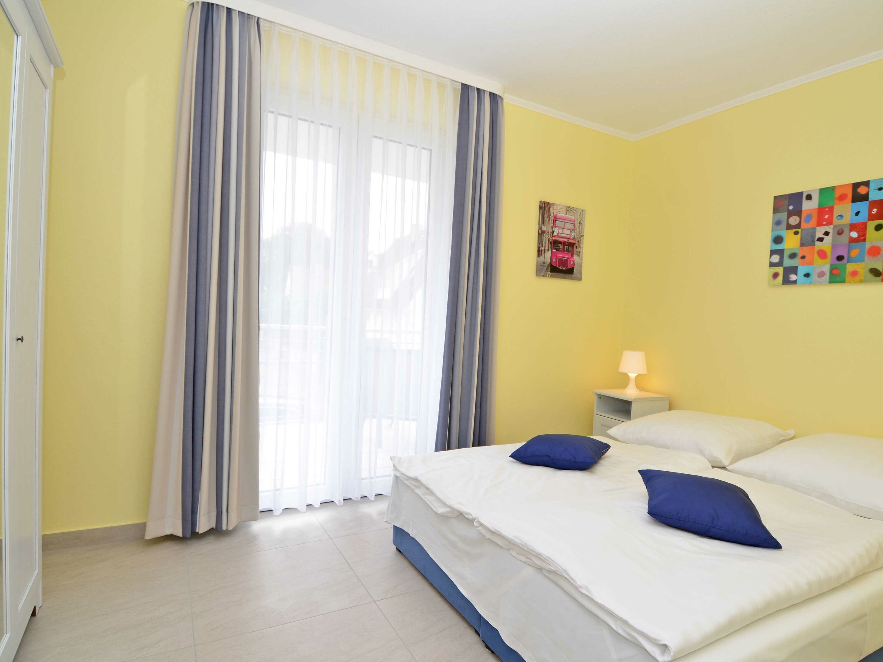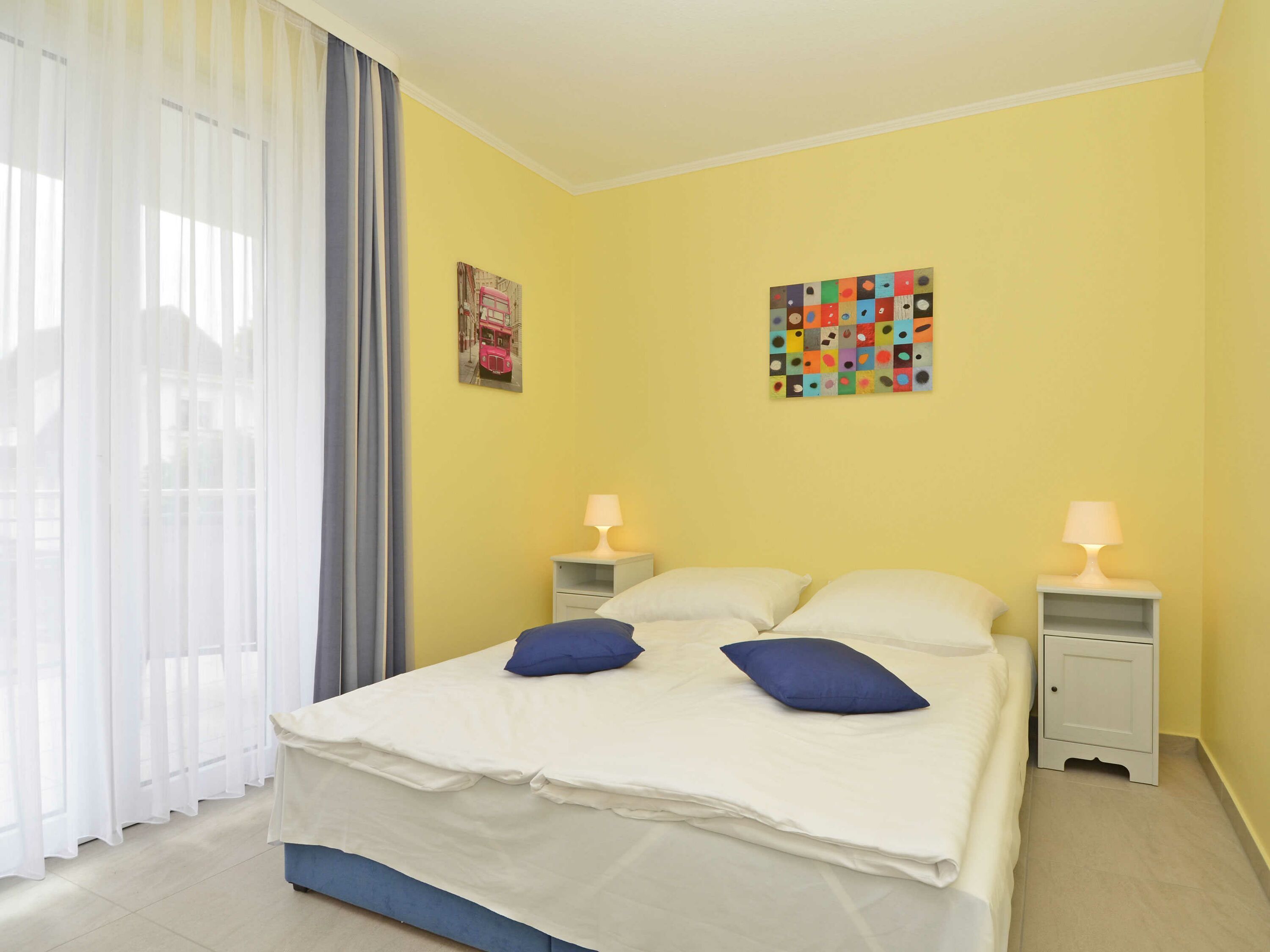 Das große Schlafzimmer ist mit einem Doppelbett, Schrank sowie Flachbildfernseher mit integriertem DVD-Player ausgestattet. Das kleinere Schlafzimmer verfügt über 2 getrennt stehende Betten (Polsterliegen mit Komfortfederkernpolsterung, je 80x200). Die Betten sind allergikerfreundlich.