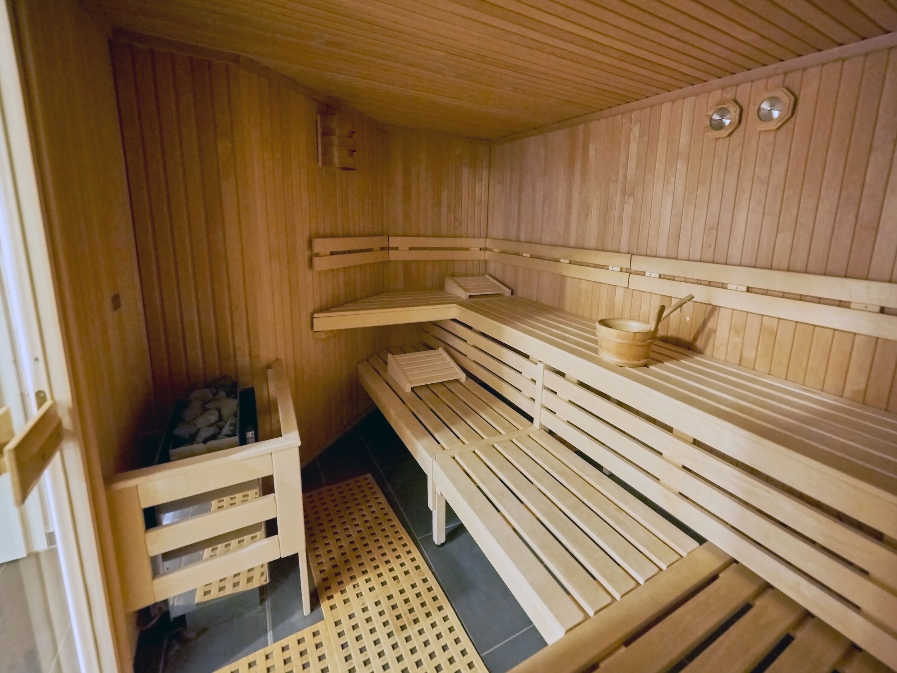 Im Erdgeschoss des Hauses befindet sich eine Sauna, die Sie kostenpflichtig nutzen können. Hier finden Sie ebenfalls Münzwaschmaschine und Münztrockner.
