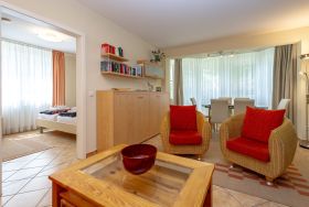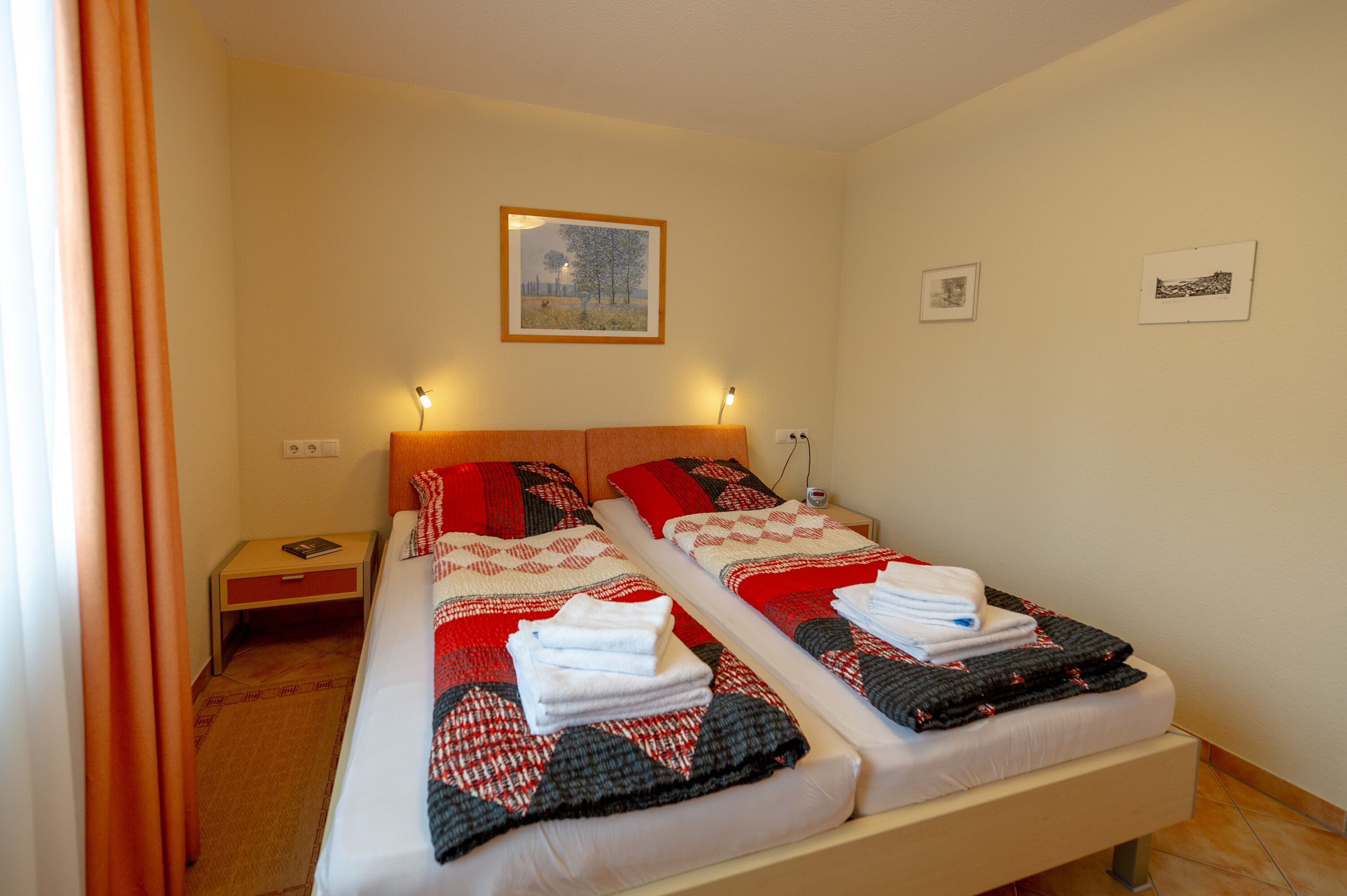 Im separaten Schlafzimmer verspricht ein gemütliches Doppelbett süße Träume. Der geräumige Kleiderschrank bietet Platz für Ihre Urlaubsgarderobe. Das geflieste Badezimmer Ihres Urlaubsdomizils ist mit Dusche/WC, einem beleuchteten Waschtisch, einem beheizbarem Handtuchtrockner und genügend Ablageflächen für Ihre Utensilien ausgestattet.